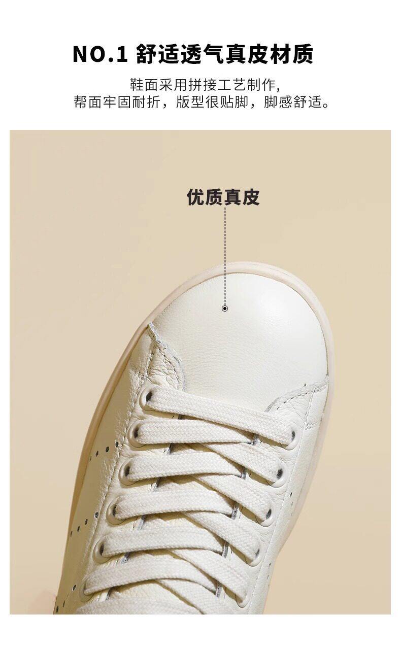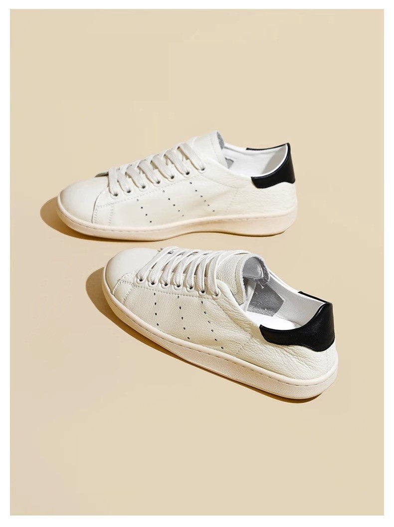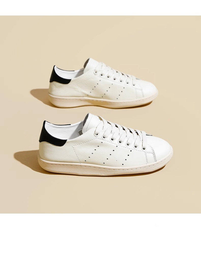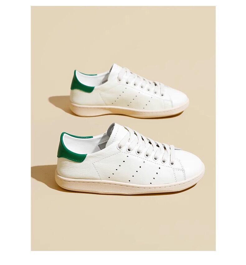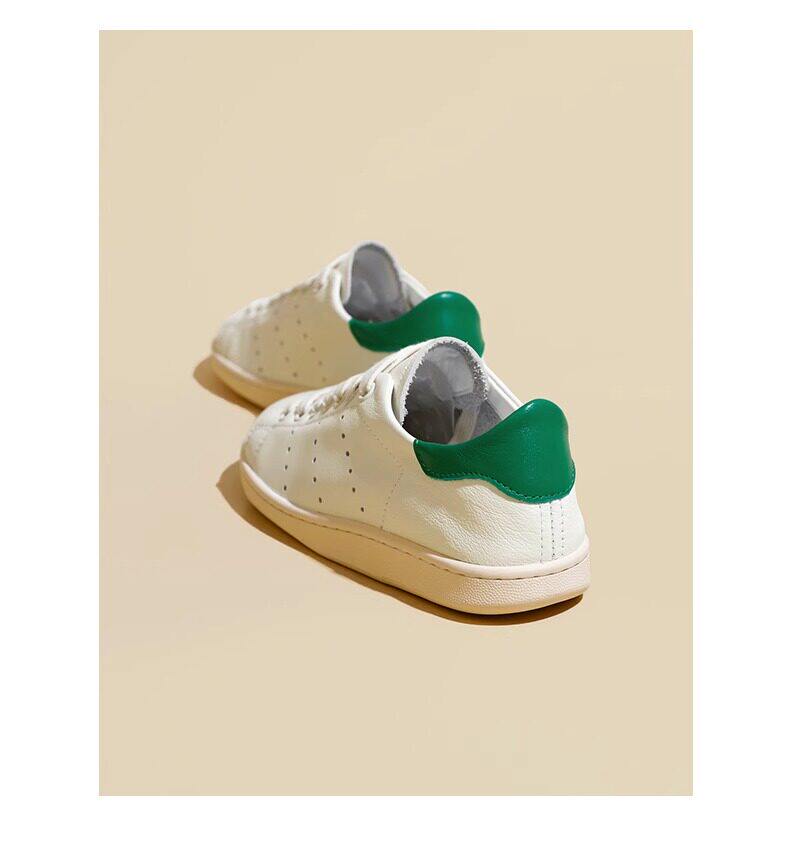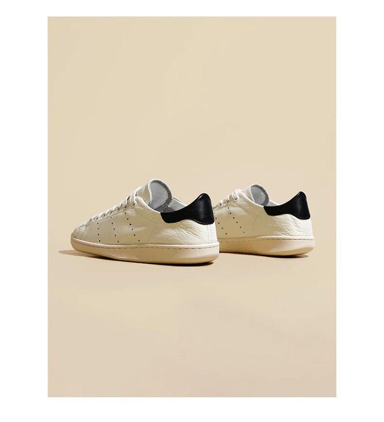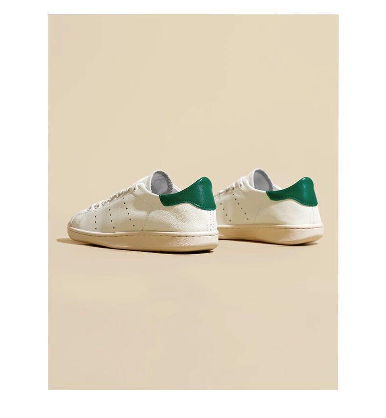 Hong Kong Cowhide Spring Flat Casual Sports White Shoes for Women, Versatile Trendy Genuine Leather Fashion Soft-Soled Sneakers