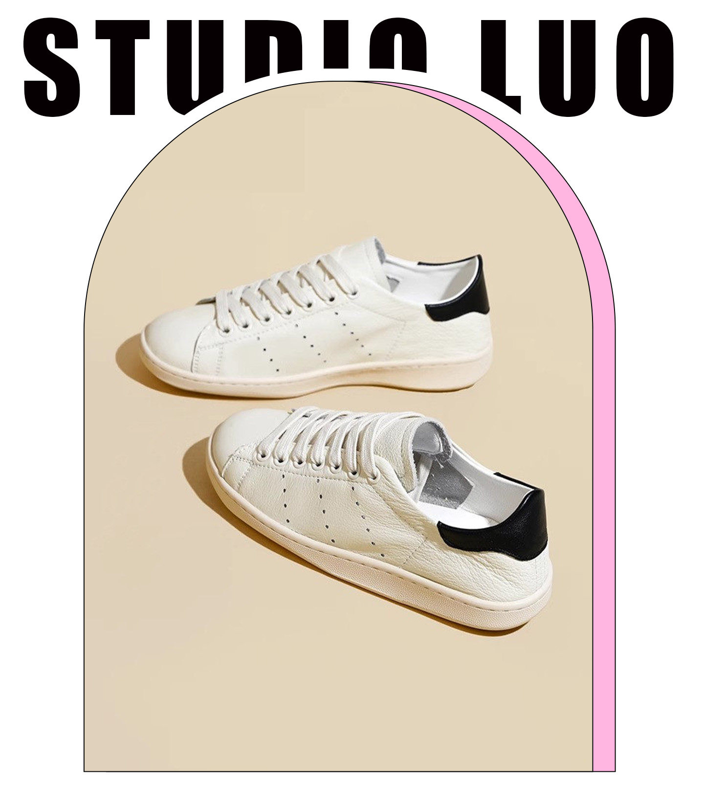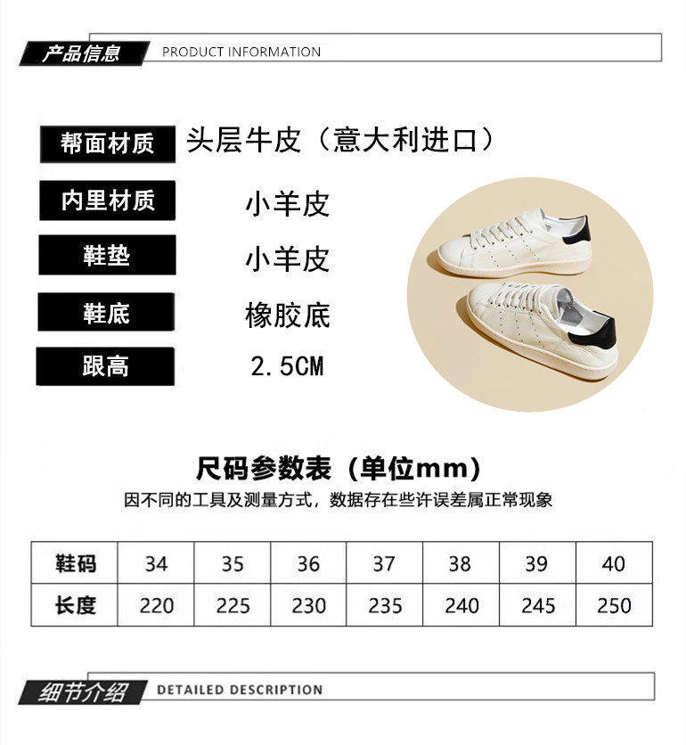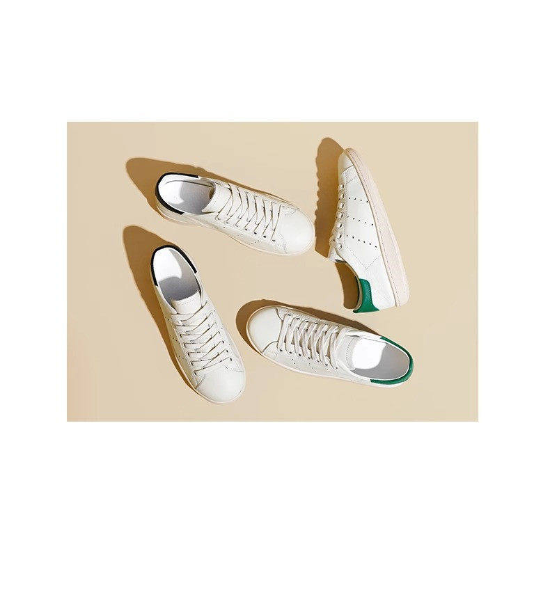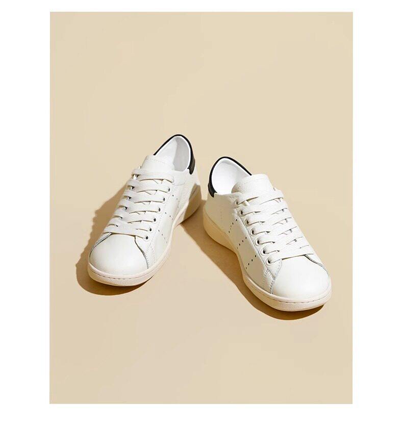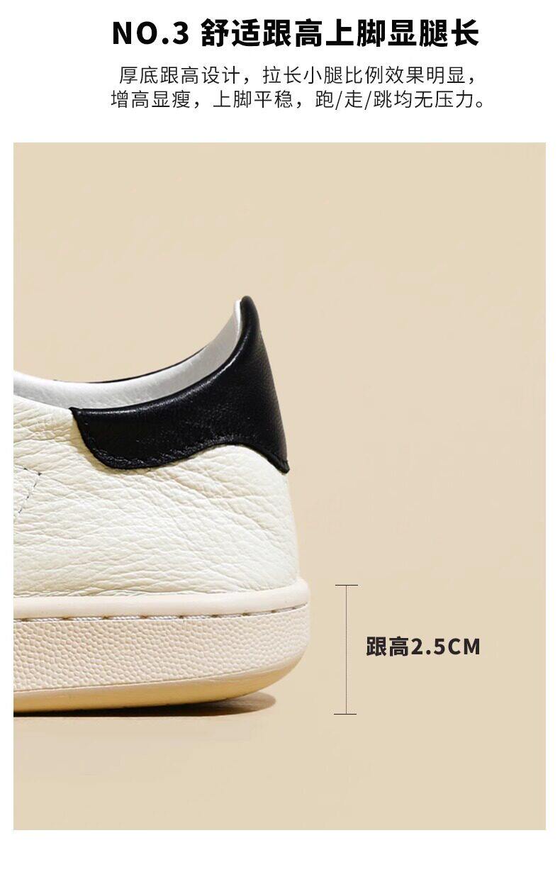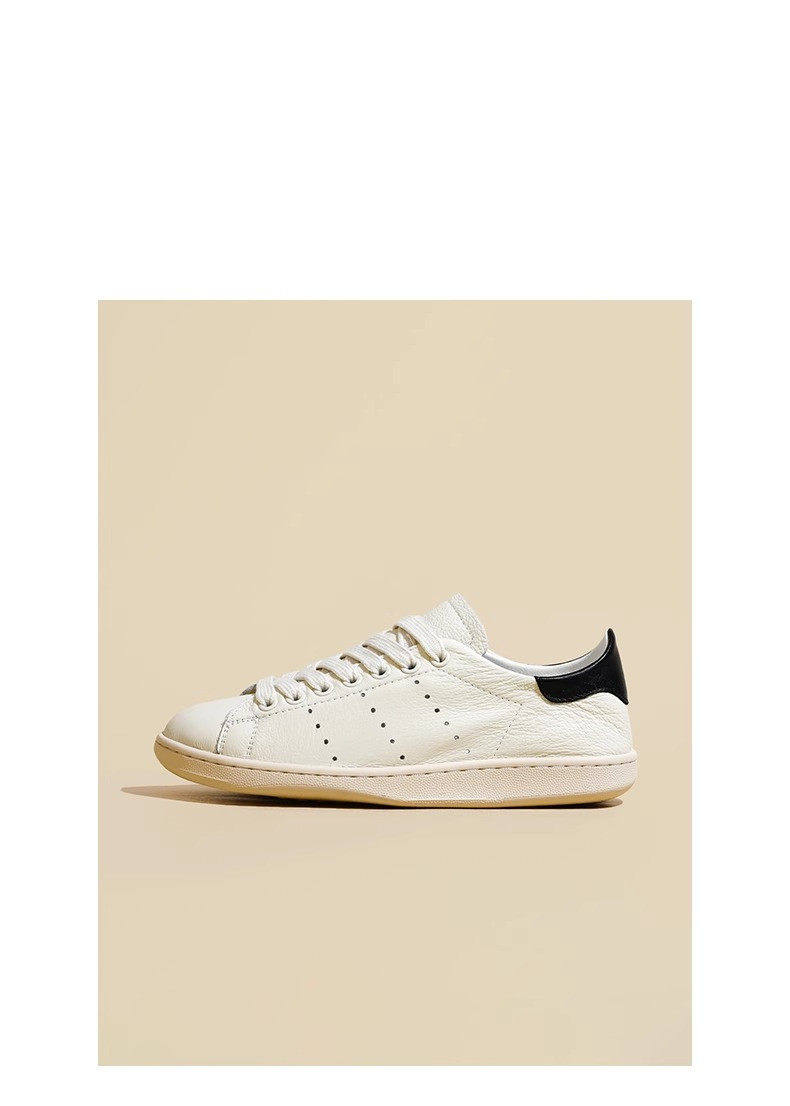 Hong Kong Cowhide Spring Flat Casual Sports White Shoes for Women, Versatile Trendy Genuine Leather Fashion Soft-Soled Sneakers