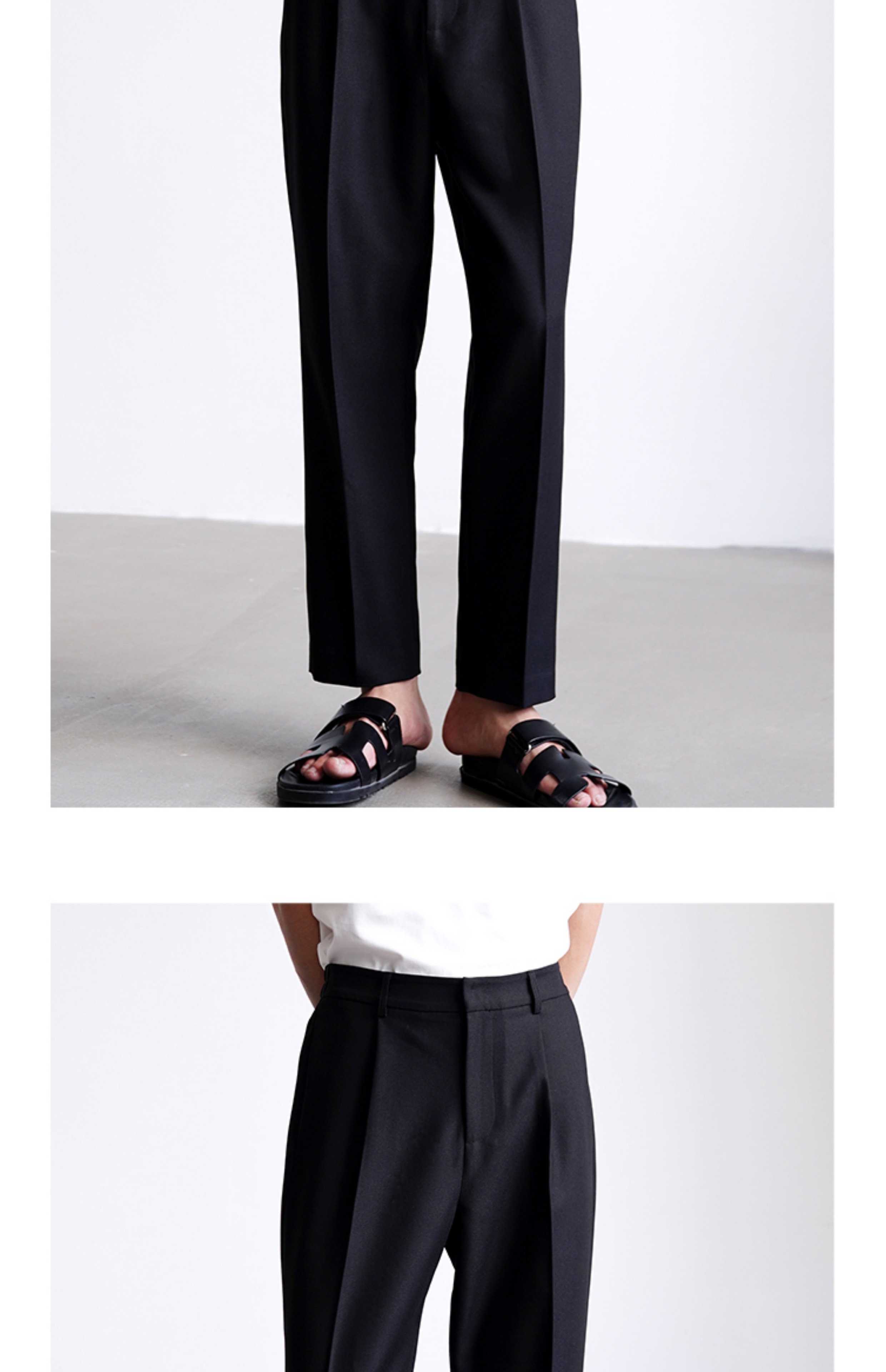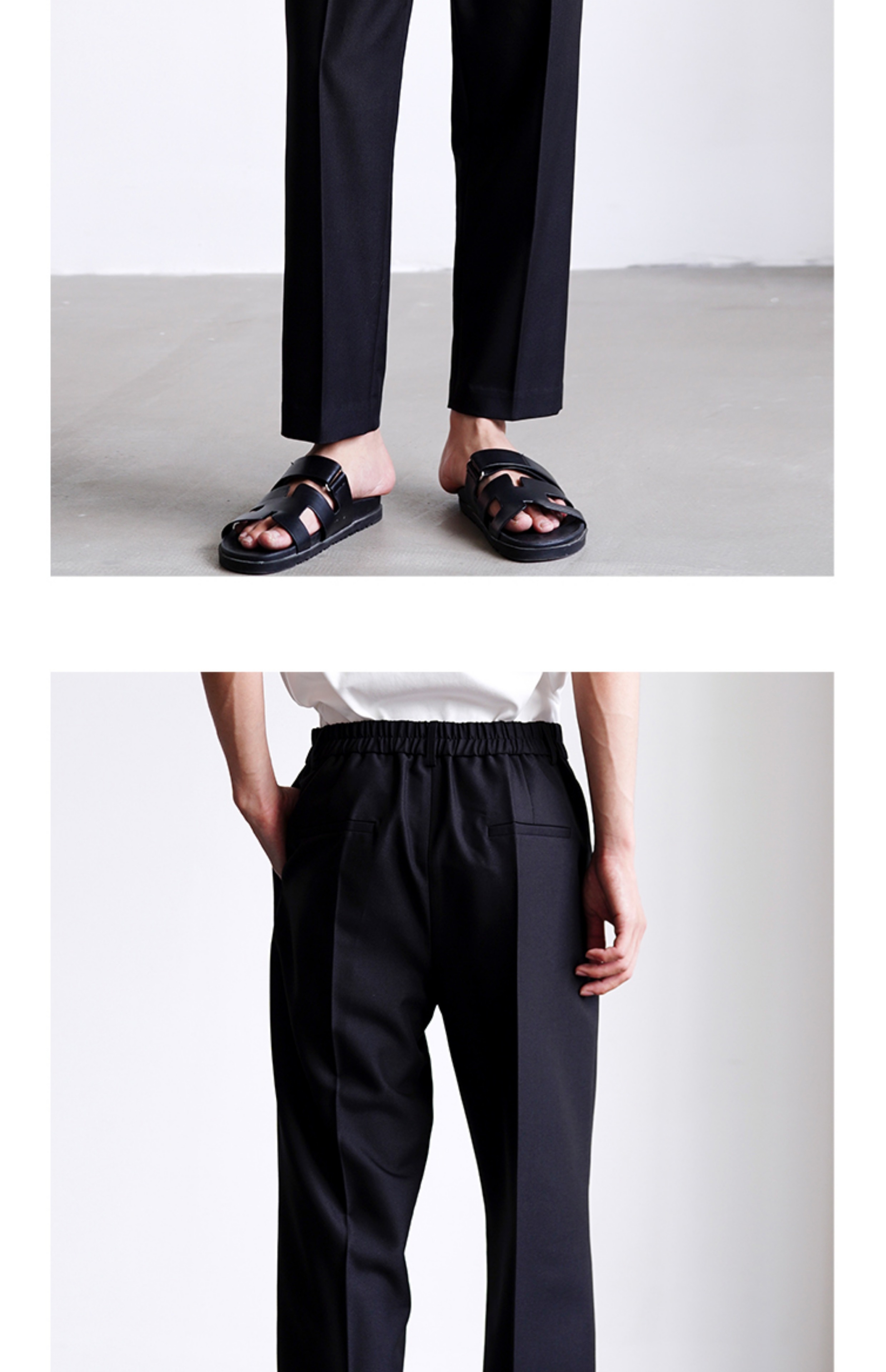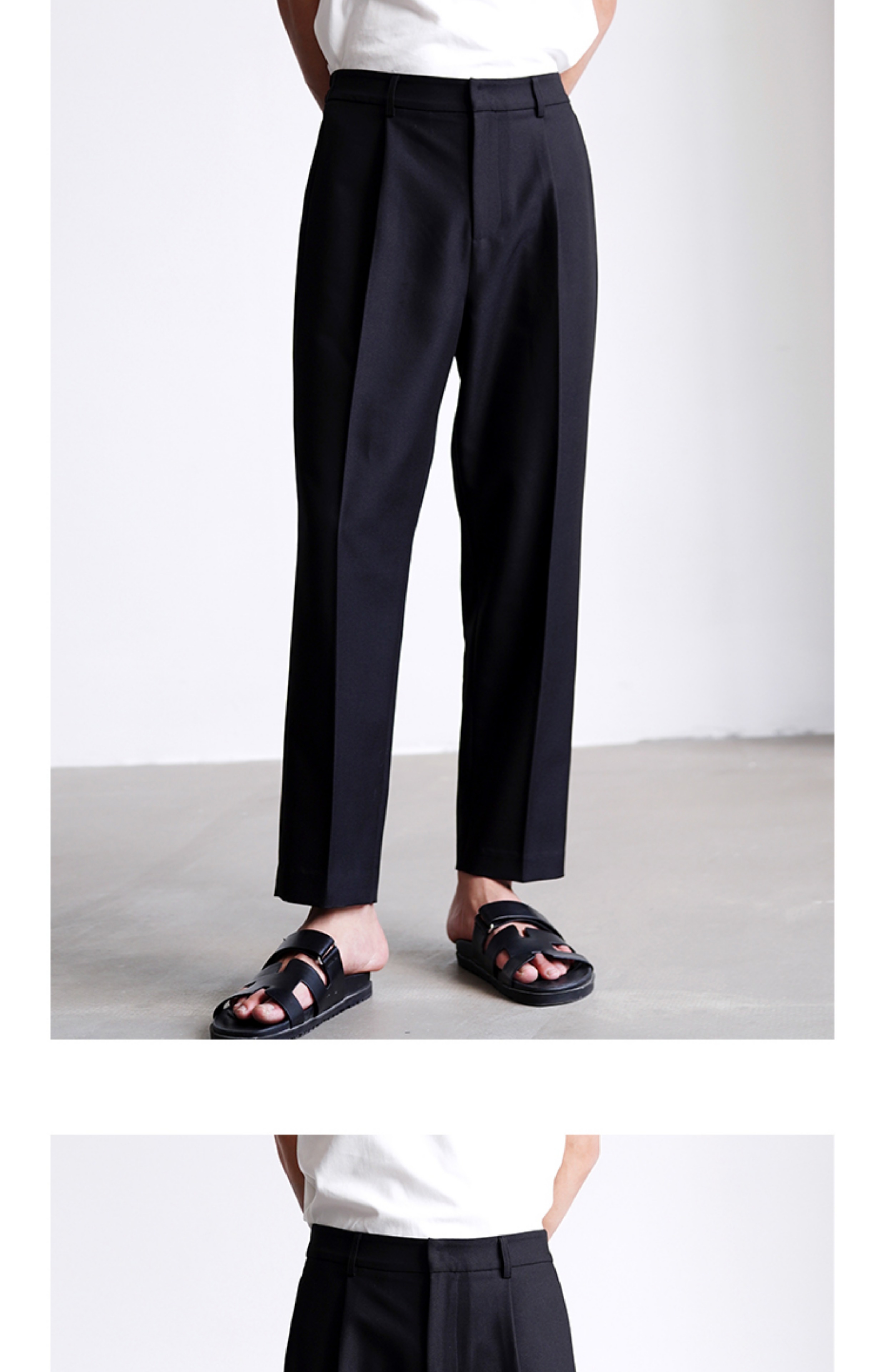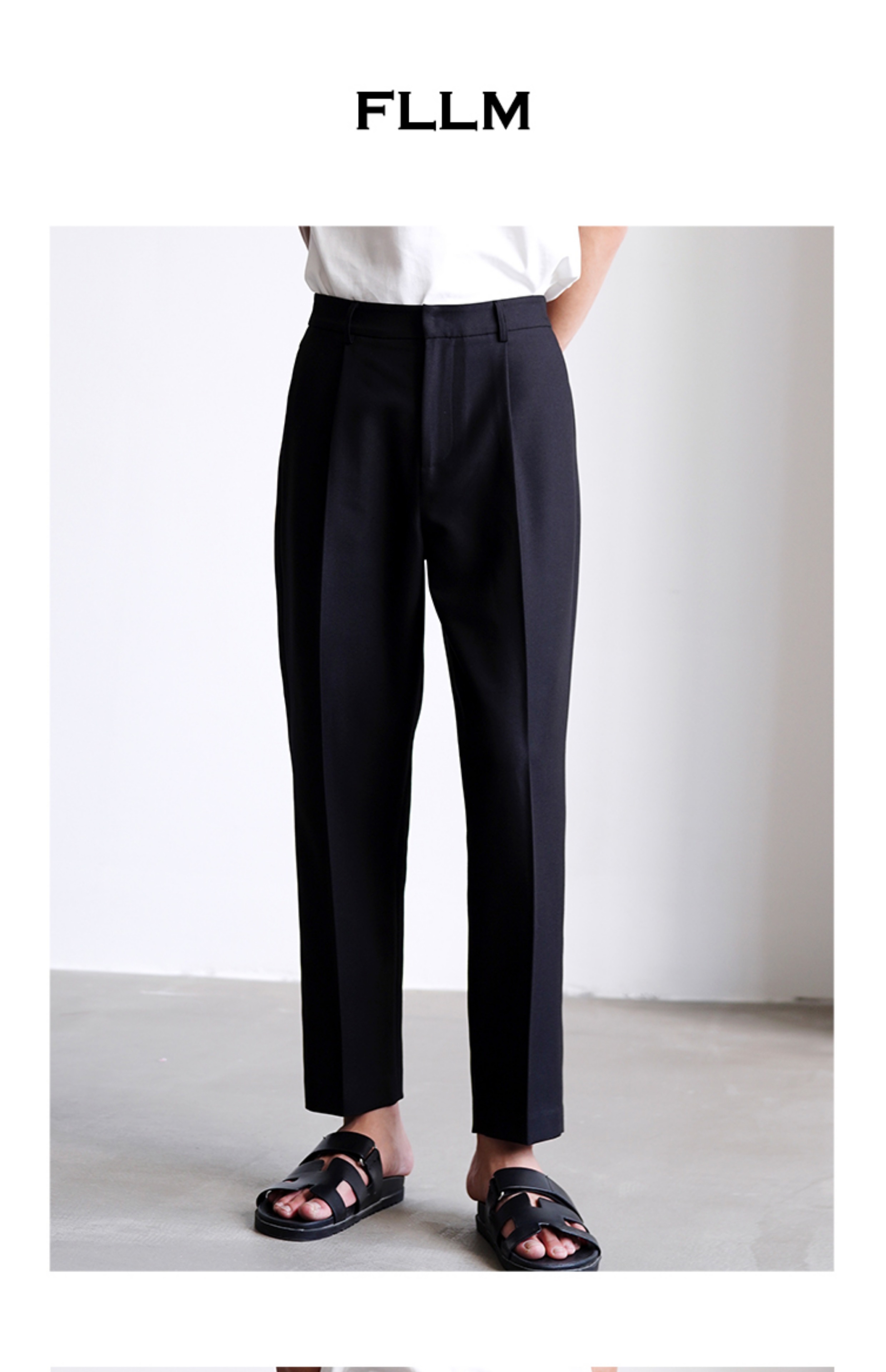 Fllm Semi-Elastic Waist Wide Comfortable Tapered Black Cropped Trousers Dress Pants