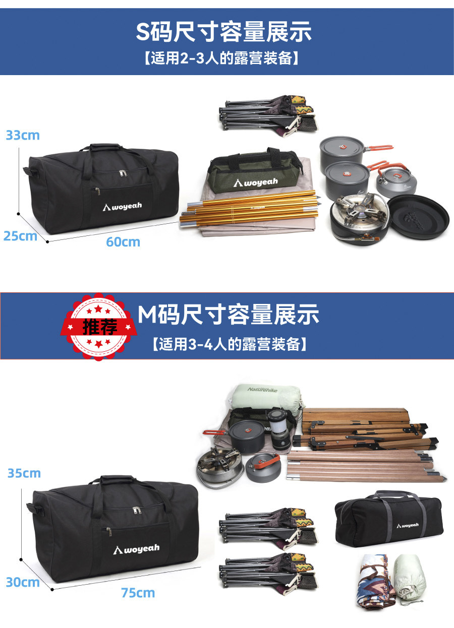 Woye Upgraded Version of Extra-Large Outdoor Travel Bag, Sleeping Bag, Tent Equipment Bag, Storage Bag, Pannier Bag, Waterproof Checked Bag