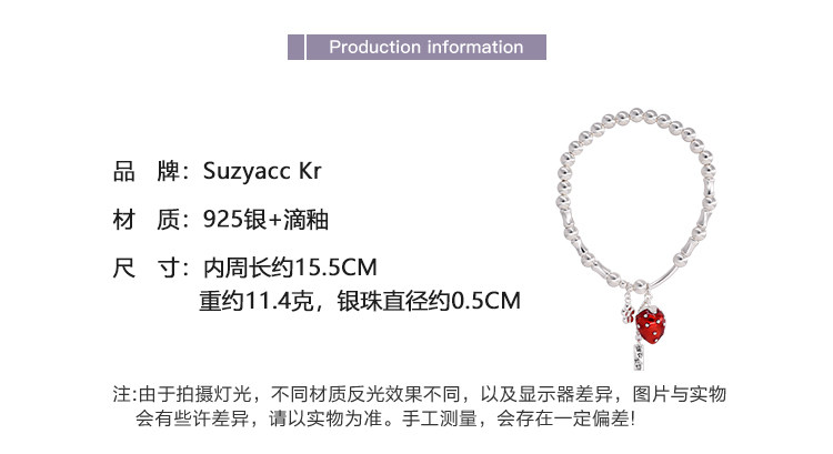 Suzyacc Krberry Has Troubles Strawberry Bracelet for Women, Light Luxury, Niche, Exquisite, High-End Jewelry, Gift for Best Friend