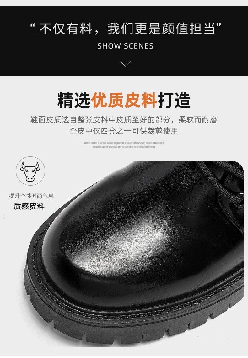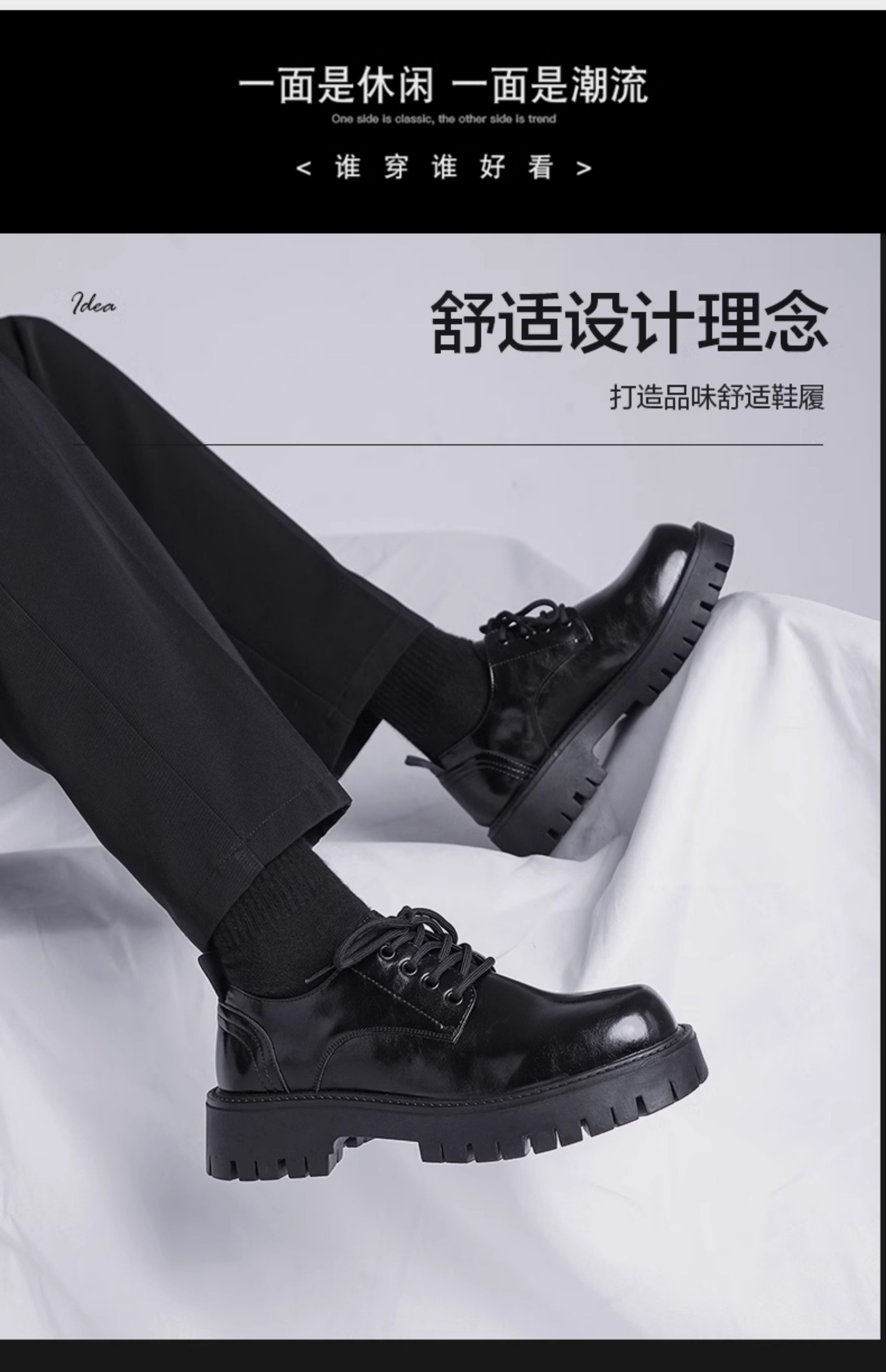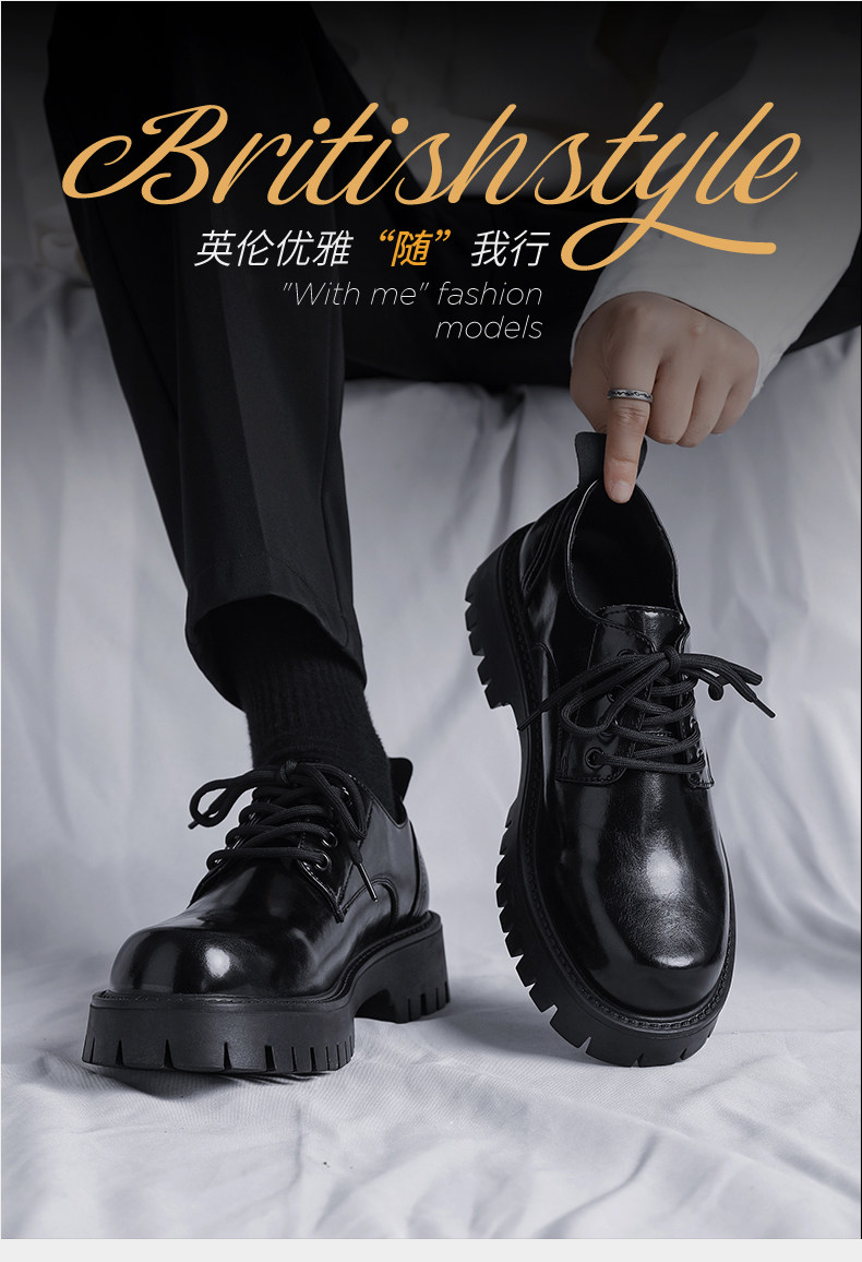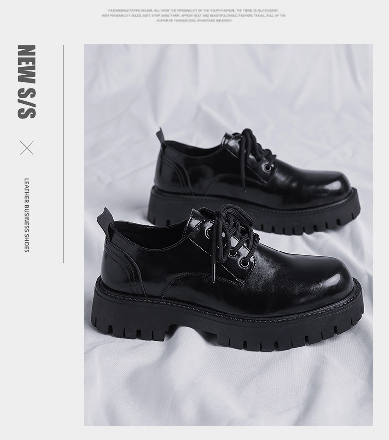 Men's Leather Shoes 2025 Winter Men's Soft-Soled British Style Business Formal Shoes Large Toe Height-Increasing Thick-Soled Wedding Groom Shoes
