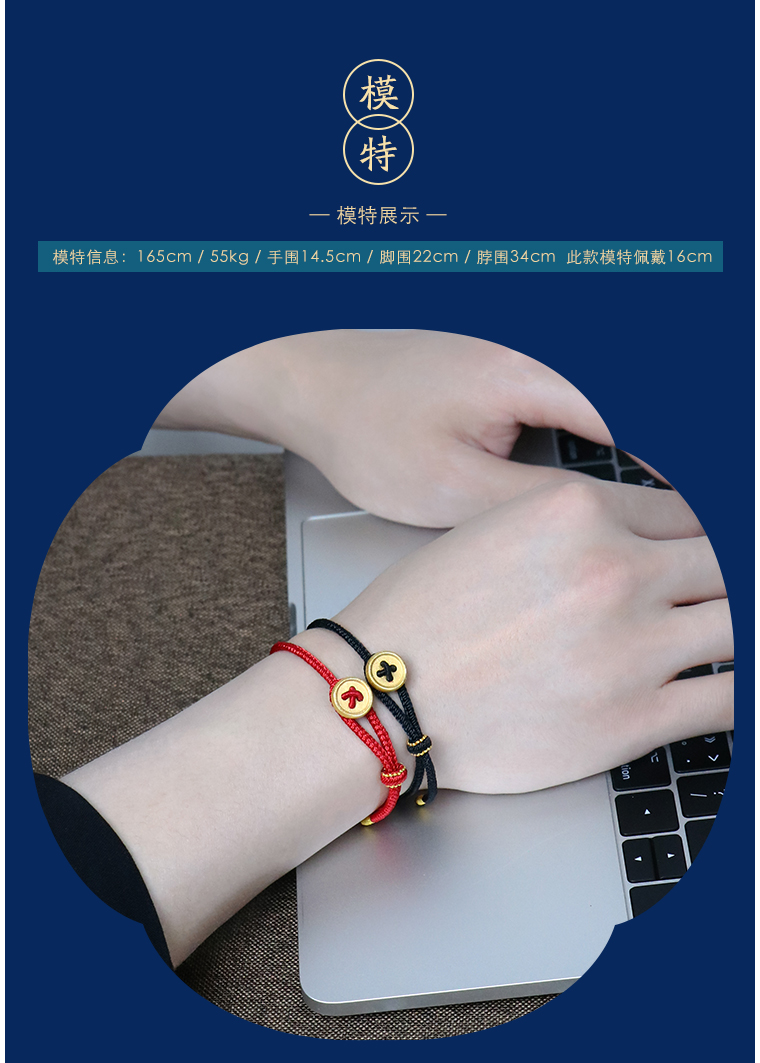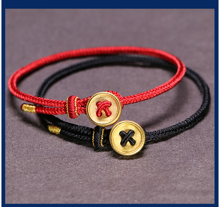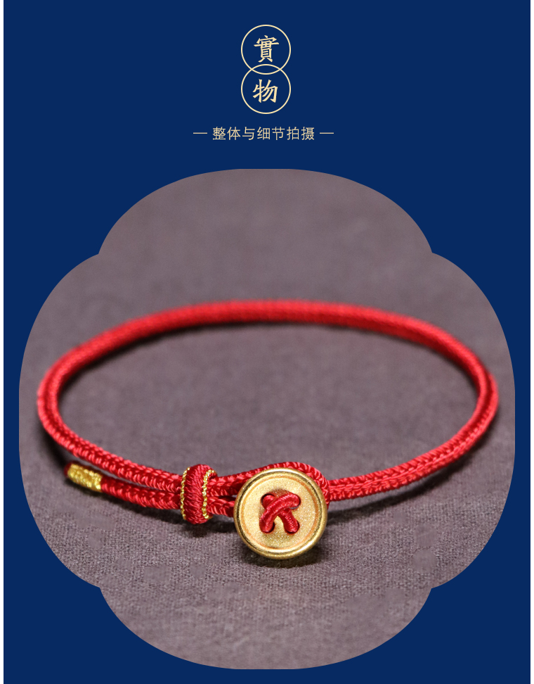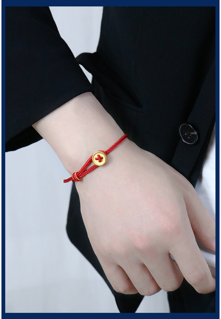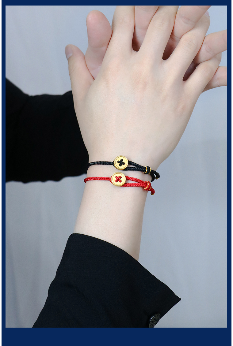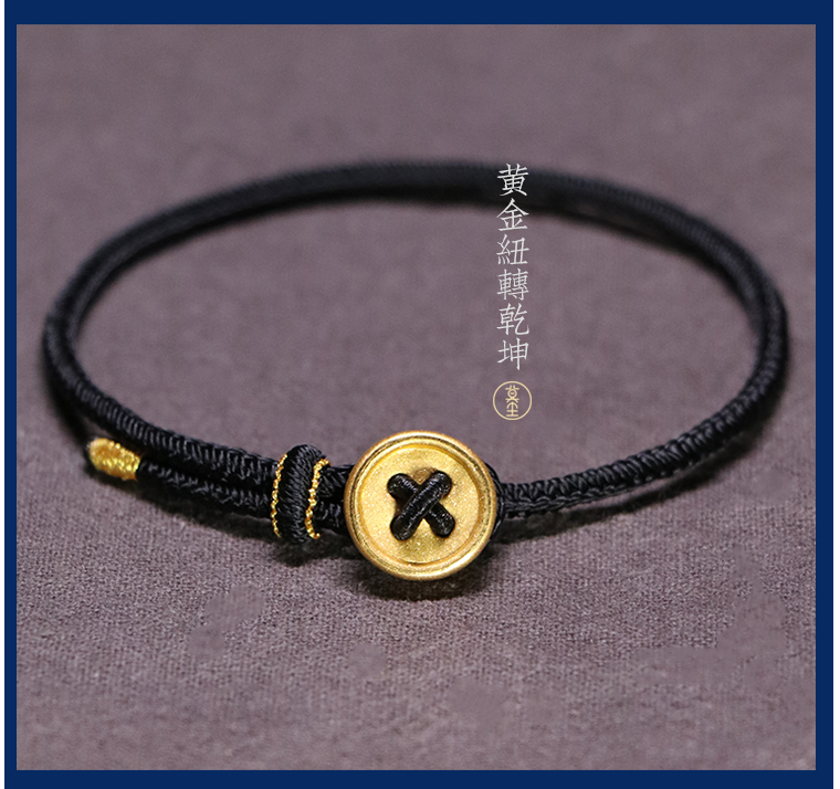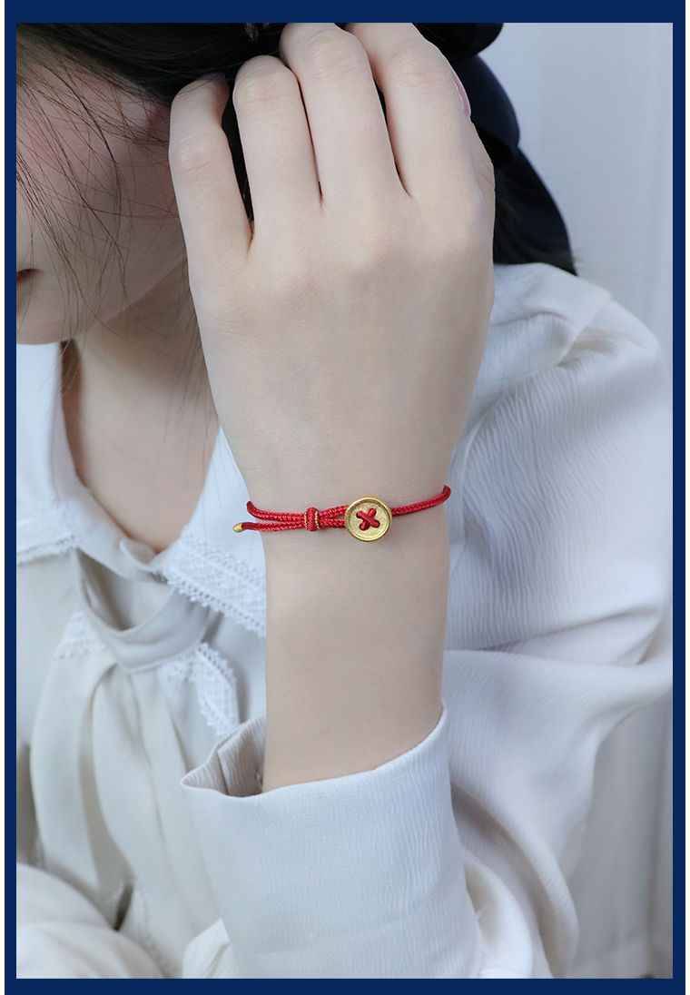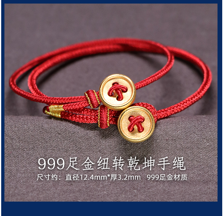 Gold Button Bracelet for Men, 999 Pure Gold Fortune Bead for Women, Red String for the Year of Birth, Turning Things Around, Couple's Bracelet