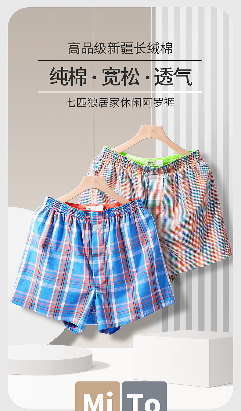 Septwolves Men's Cotton Boxer Shorts, Plus Size, Youth Style, Sleep Shorts, Loose and Breathable for Home Wear