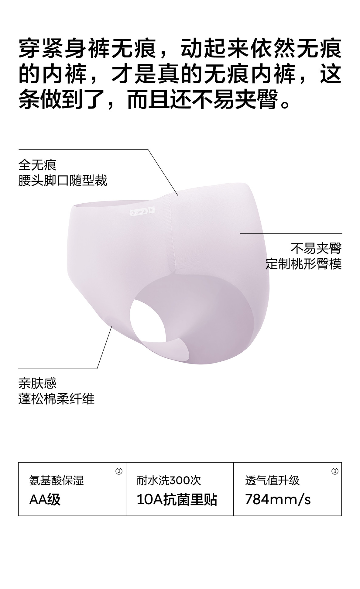 3 Pieces | Jiao Nei Yinpi 308Pro Women's Seamless Invisible Panties, Non-Binding, Pure Cotton Breathable Crotch Briefs, Red.
