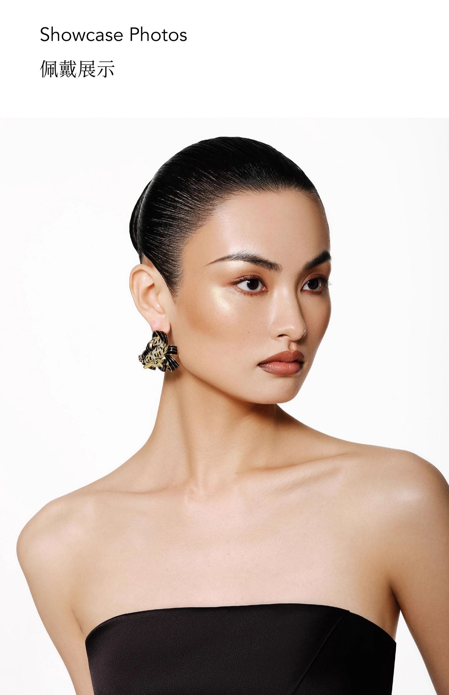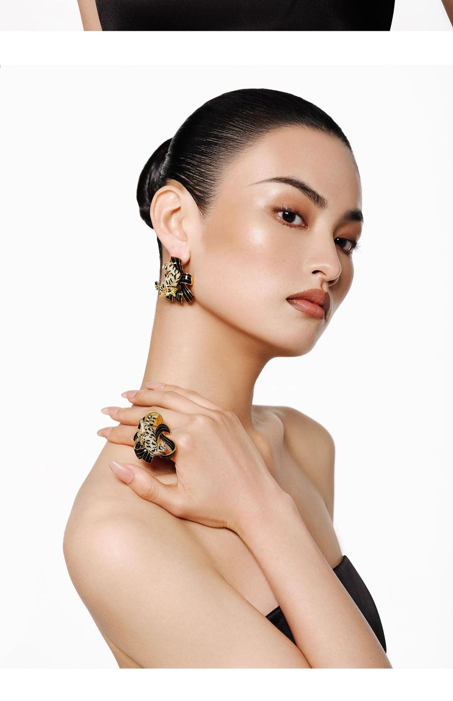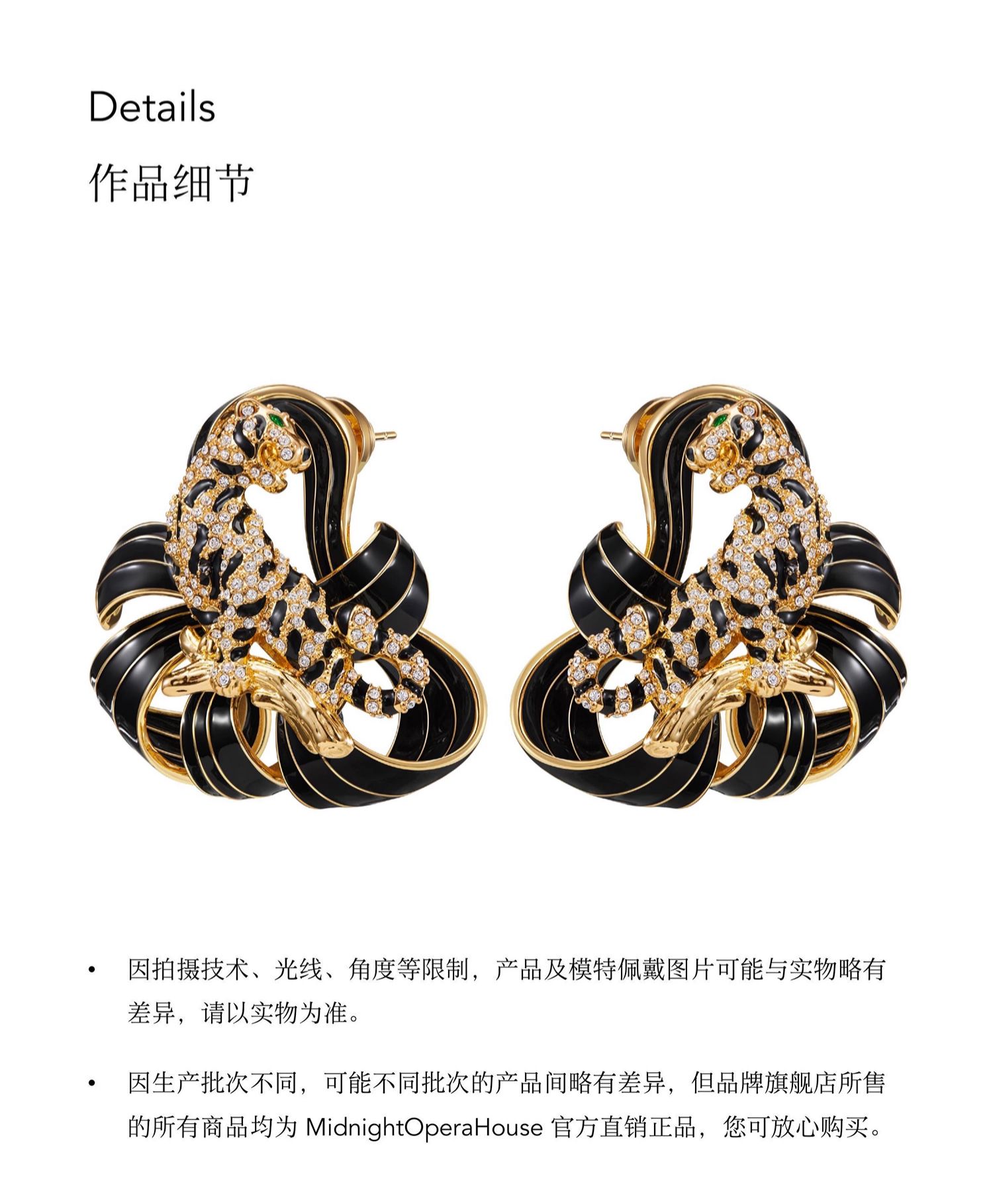 [Same Style as Dilraba] Moh Animal Whisper Series Black Gold Enamel Ripple Crystal Tiger Earrings Chinese Style Earrings