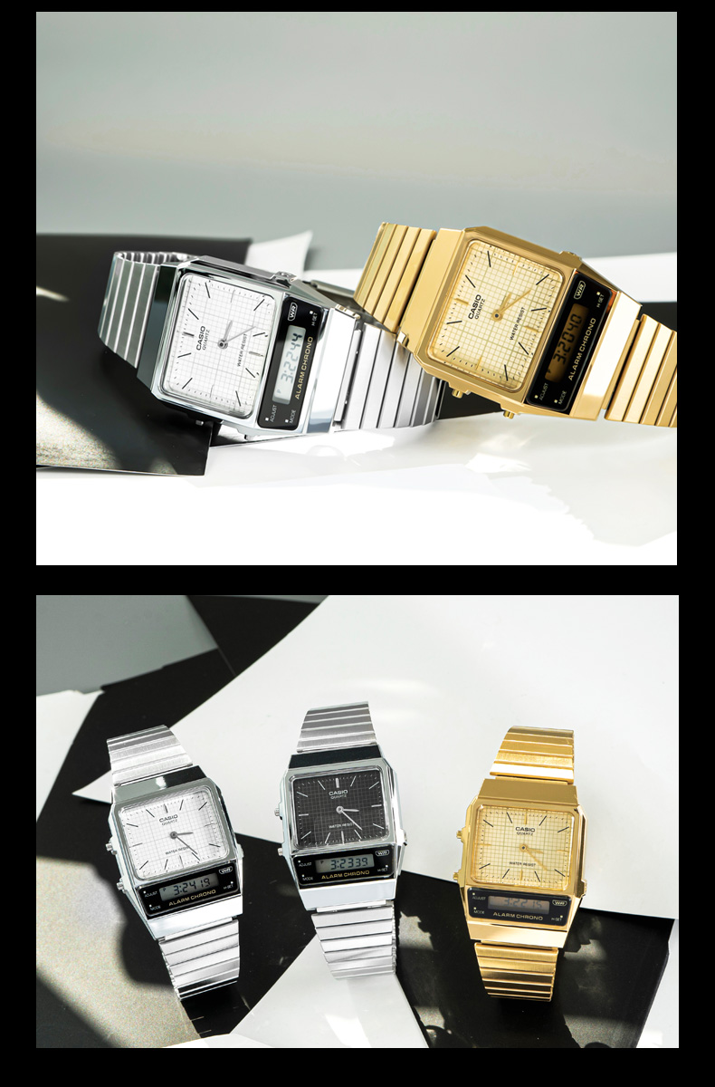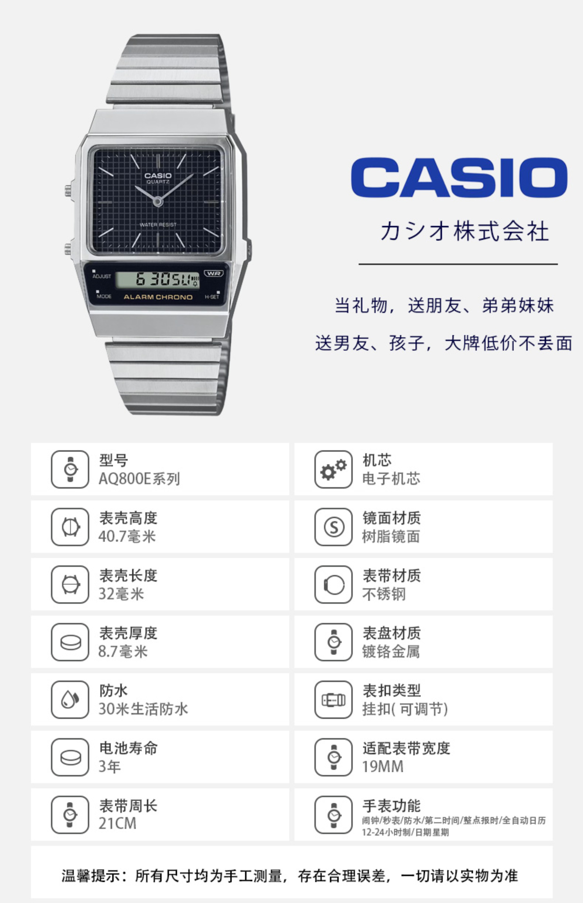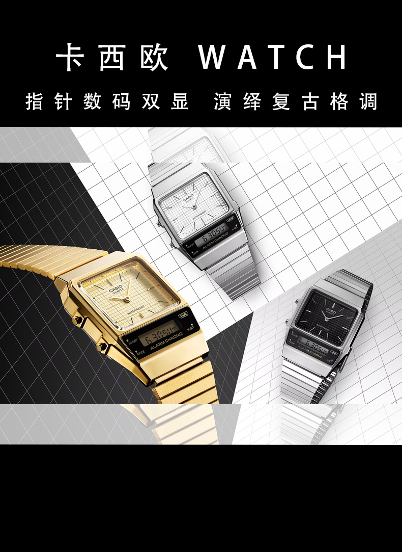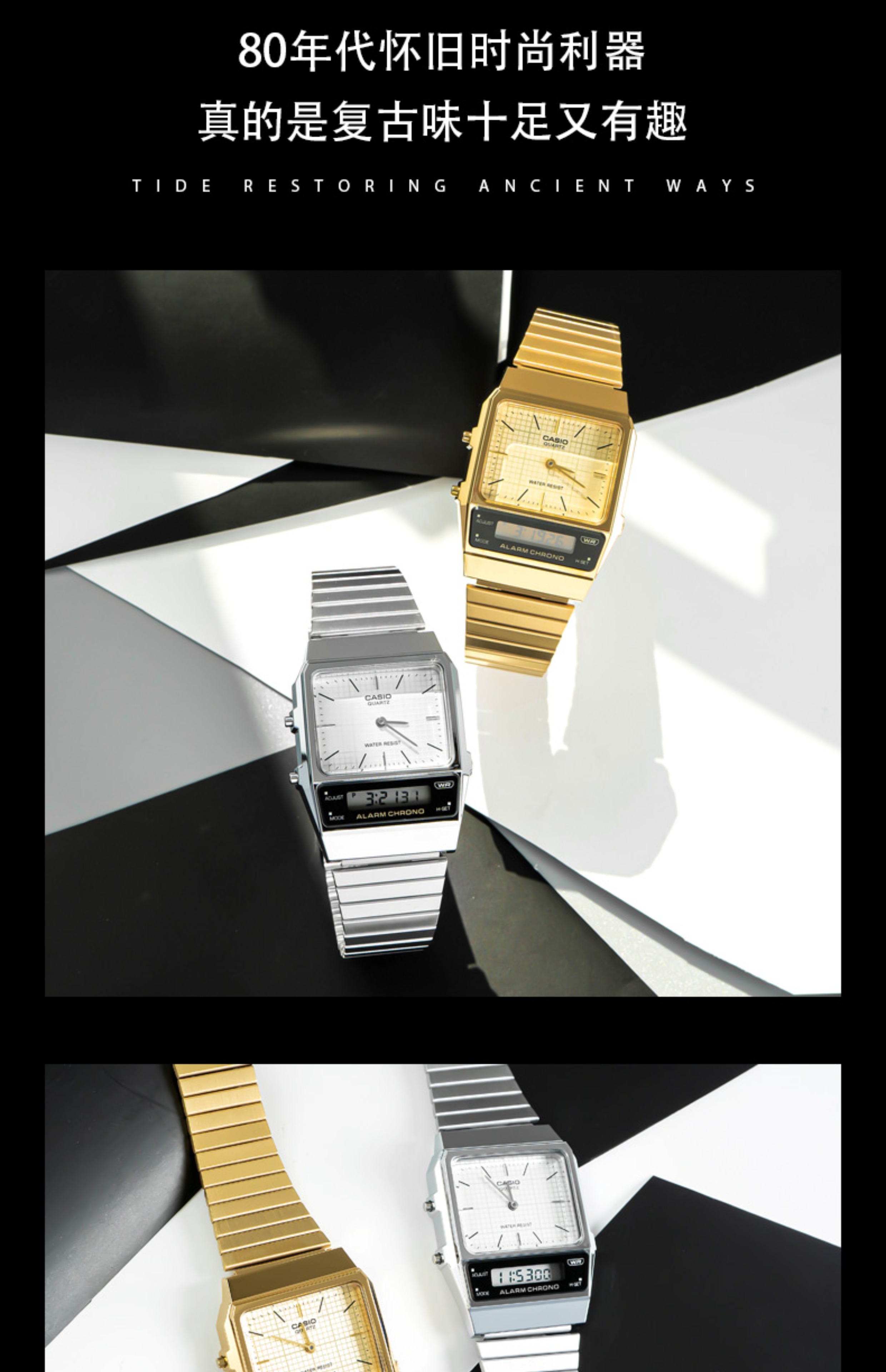 Casio Dual Display Retro Metal Silver Small Square Waterproof Digital Watch Aq-800E-1A 7A 9A