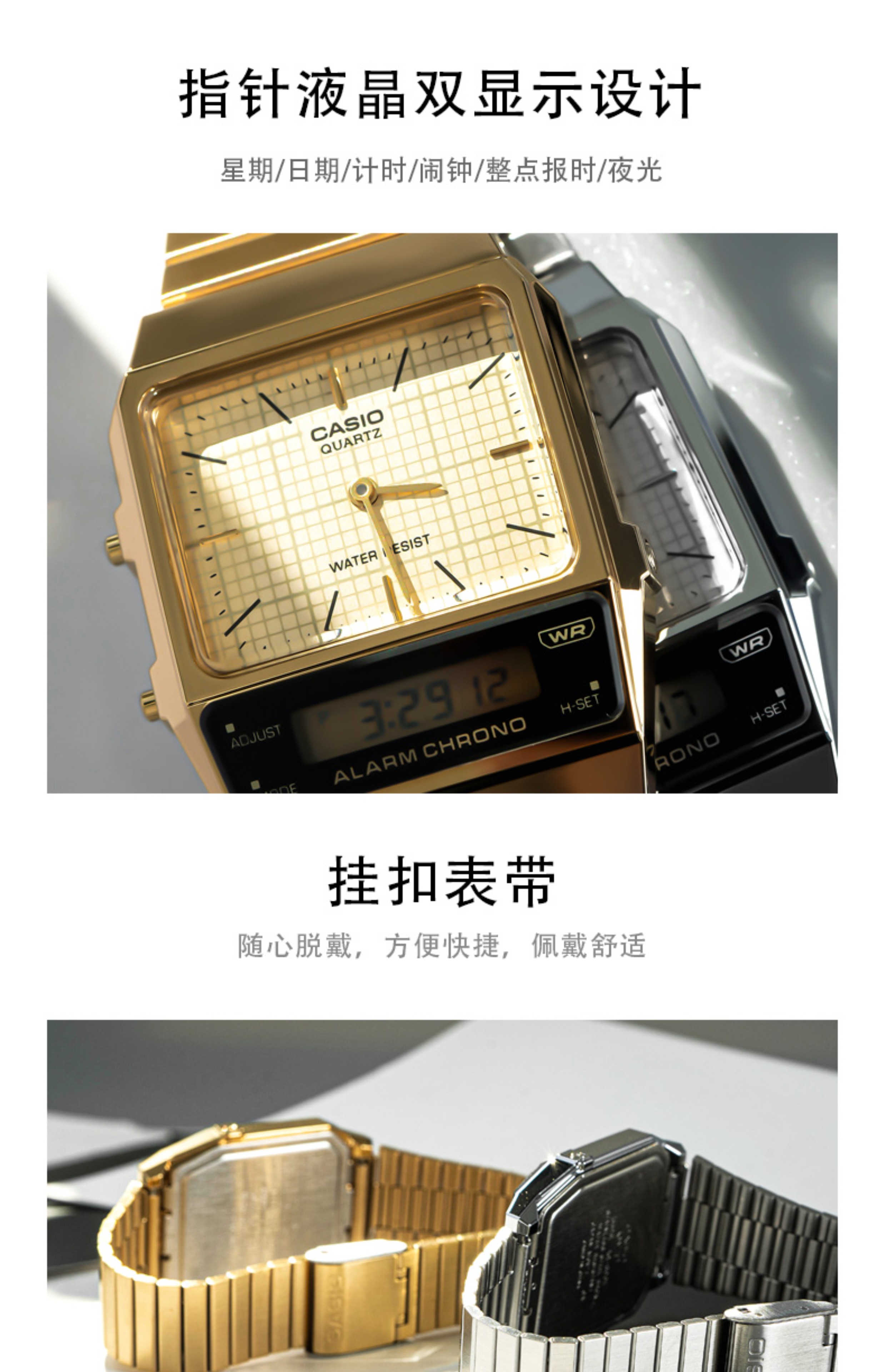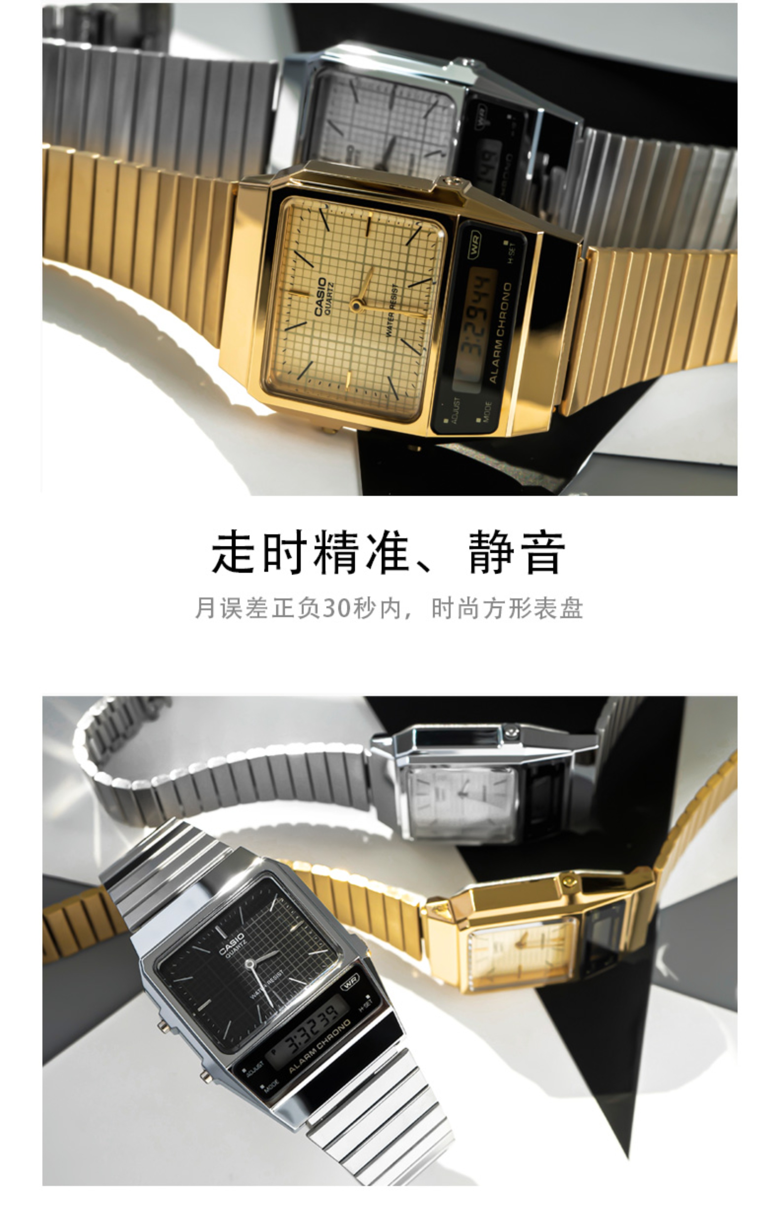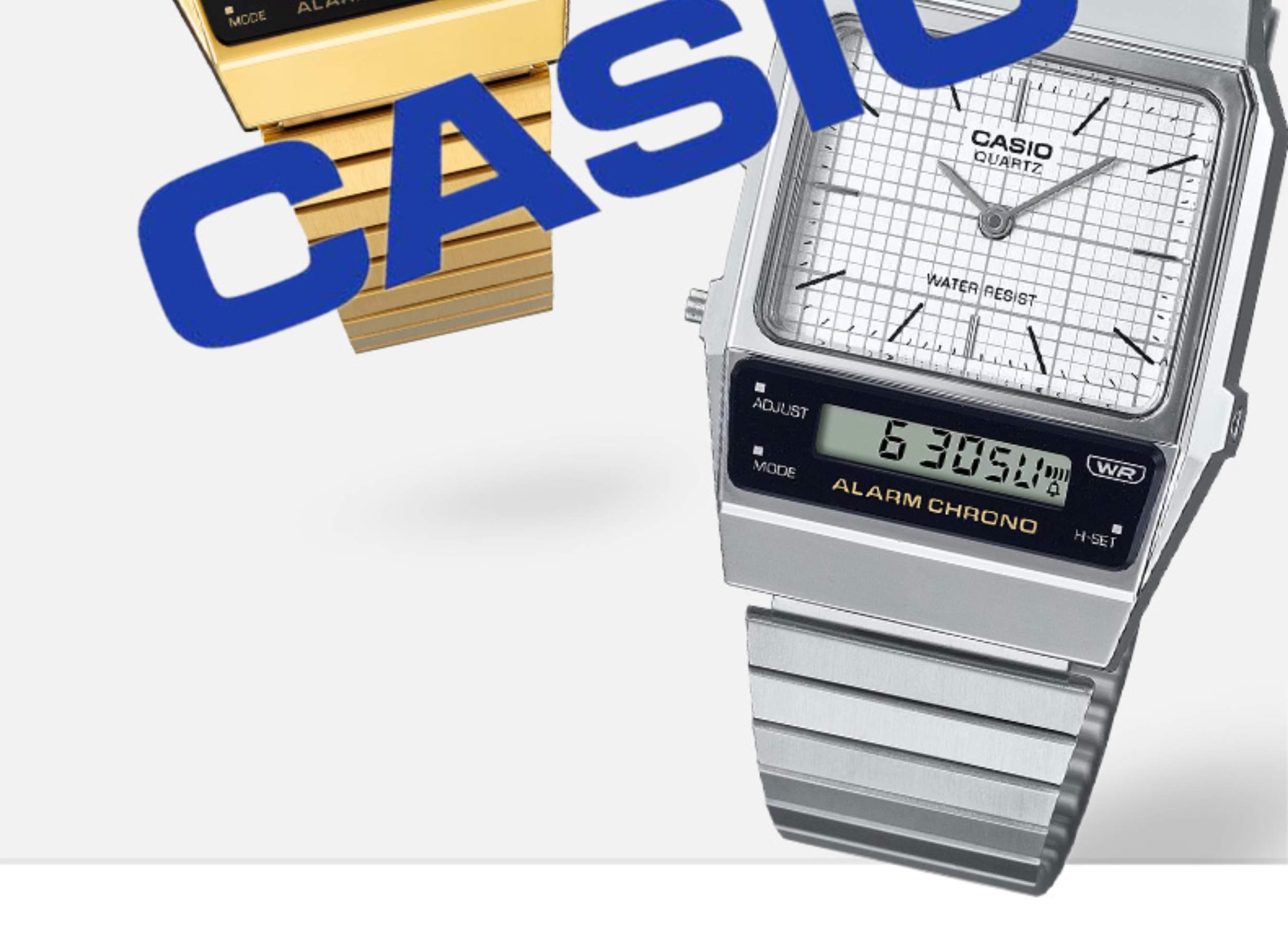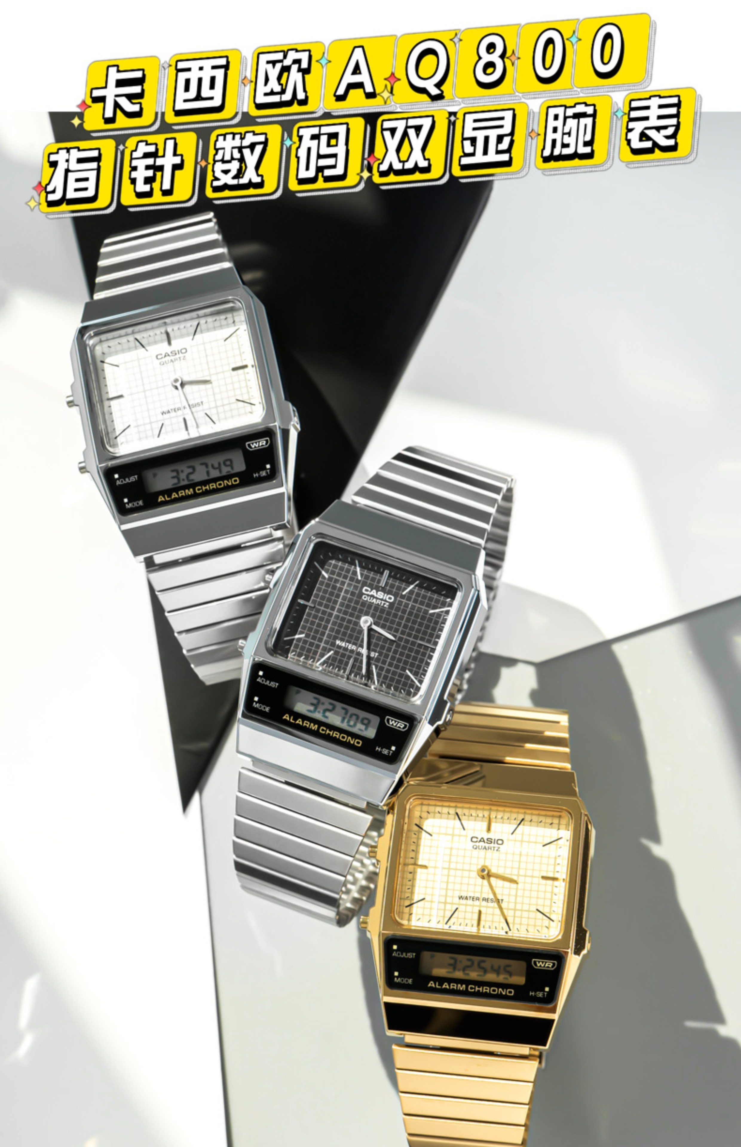 Casio Dual Display Retro Metal Silver Small Square Waterproof Digital Watch Aq-800E-1A 7A 9A