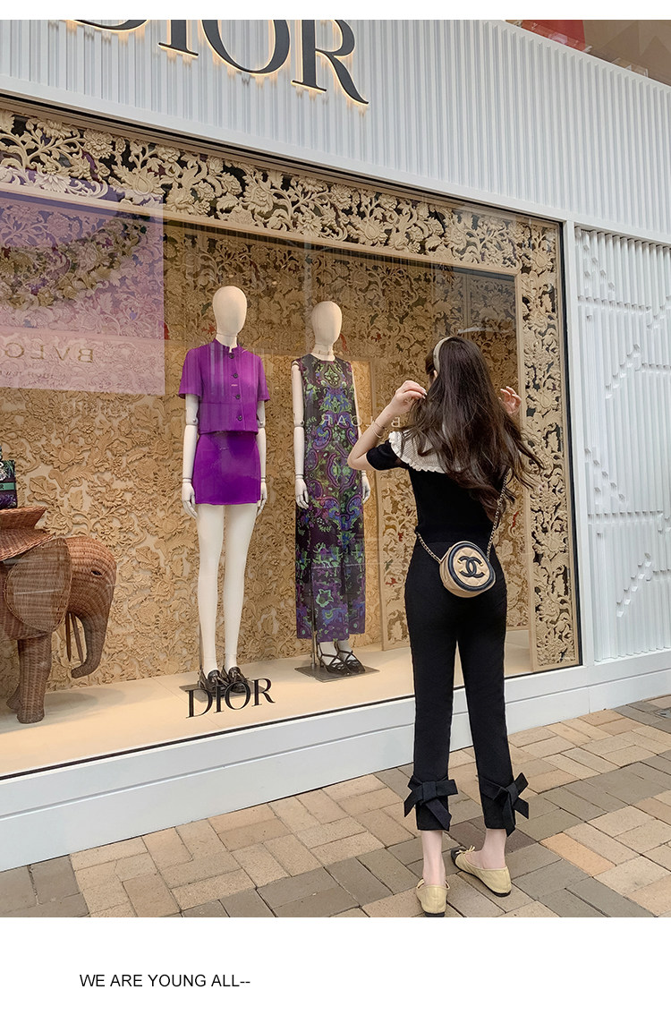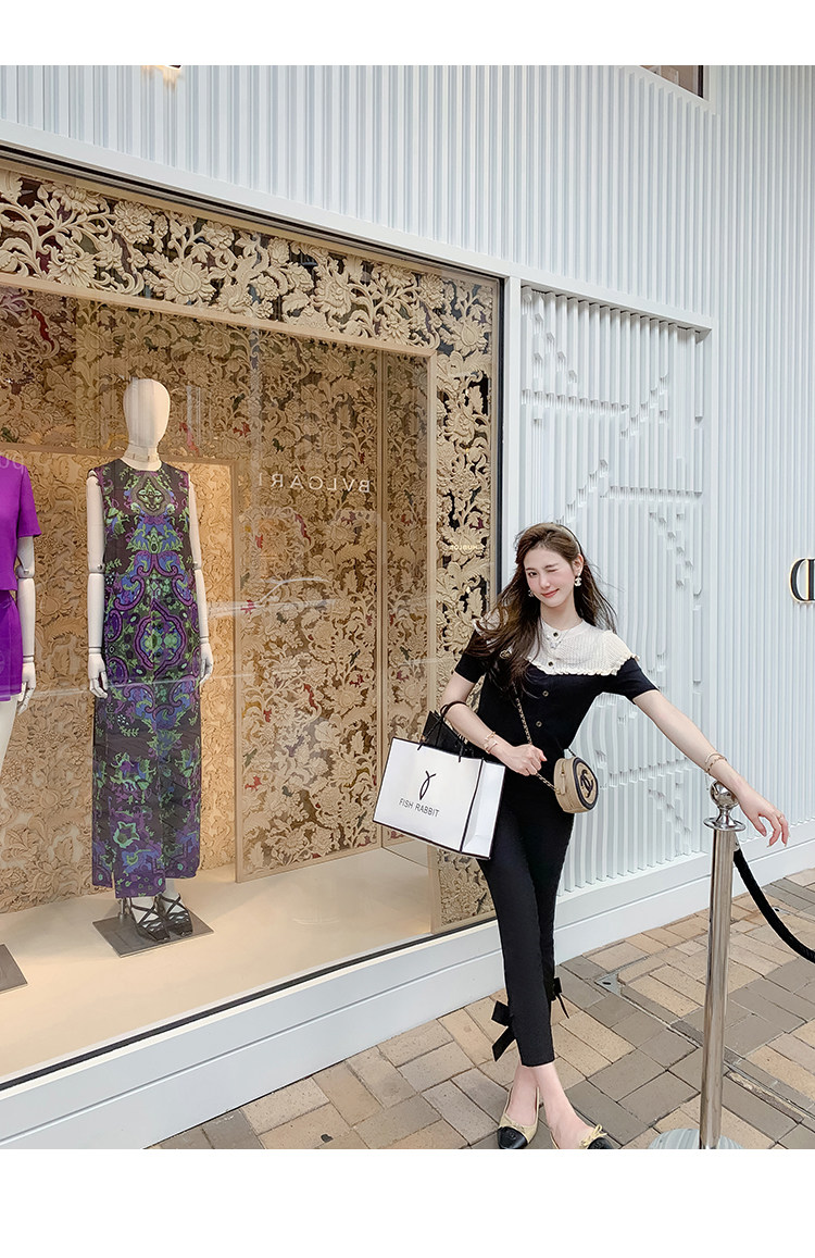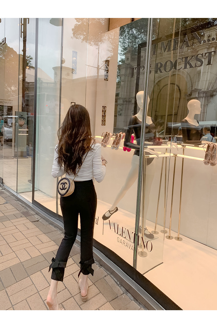 Fish Rabbit's Black Suit Pants 2026 Spring and Autumn New Style Bow Tie Casual Pants Slim High-Waisted Cropped Pants