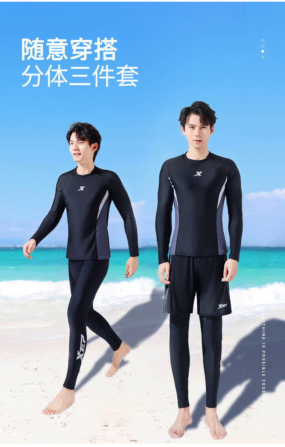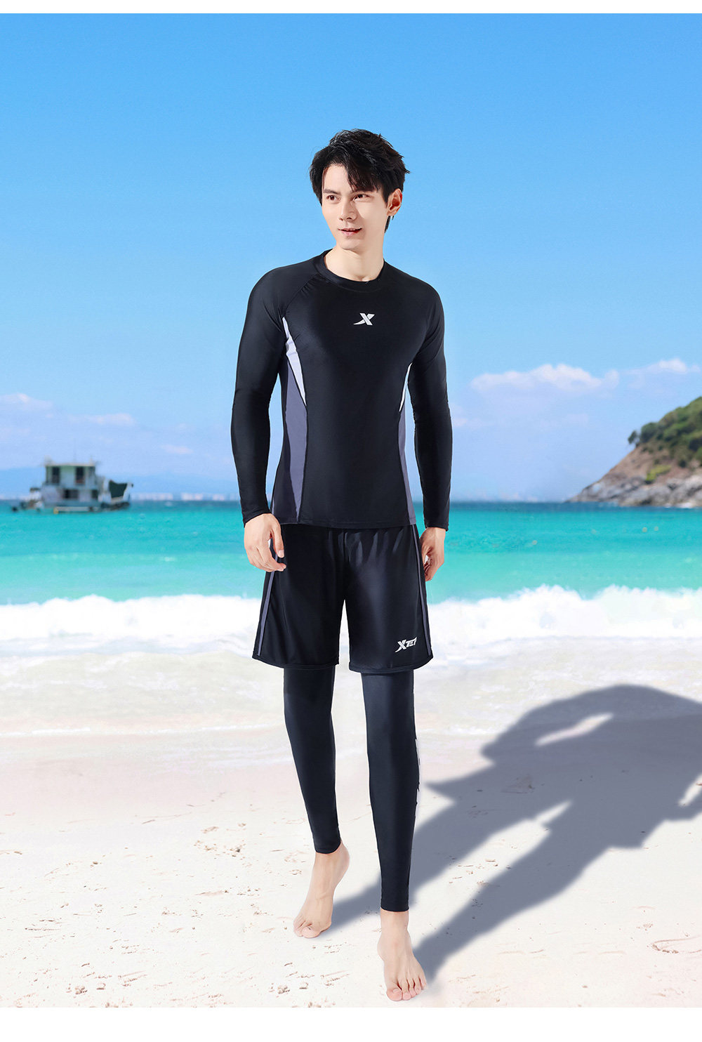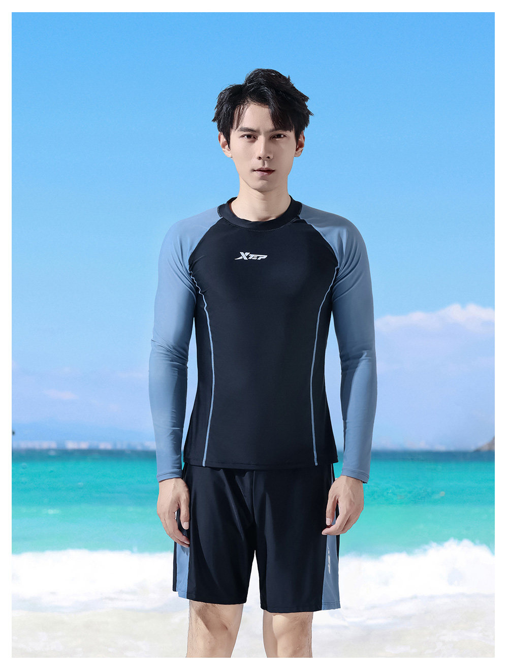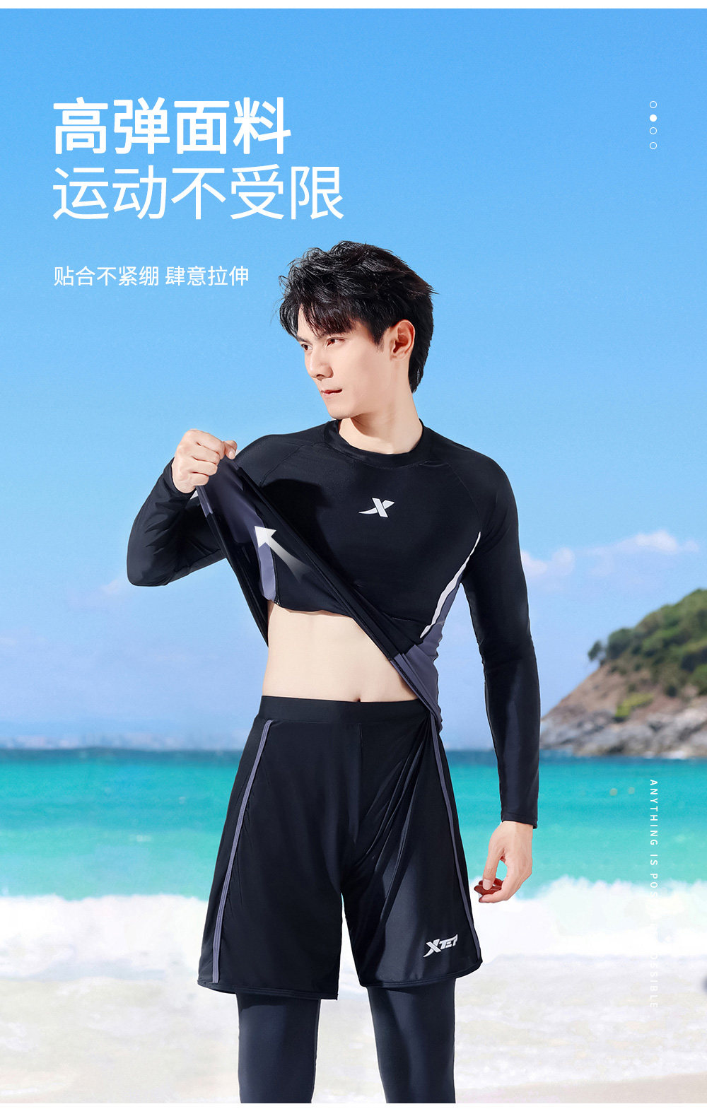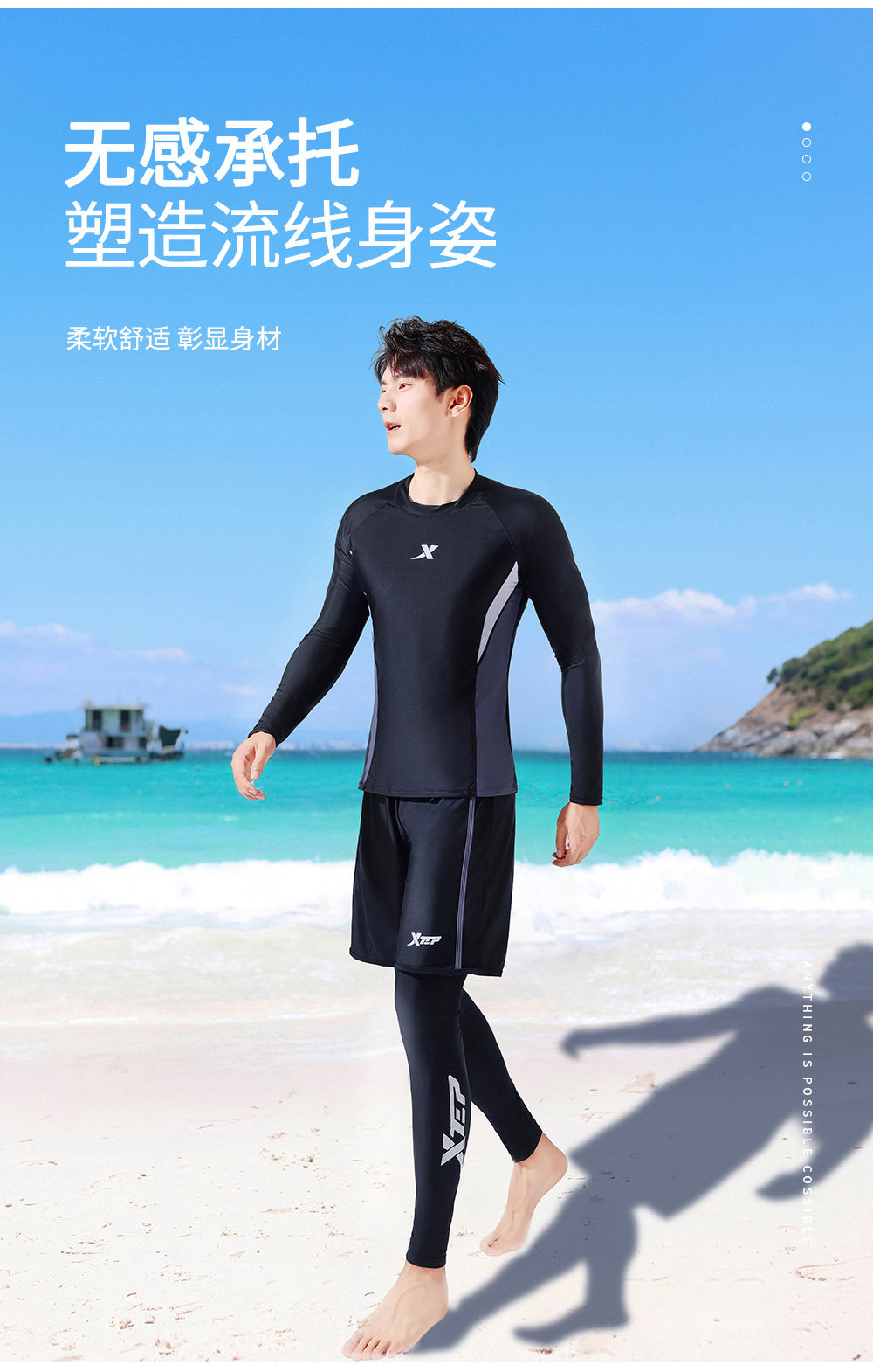 Xtep Men's Swimwear 2025 New Set Slimming Quick-Drying Long-Sleeve Long Pants Swim Trunks Professional Swimming and Diving Suit