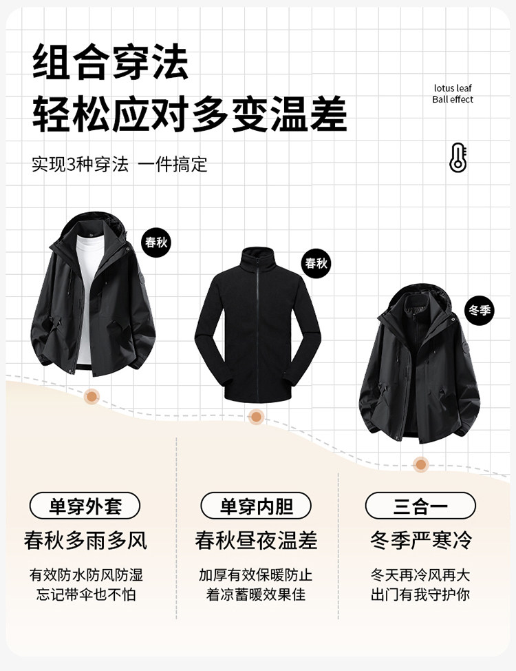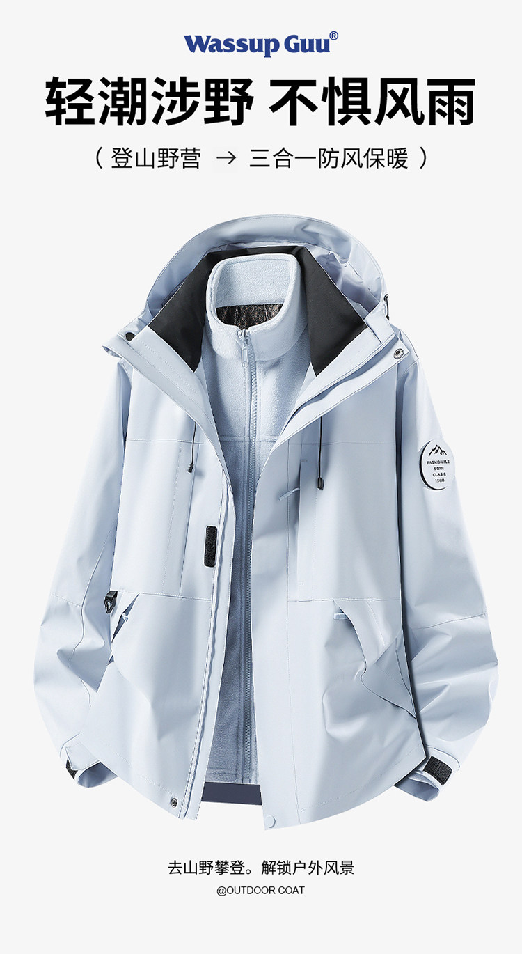 Wassup Guu Jacket Men's and Women's Windbreaker Three-In-One Detachable Waterproof Outdoor Mountaineering Jacket down Jacket Trendy