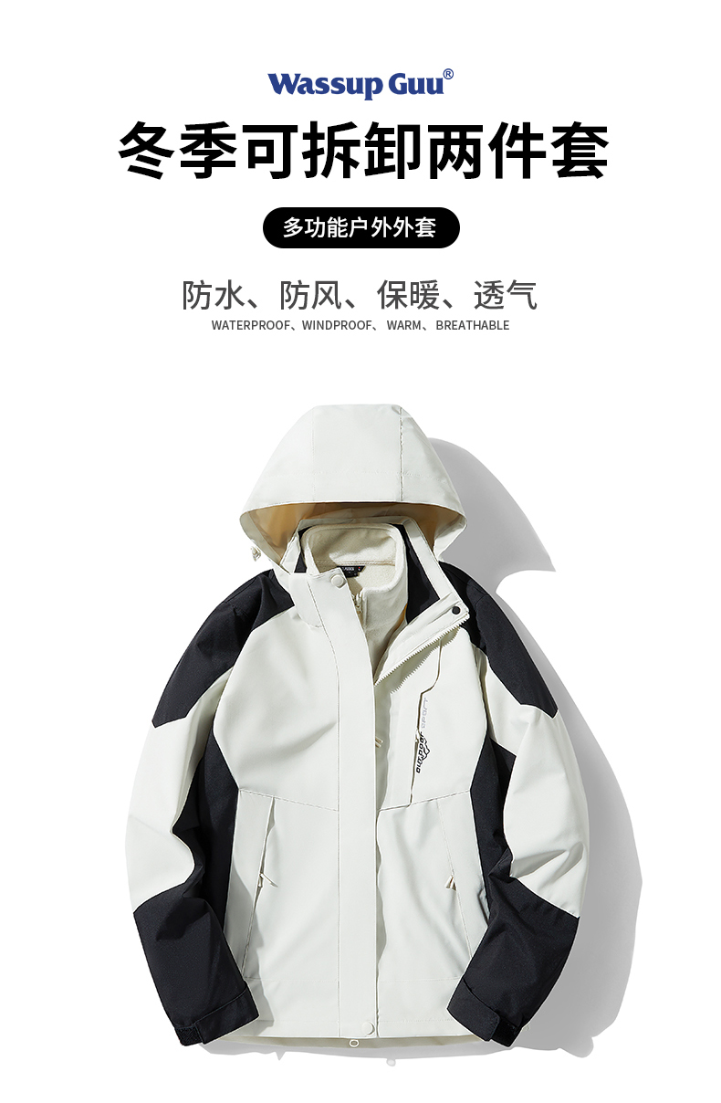Wassup Guu Jacket for Men and Women, Autumn and Winter 3-in-1 Detachable Waterproof Outdoor Mountaineering Jacket, down Jacket, Trendy