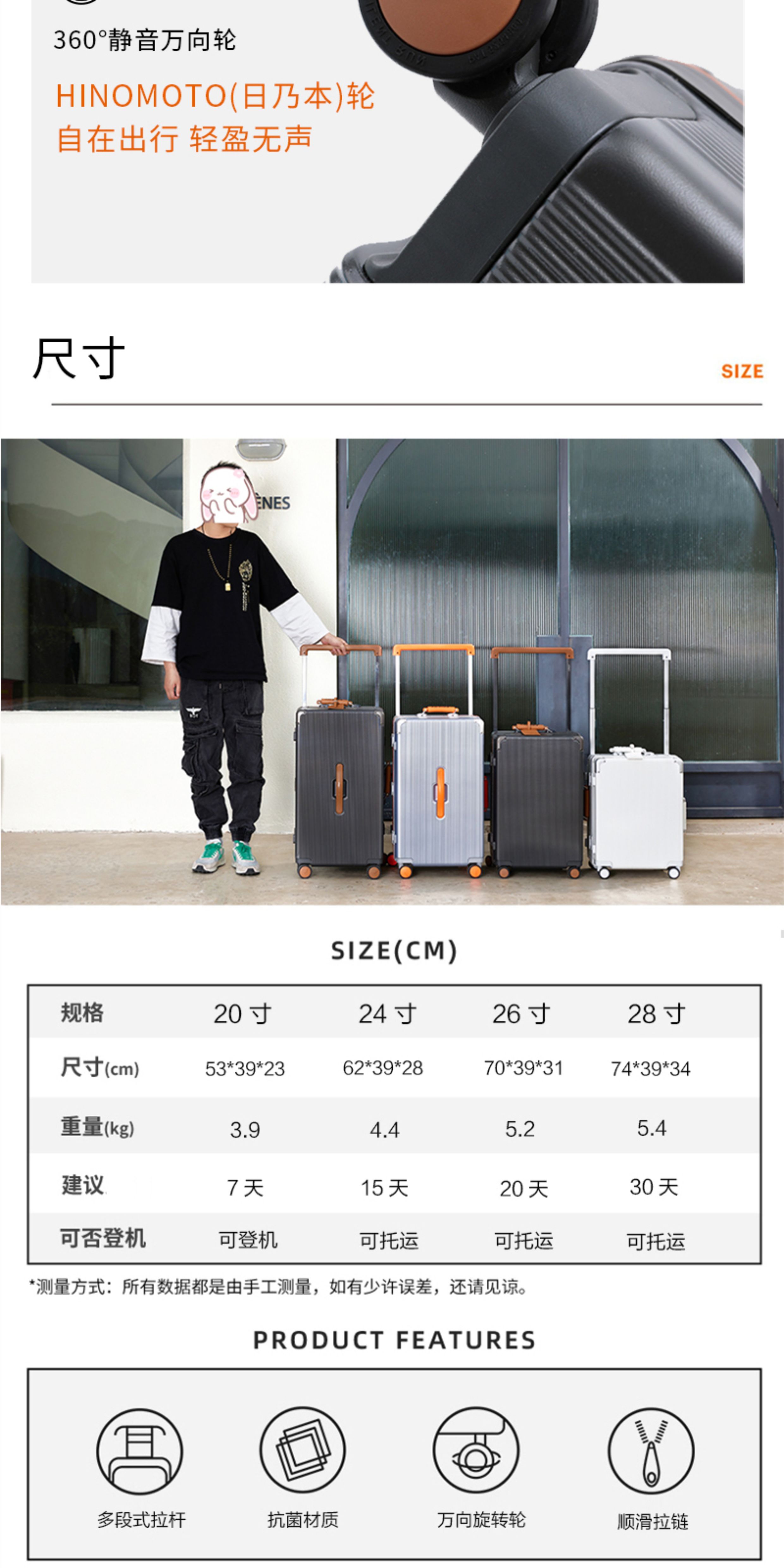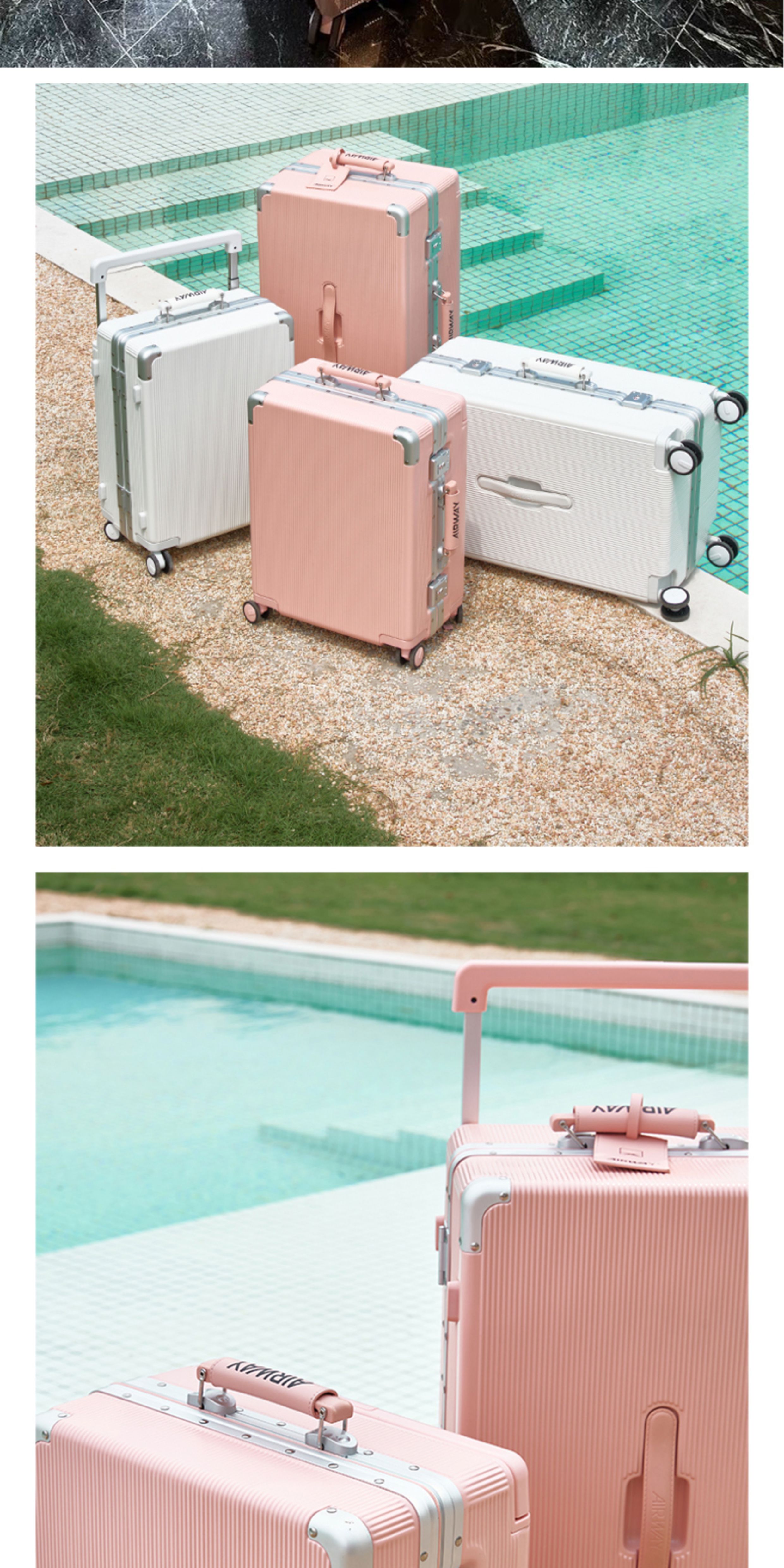 Japanese Aluminum Frame Suitcase for Women 20inch Carry-On Suitcase with Silent Universal Wheels Wide Trolley Case for Men Pc Travel Suitcase 28