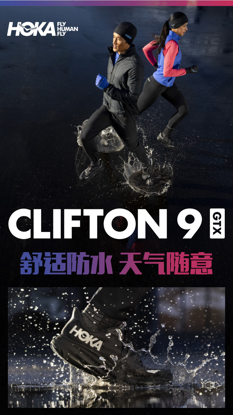 Hoka Men's and Women's Winter Clifton 9 Waterproof Road Running Shoes Clifton 9 Gtx Are Lightweight, Cushioning and Wear-Resistant