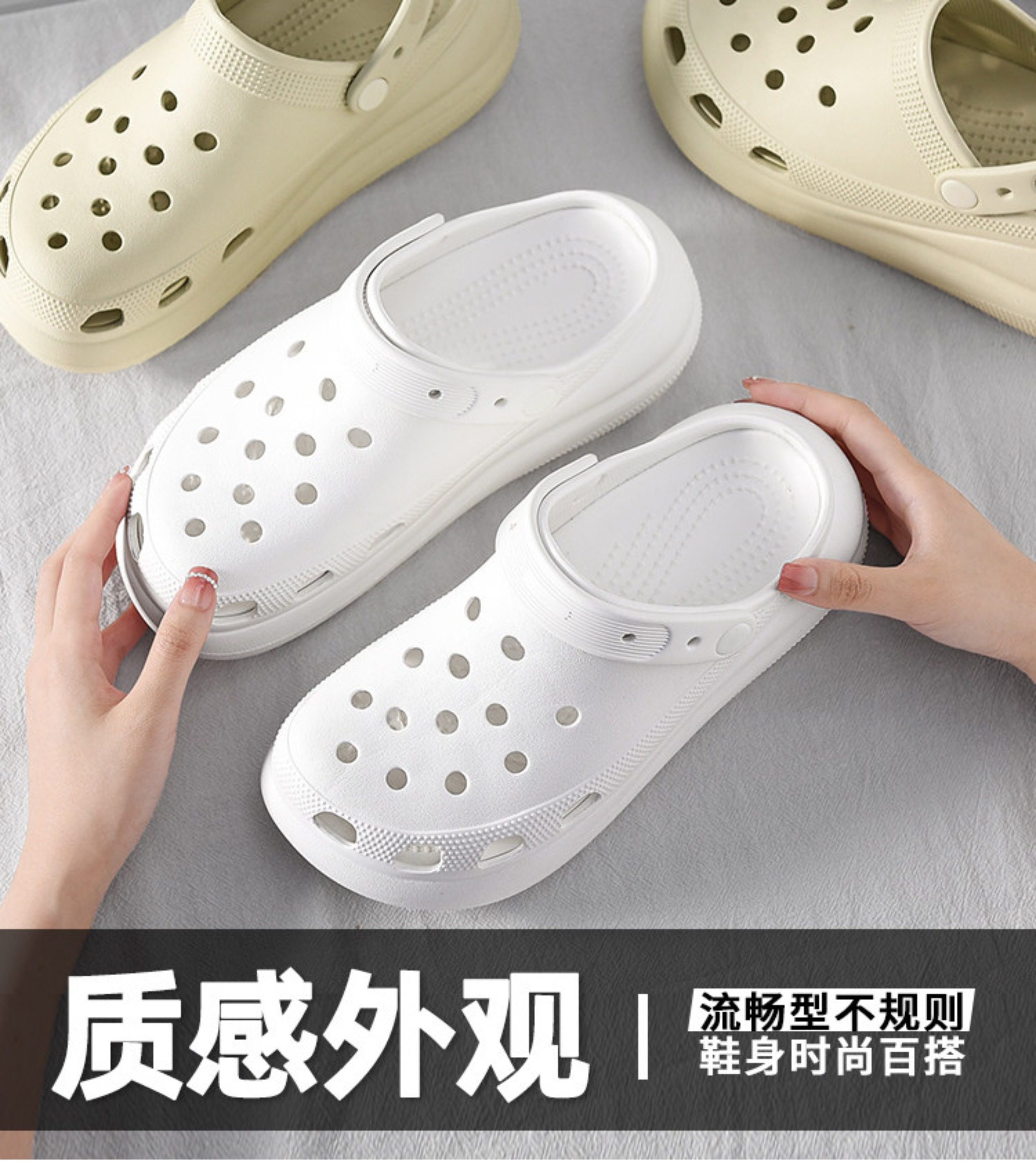 soft sole Puff Croc Shoes, the Same Style as Bai Jingting, Ultra-Thick-Soled Outdoor Slippers for Men and Women, Non-Slip Cloud-Shaped Closed-Toe Slippers