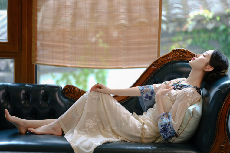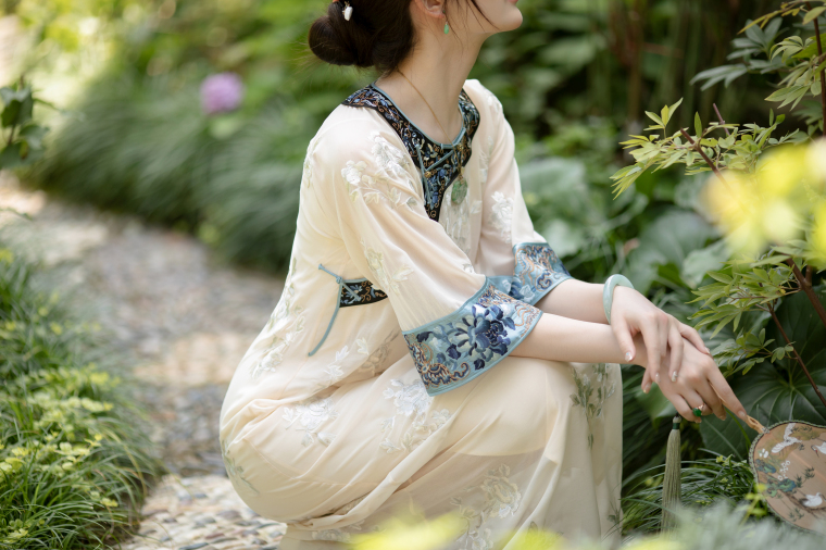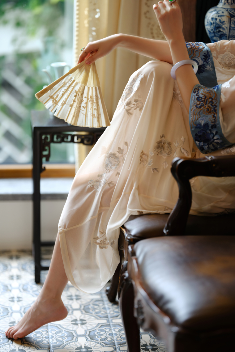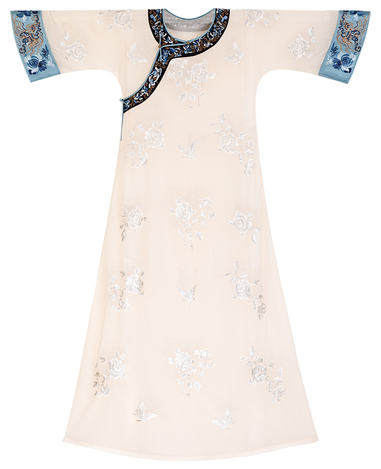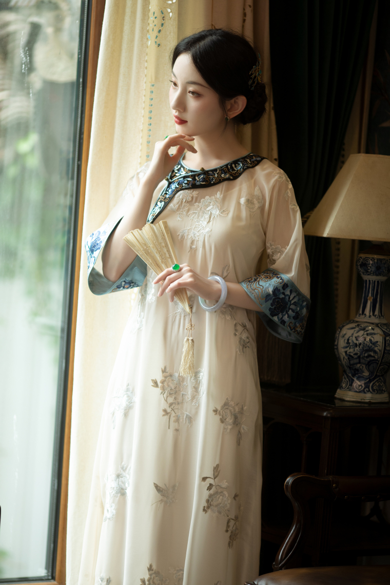 Wind Drunk on the Branches | a City of Wind and Snow | Summer Beige Tulle Embroidered Vintage Republic of China Style Collarless Oversized Sleeve Cheongsam