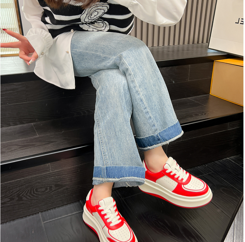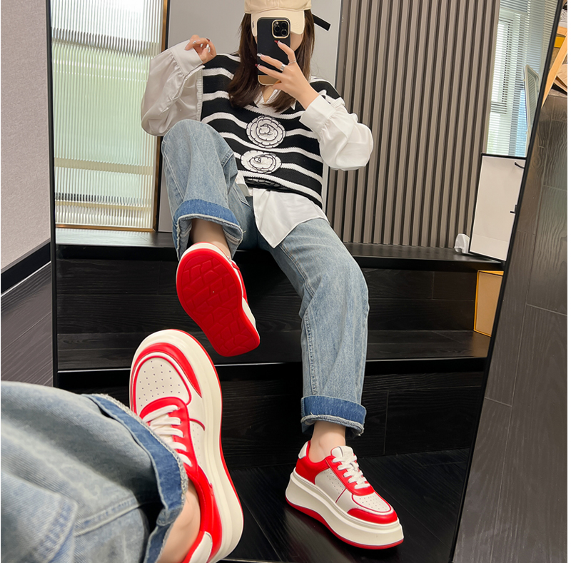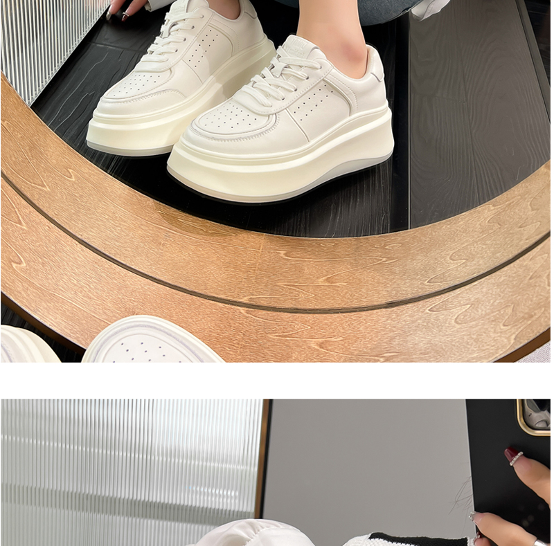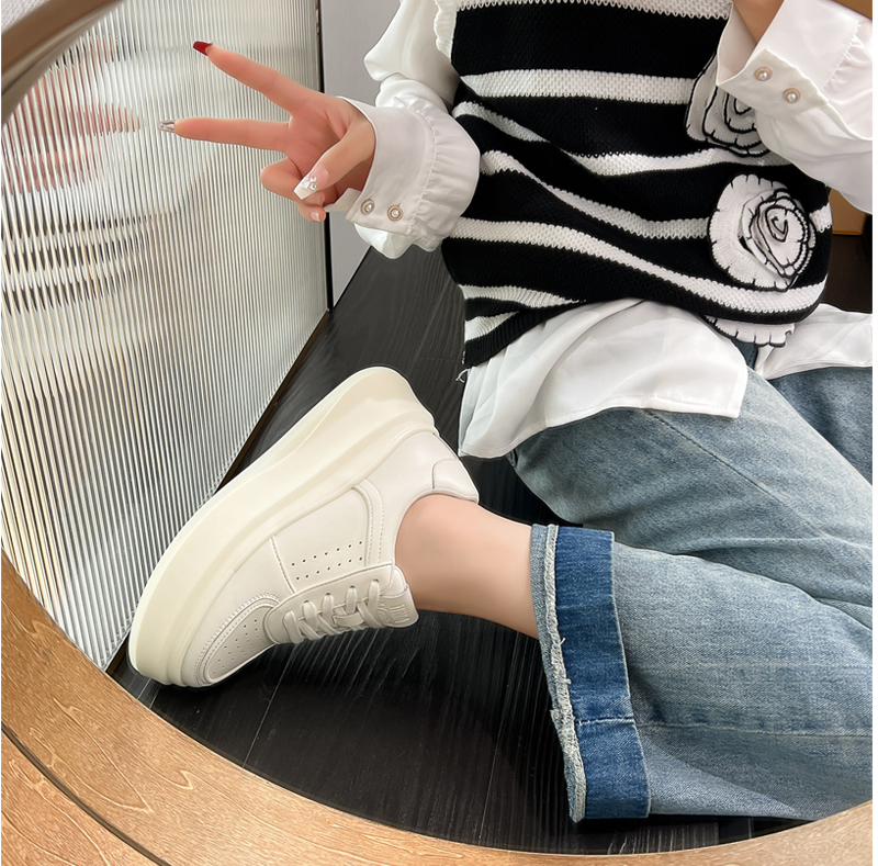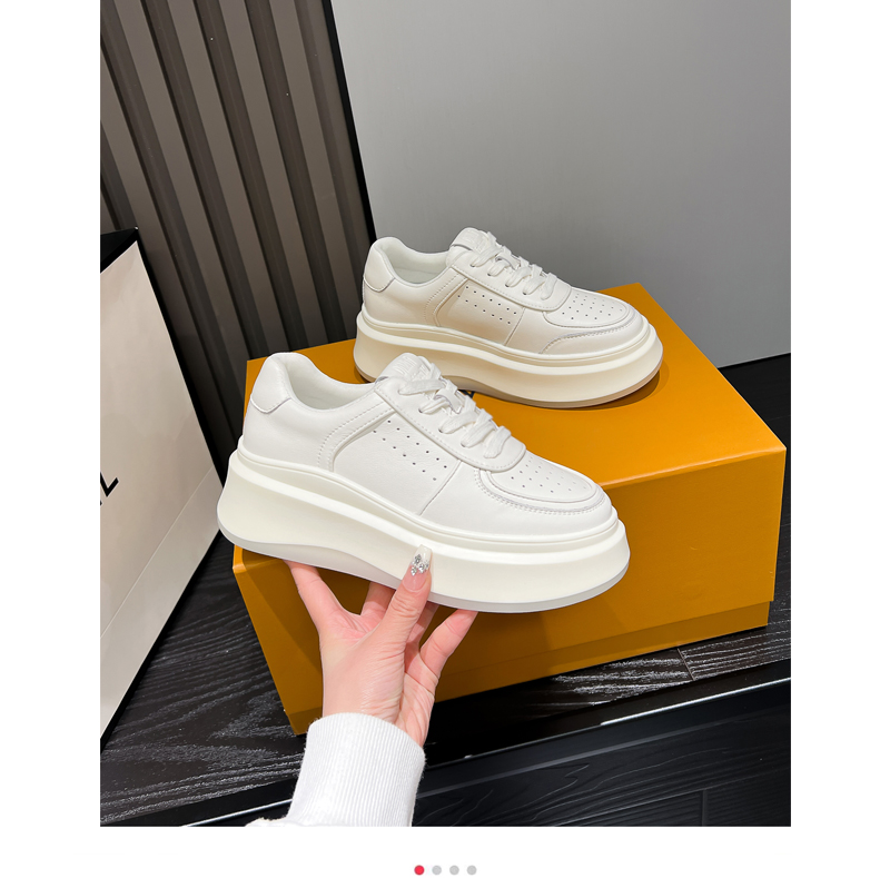 Thick-Soled White Shoes for Women 2025 New Spring & Fall Platform Shoes with Increased Height Spring White Sneakers Versatile Genuine Leather