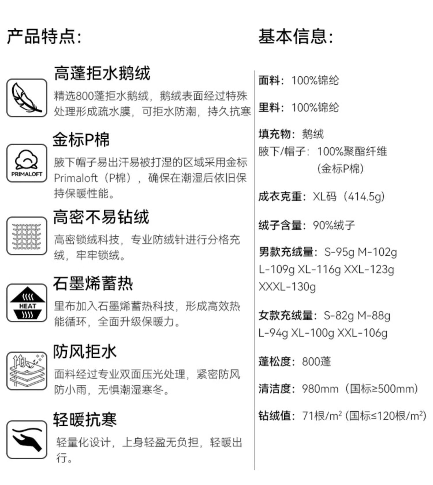 【Snow Fox 100 Goose down Jacket】Pathfinder 800 Fill Power down Jacket Men's Winter P-Cotton Waterproof Ribbed down Coat