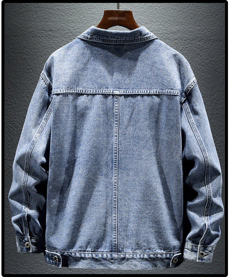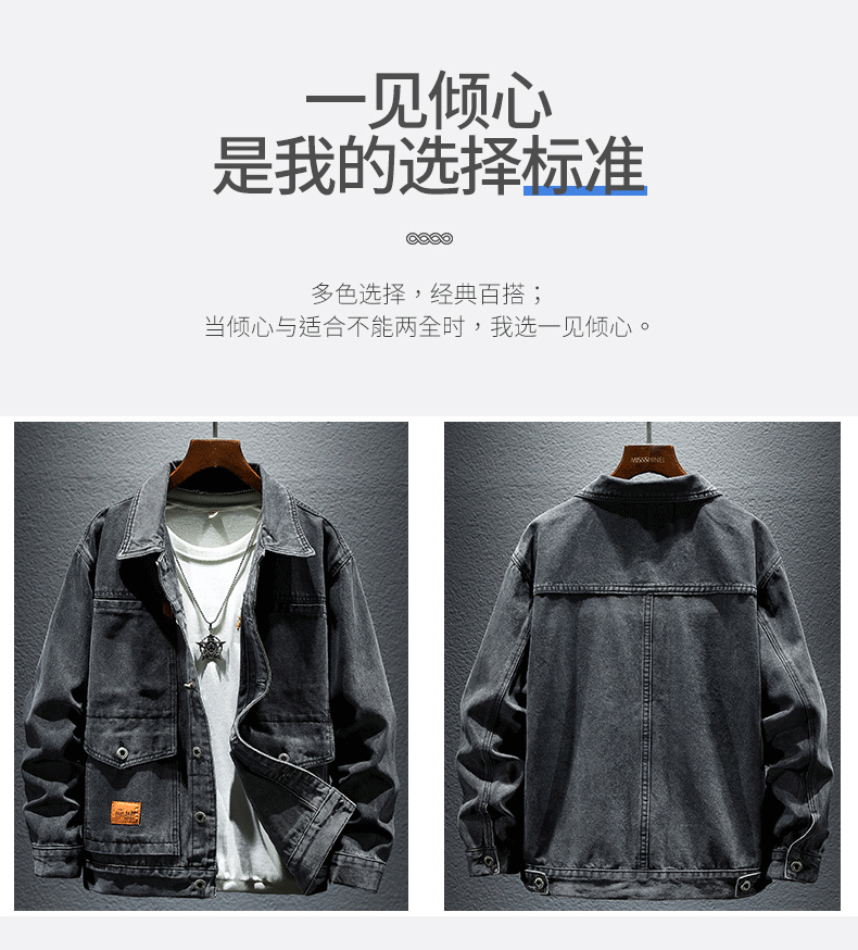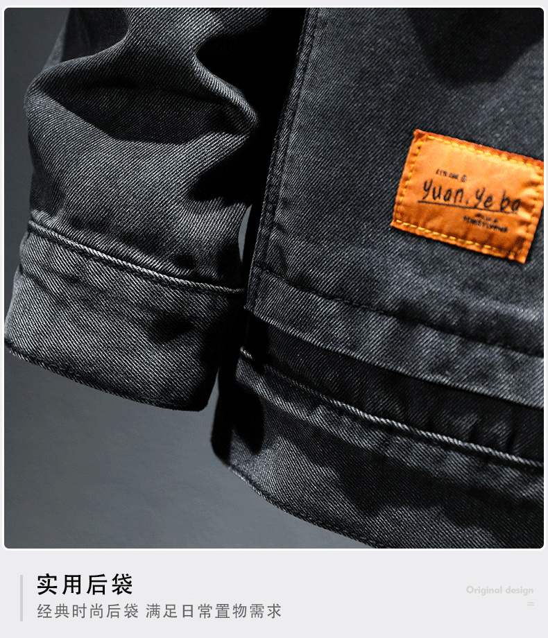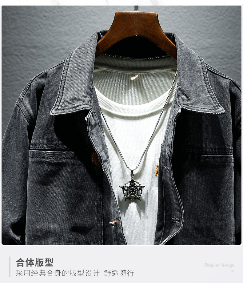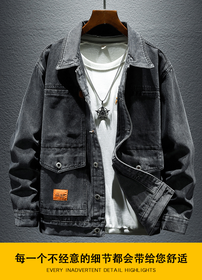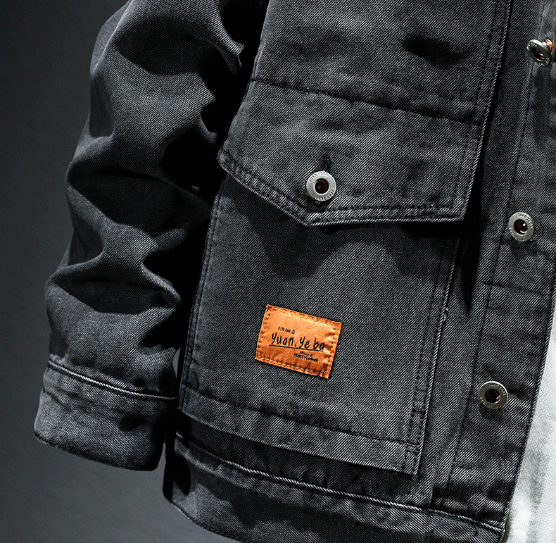 Trendy Retro High-End Black and Gray Denim Jacket for Men, Spring and Autumn, Trendy Casual Loose Large Size Workwear Jacket