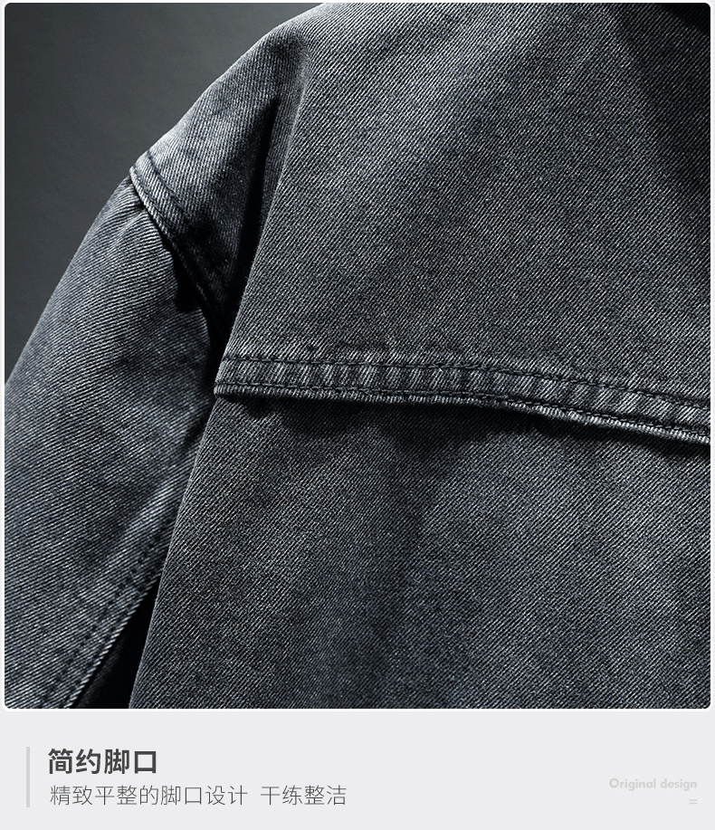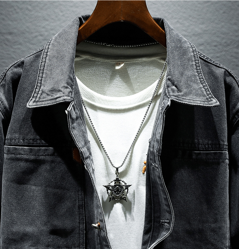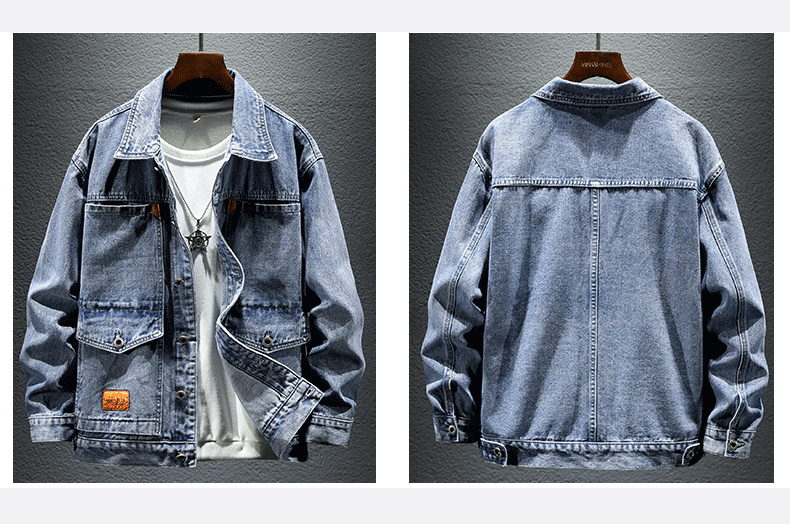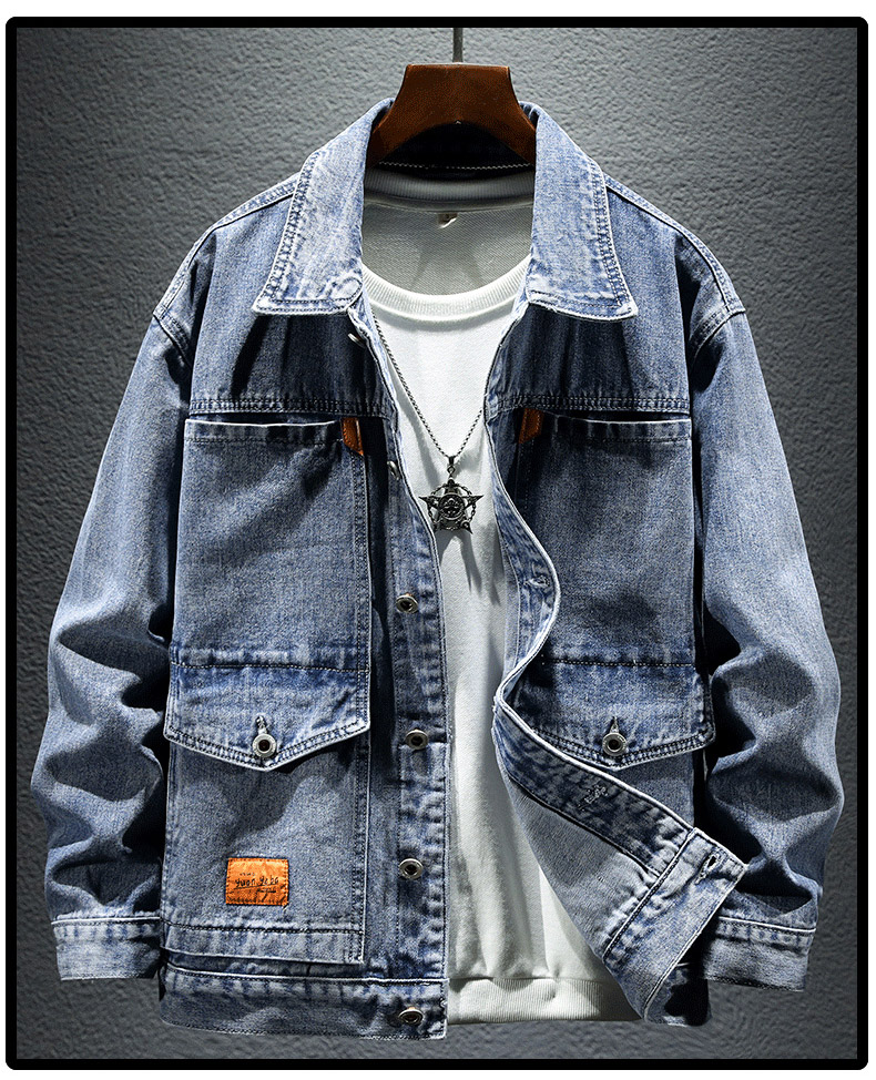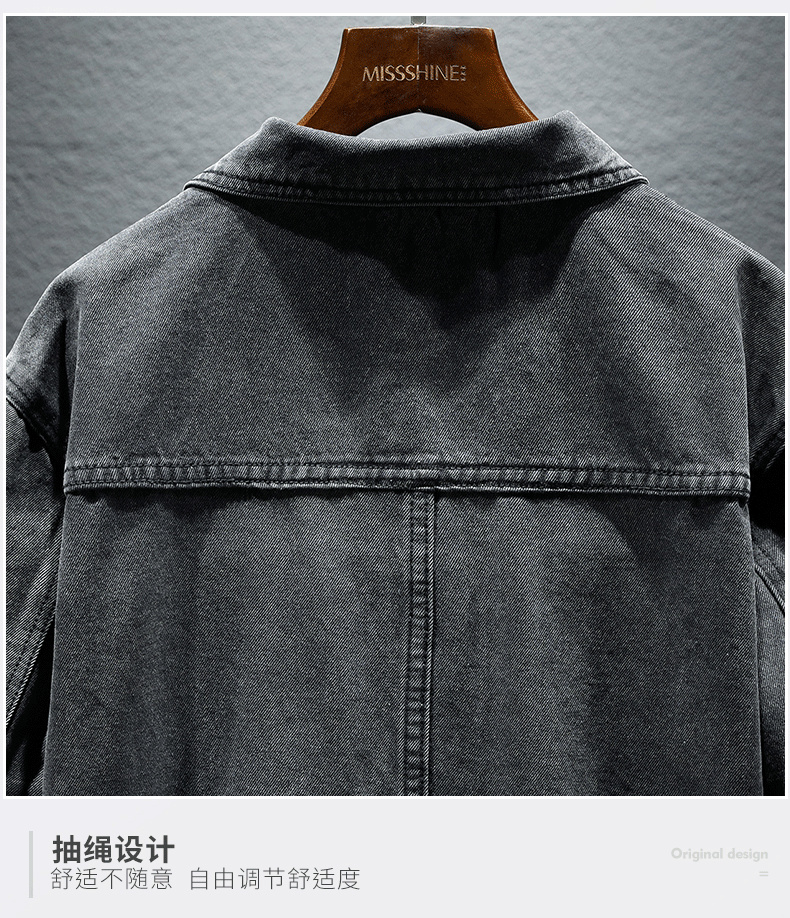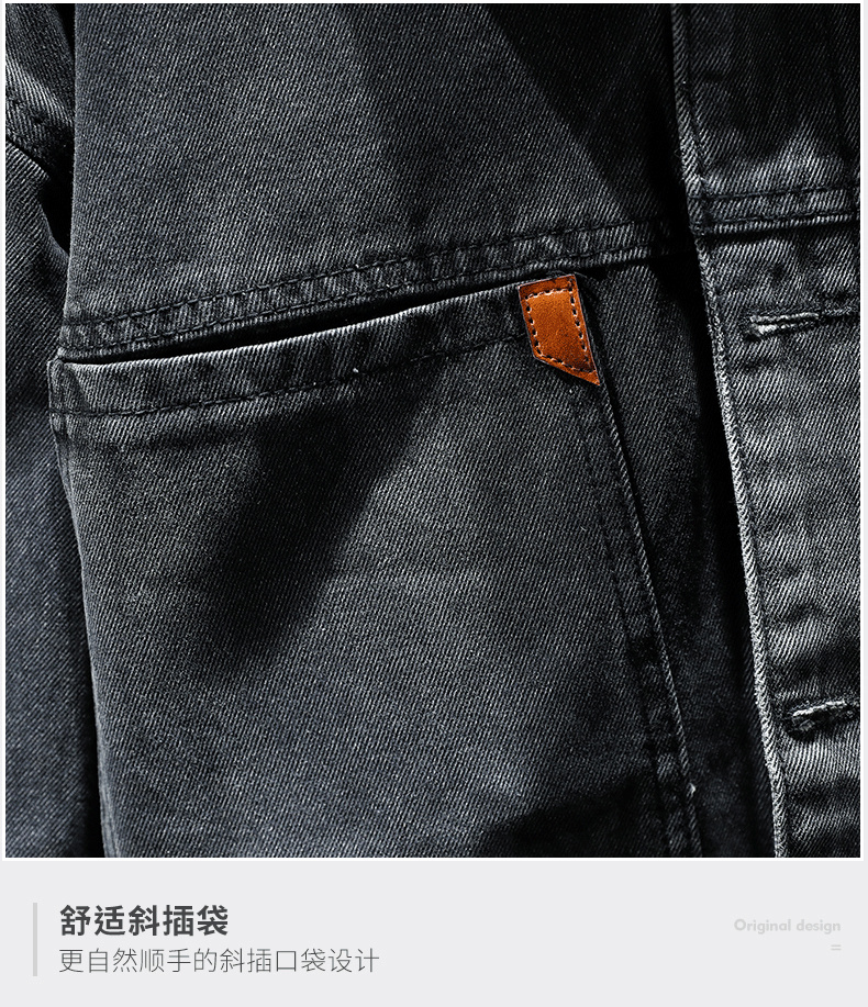 Trendy Retro High-End Black and Gray Denim Jacket for Men, Spring and Autumn, Trendy Casual Loose Large Size Workwear Jacket
