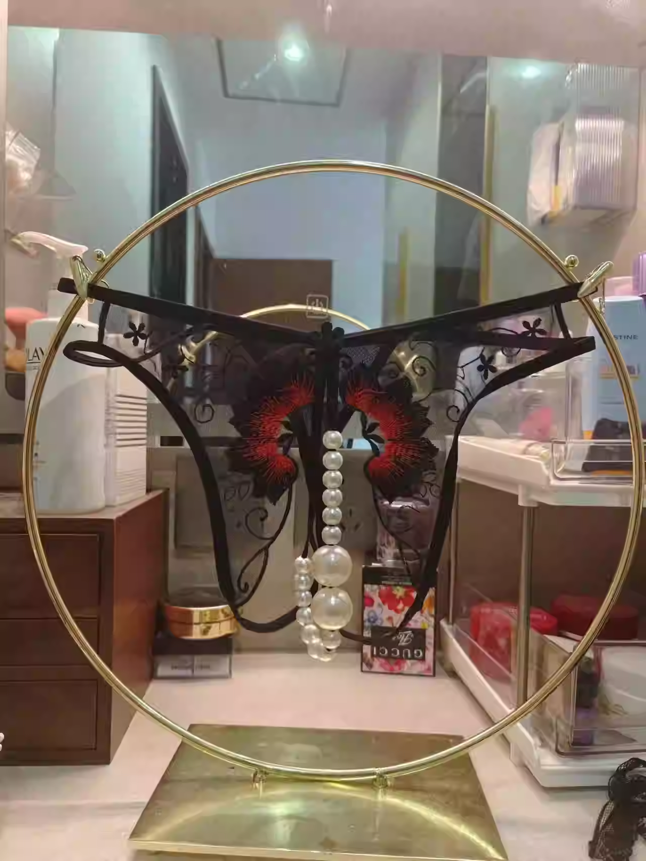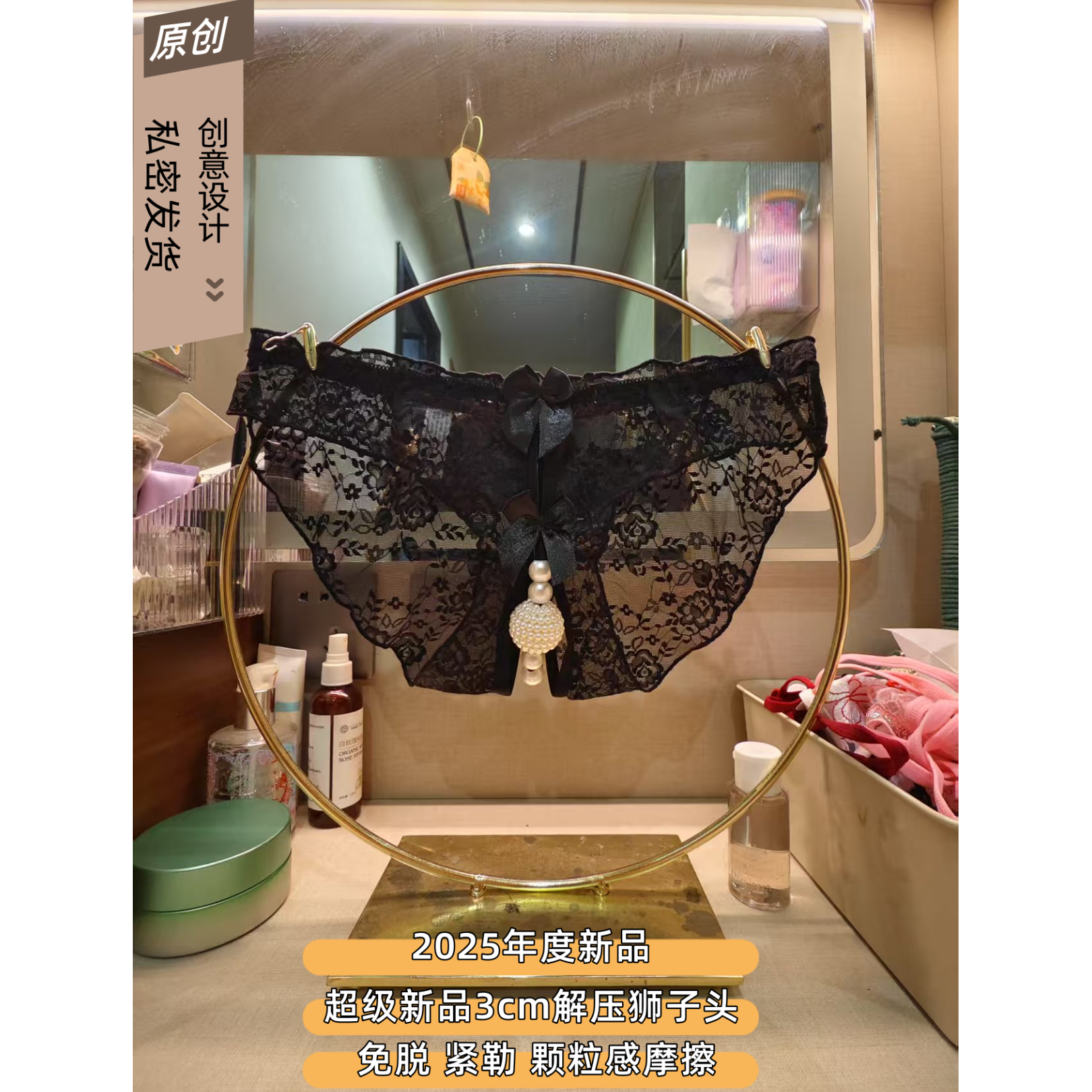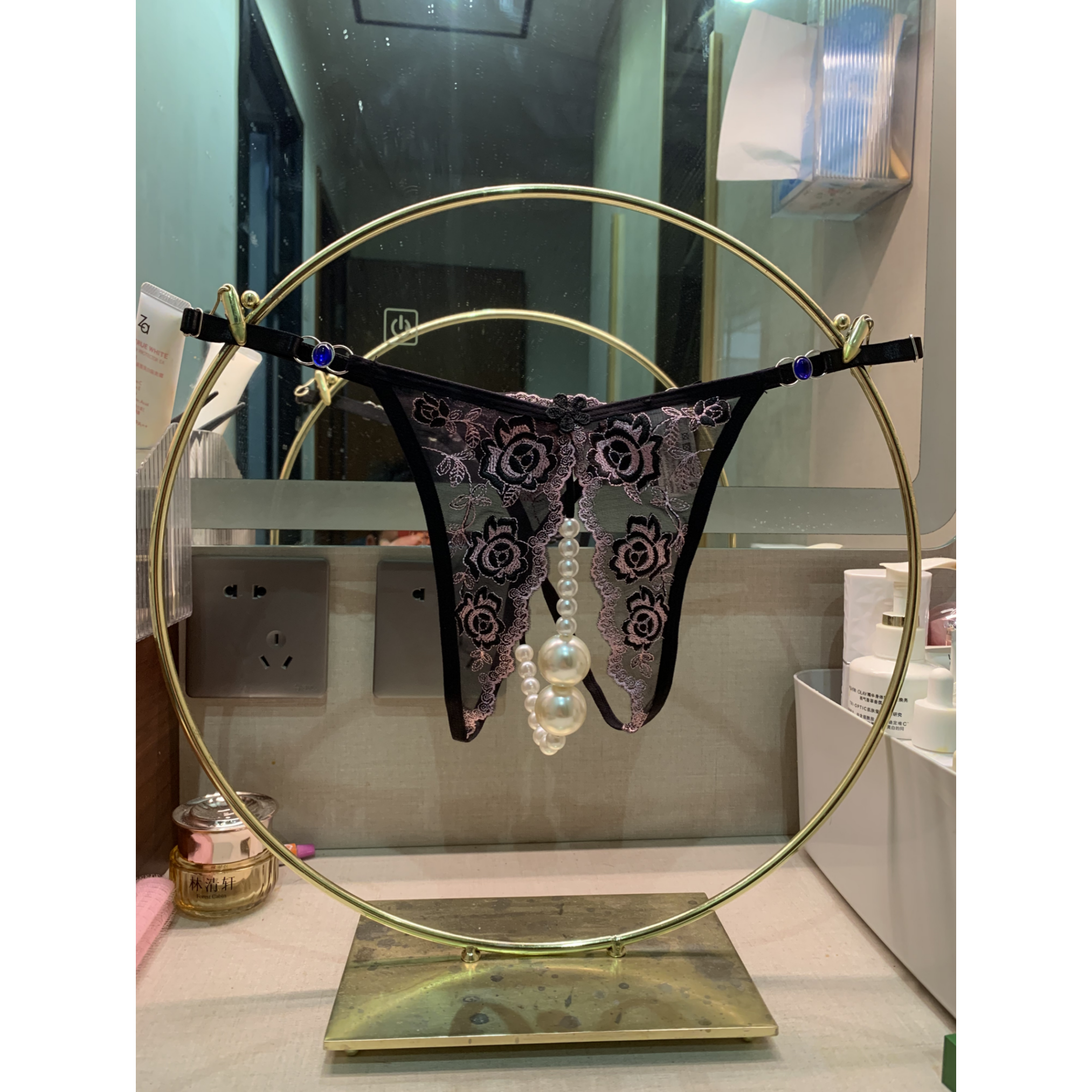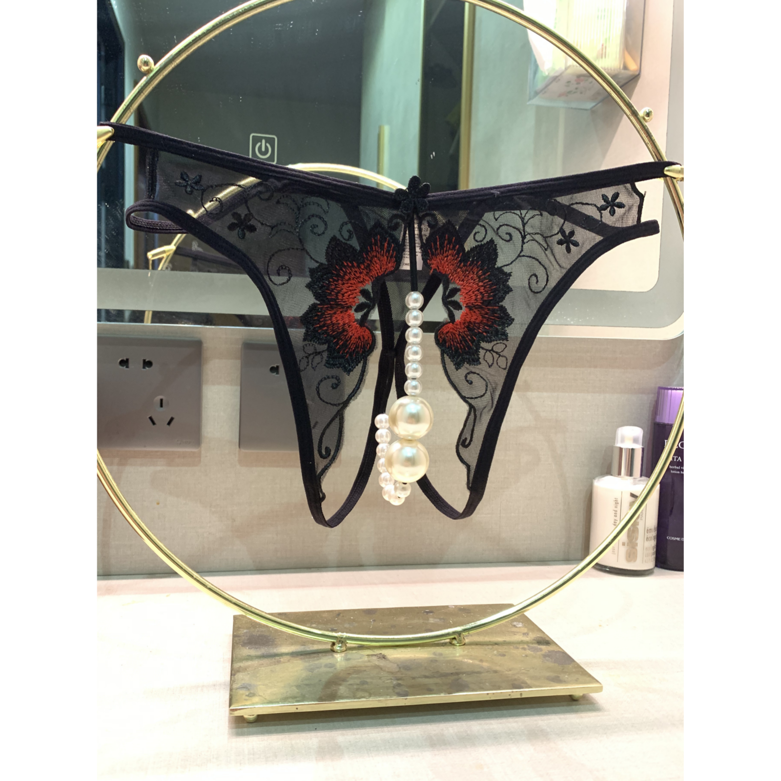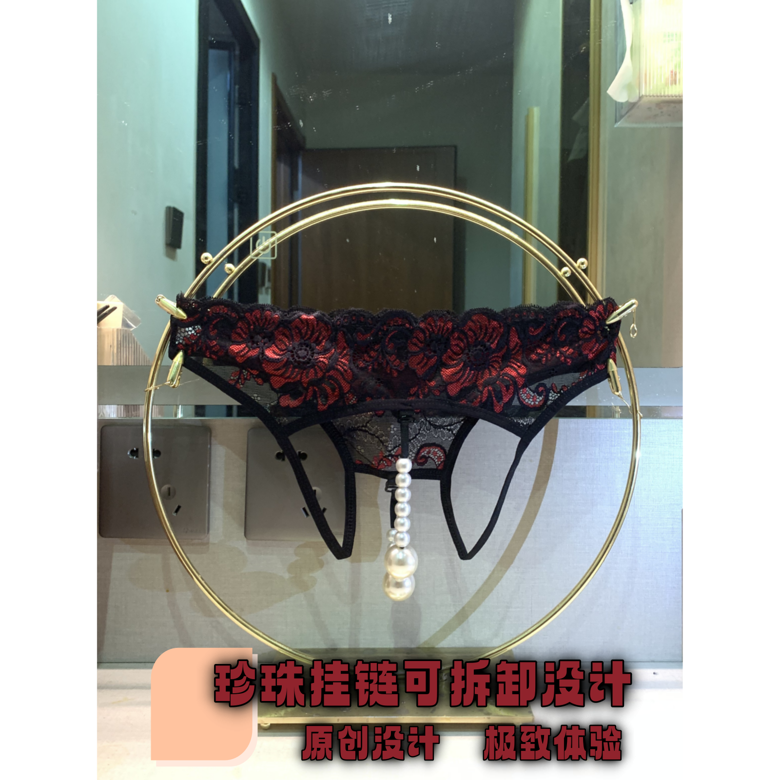 Extra Large Pearl Panties for Women, Lace Couple Panties, European and American Open-Crotch Sexy Thong, Fully Transparent Splicing
