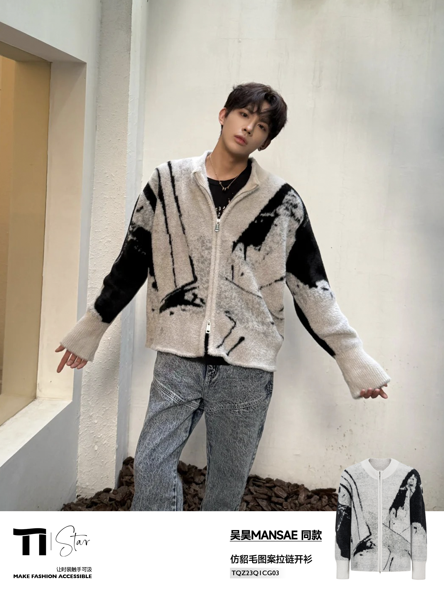 Qishilu Tiwilltang's "Thorns and Illusory Dirt" Zhang Kangle's Same Style High-Appearance Faux Mink Knit Sweater