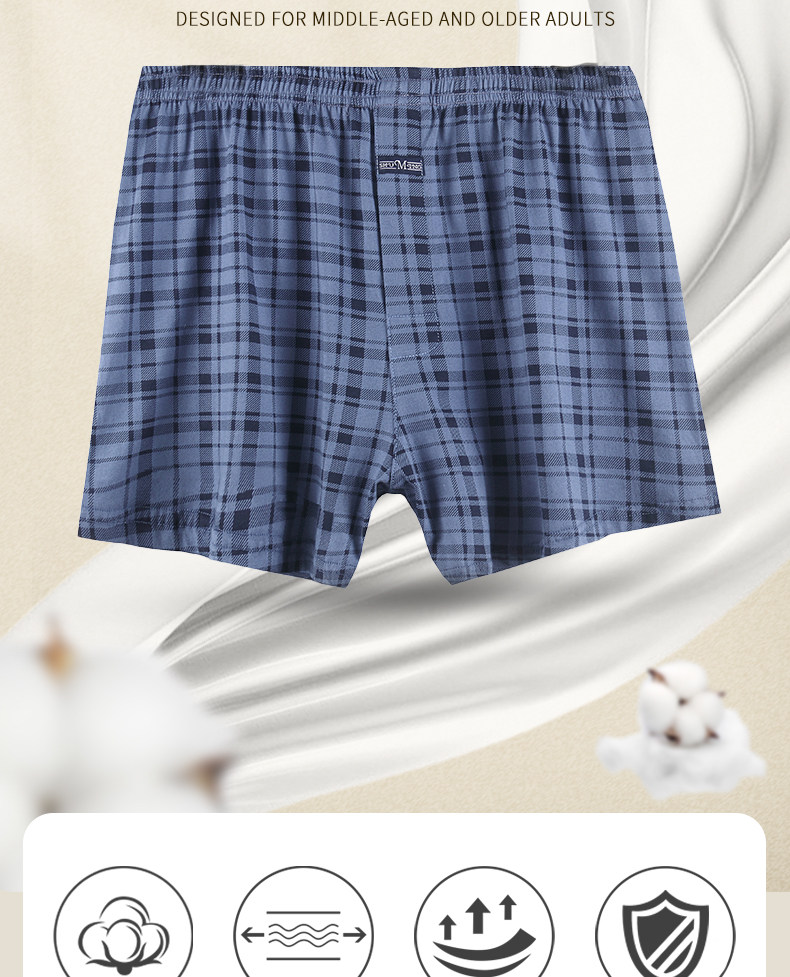 Men's Boxer Briefs, Pure Cotton, Loose Fit, Large Size, for Middle-Aged and Elderly Men, Suitable for Home Wear and Sleeping