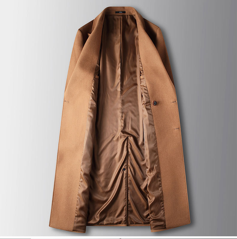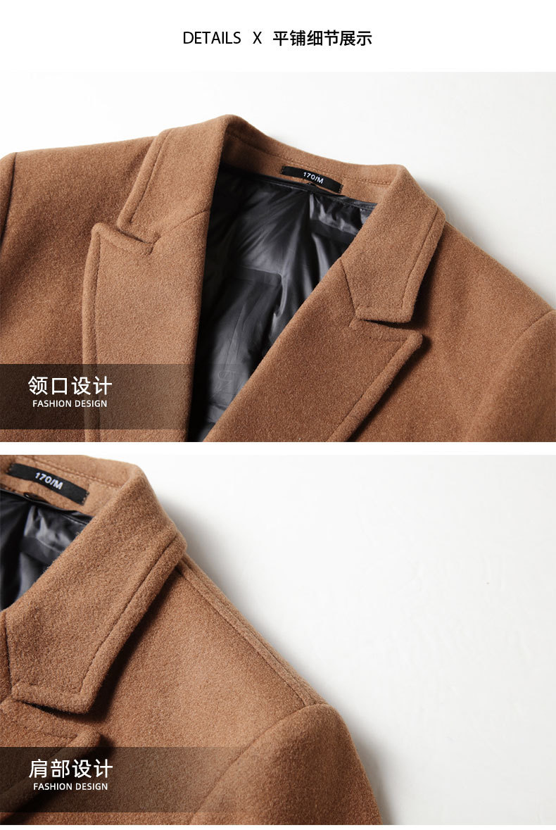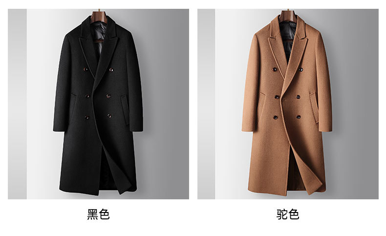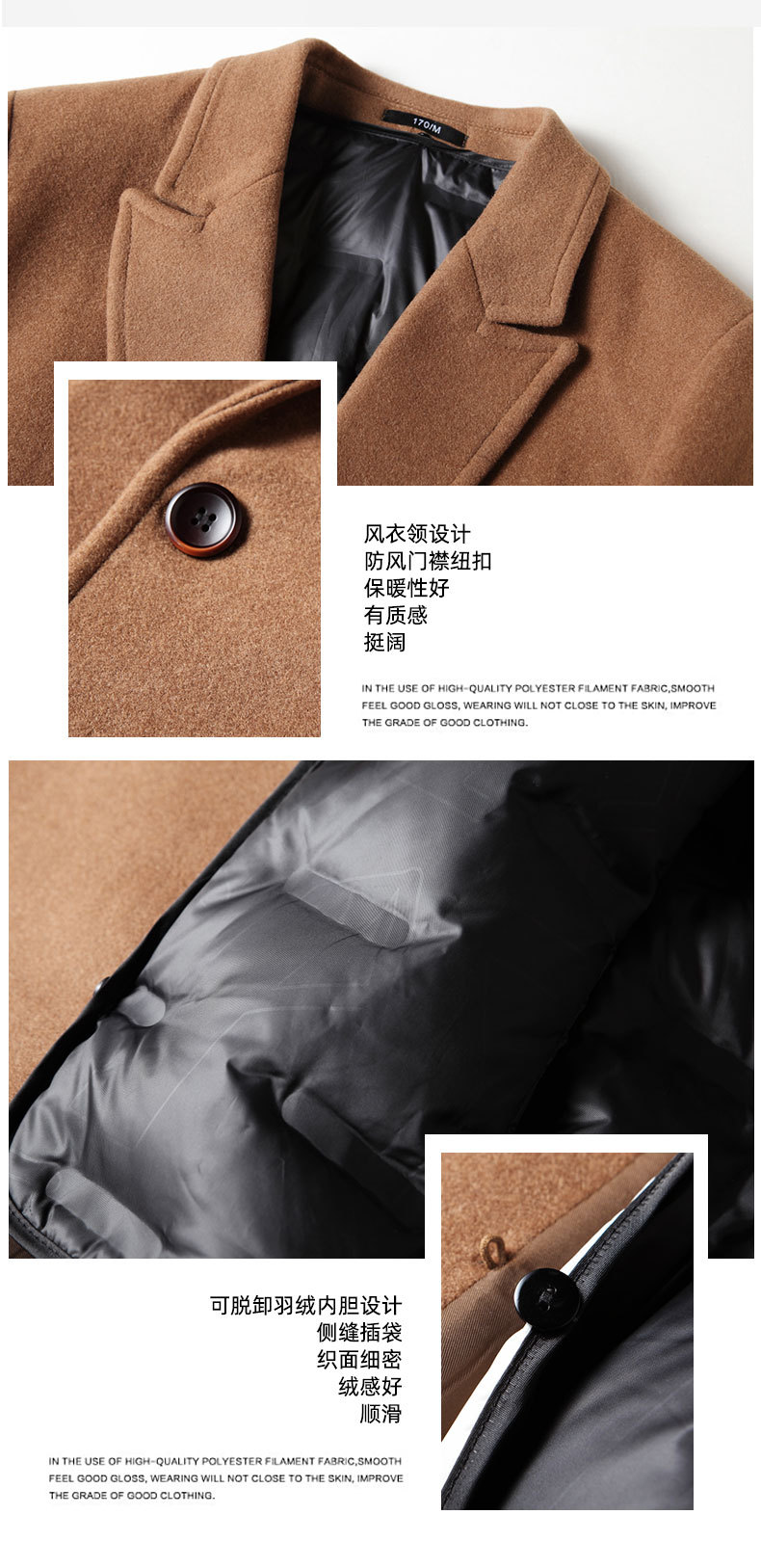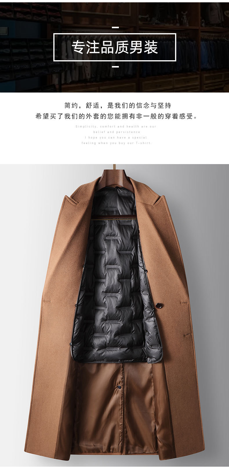 Long Coat for Men, Woolen Trench Coat, Over-The-Knee, Double-Breasted, Detachable down Liner, Thickened Youth Jacket