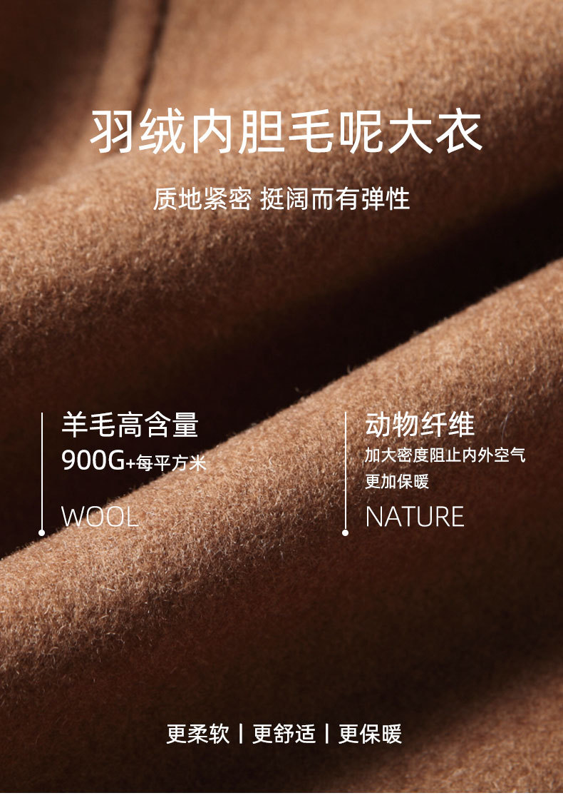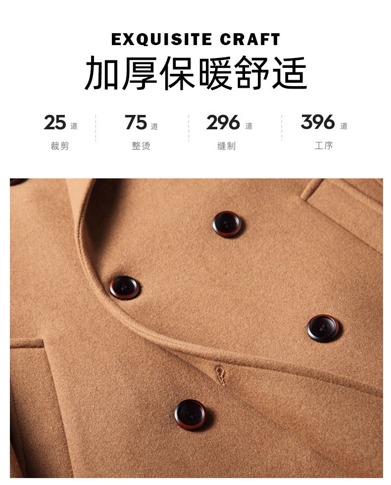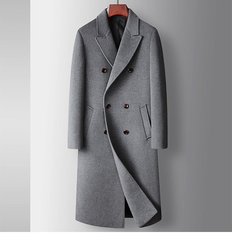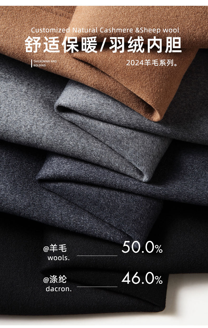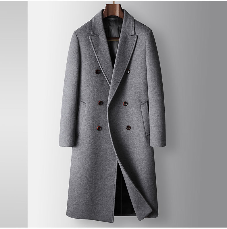 Long Coat for Men, Woolen Trench Coat, Over-The-Knee, Double-Breasted, Detachable down Liner, Thickened Youth Jacket