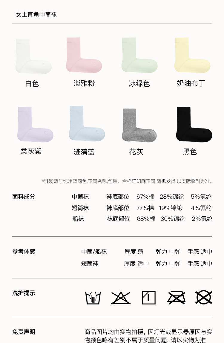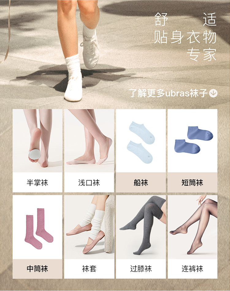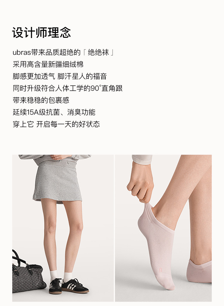 Ubras Xinjiang Cotton Women's Solid Color Short and Mid-Calf Socks 15A Antibacterial Breathable Deodorant Pure Cotton Socks Right-Angle Socks Women's Socks