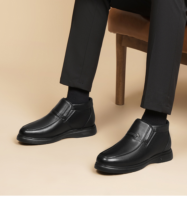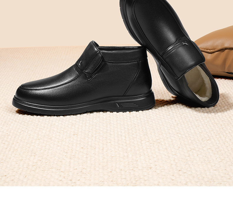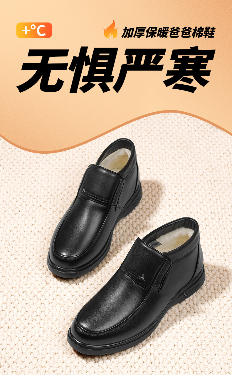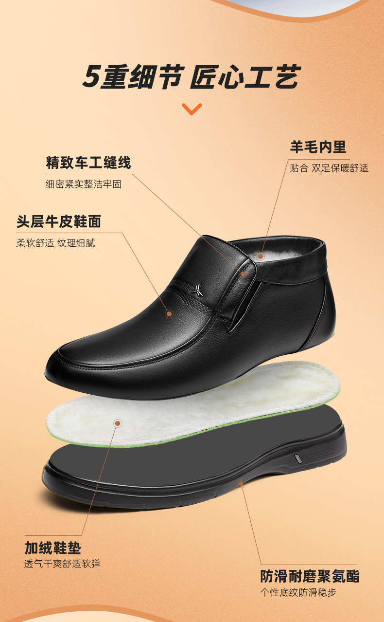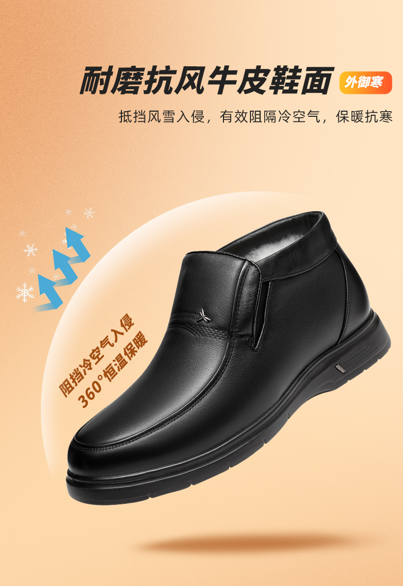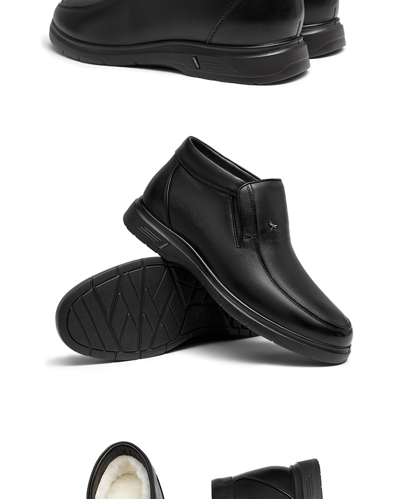 Red Dragonfly Men's Cotton Shoes Winter New Style Wool Casual Genuine Leather High-Top Fleece-Lined Leather Shoes Warm Middle-Aged Dad Shoes
