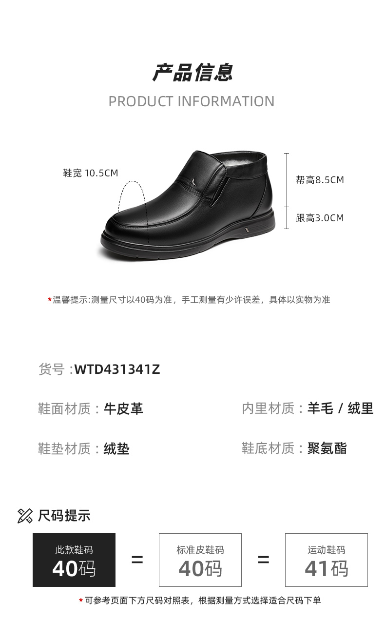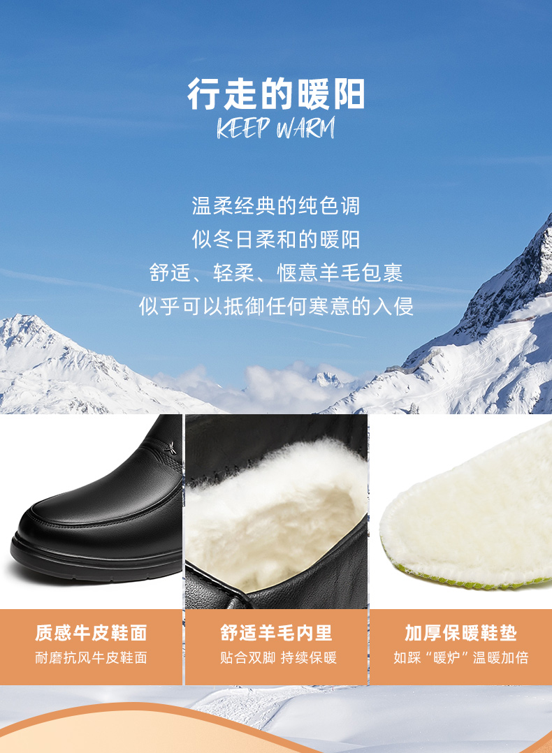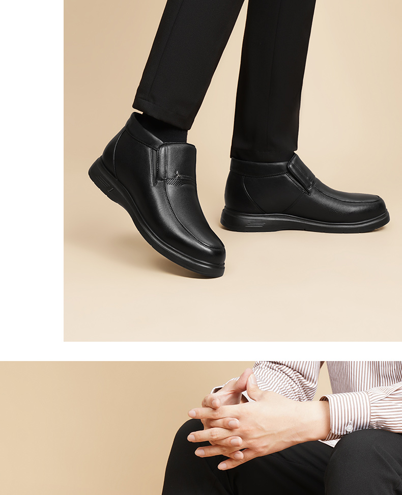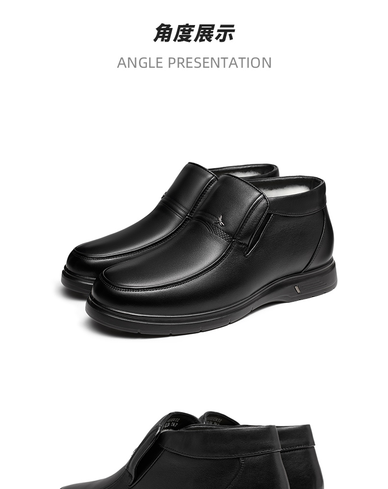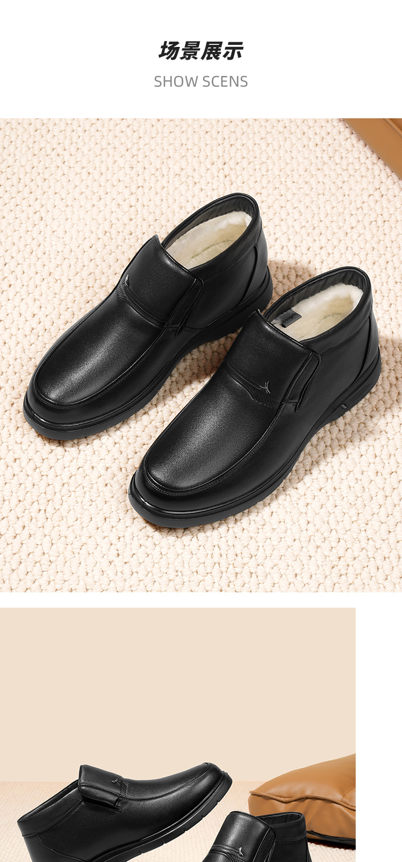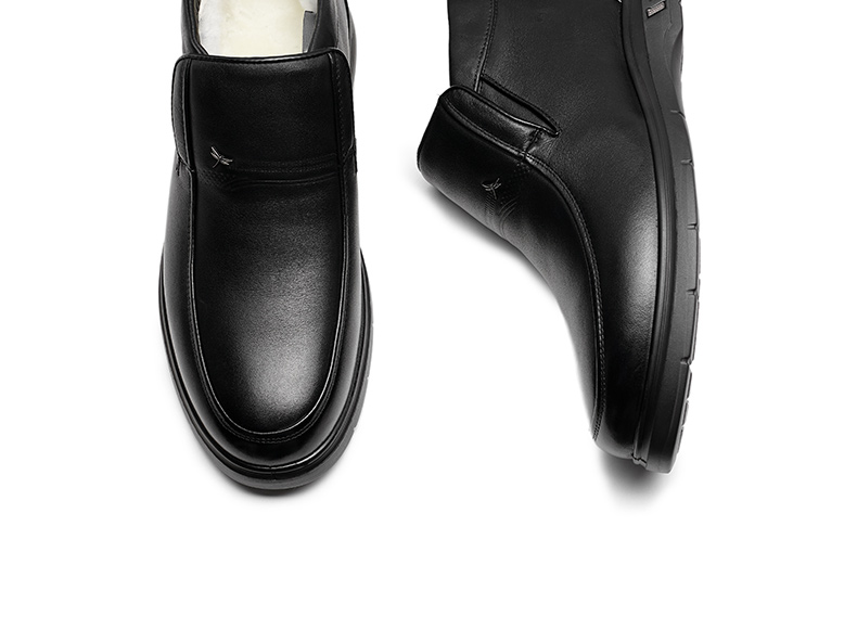Red Dragonfly Men's Cotton Shoes Winter New Style Wool Casual Genuine Leather High-Top Fleece-Lined Leather Shoes Warm Middle-Aged Dad Shoes