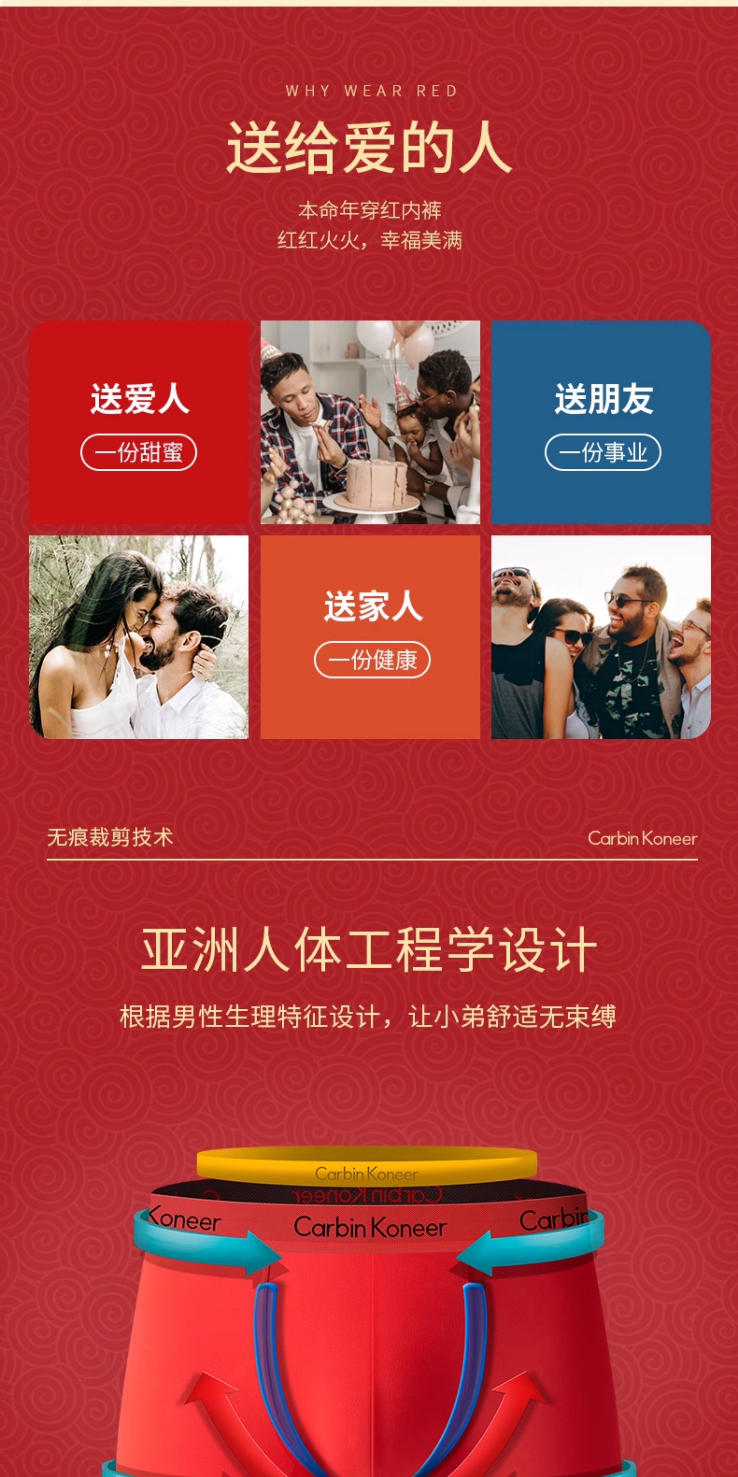 Carbinkoneer Men's Red Underwear, Boys' Red Zodiac Year of the Horse Boxer Briefs 2026 Men's Gift Box Set