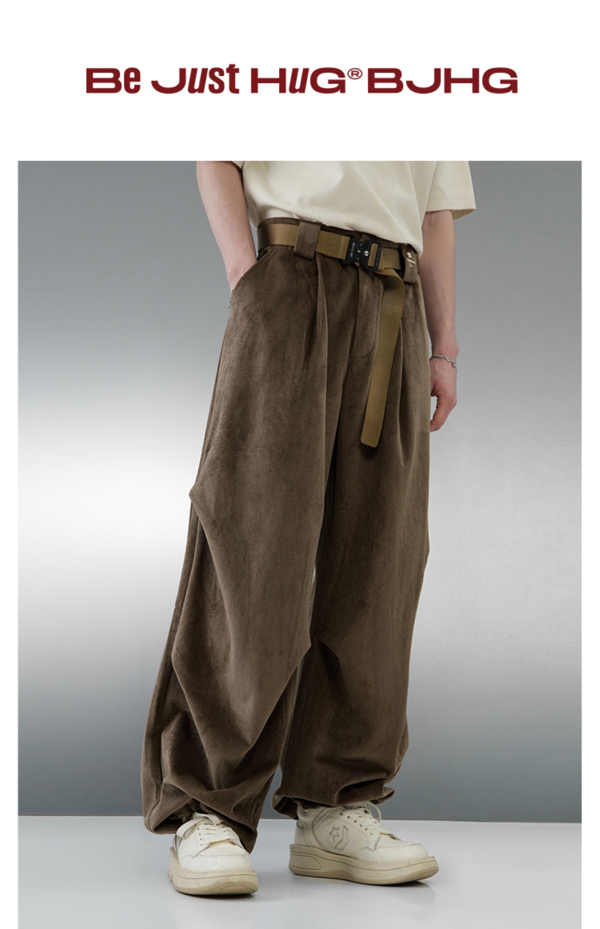 Bjhg Reckless and Relaxed Retro Work Pants Unisex Autumn Sweatpants Melard Wide-Leg Paratrooper Pants