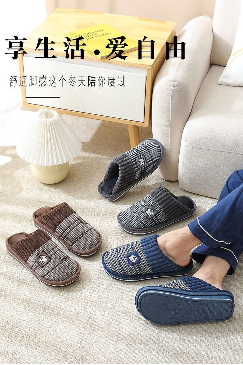 2025 New Autumn and Winter Thickened Men's Large Size Warm Cotton Slippers Northeast Home Indoor Non-Slip 4546