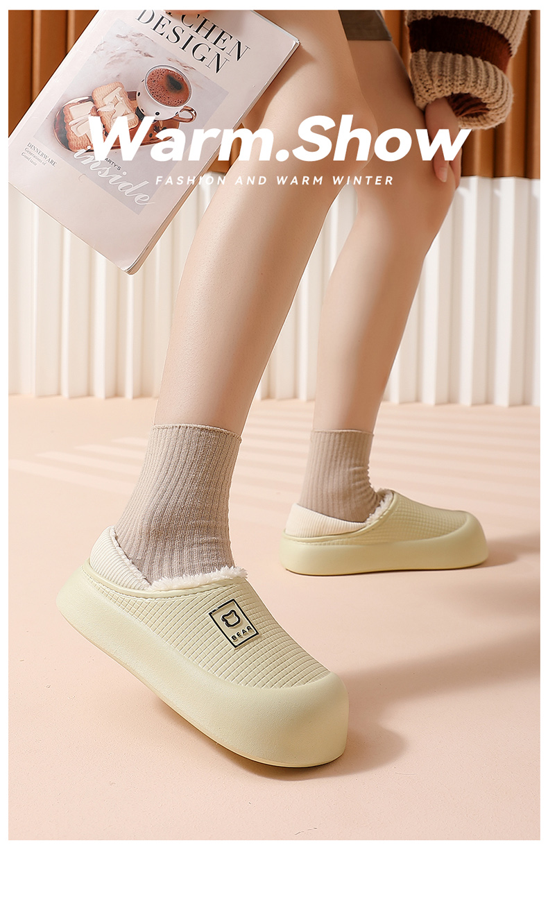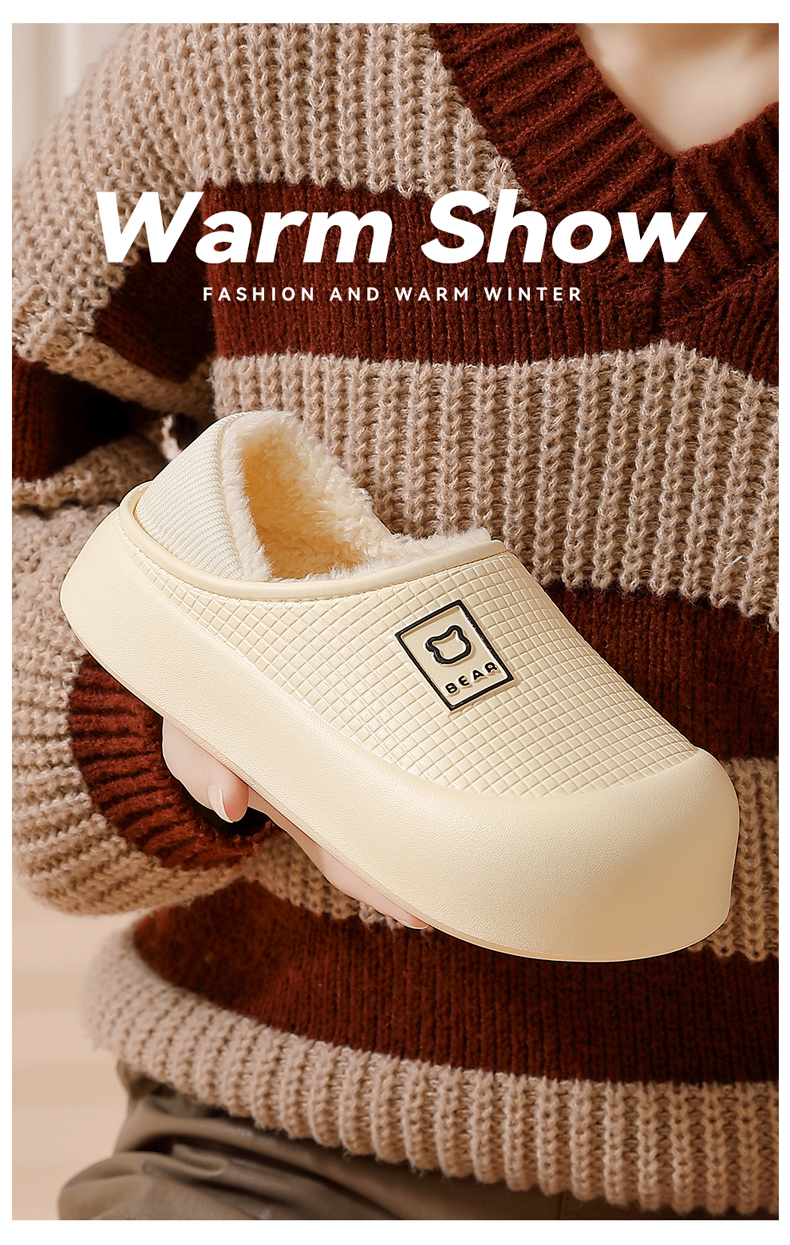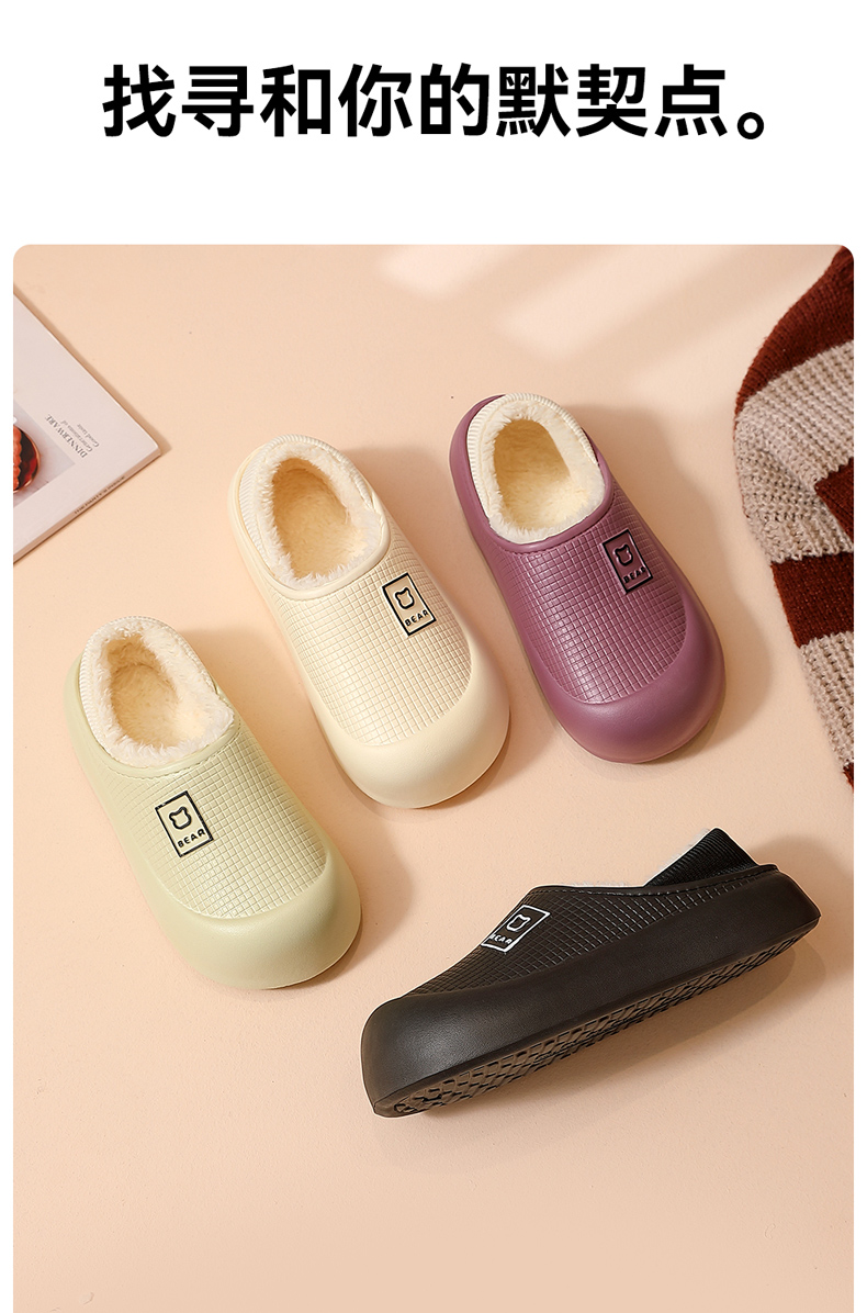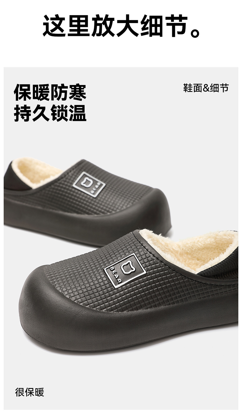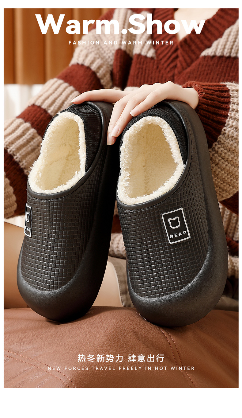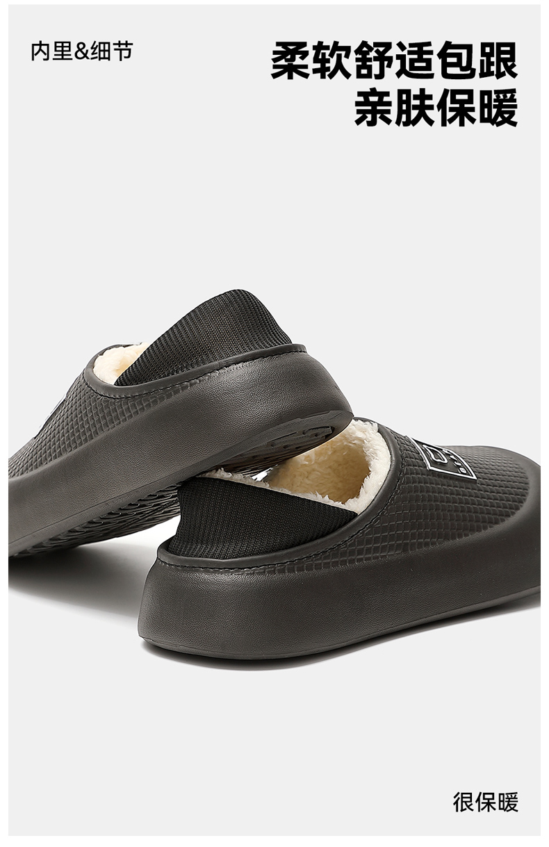 Waterproof Cotton Slippers for Men, Winter 2025 New Indoor Home Non-Slip Thick-Soled Plush Warm Closed-Back Cotton Shoes for Men