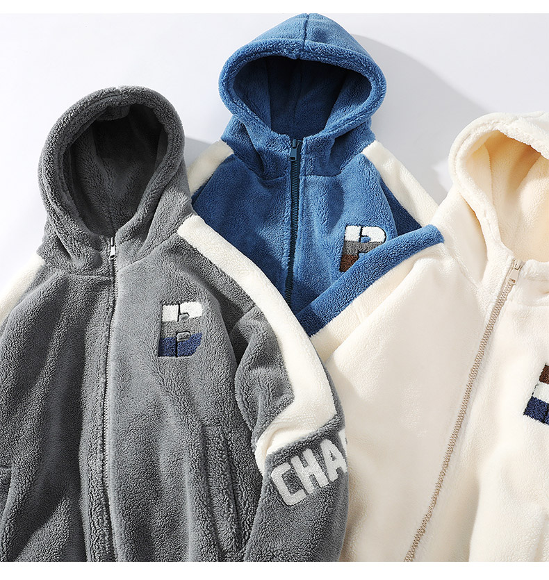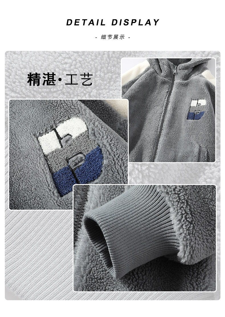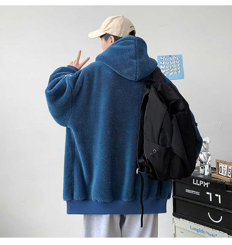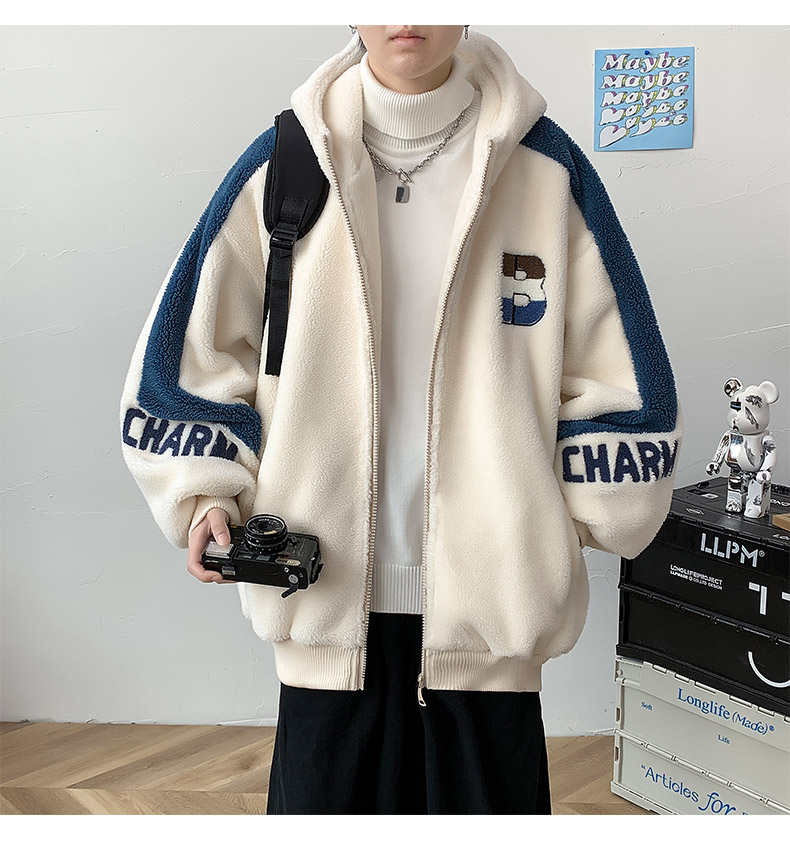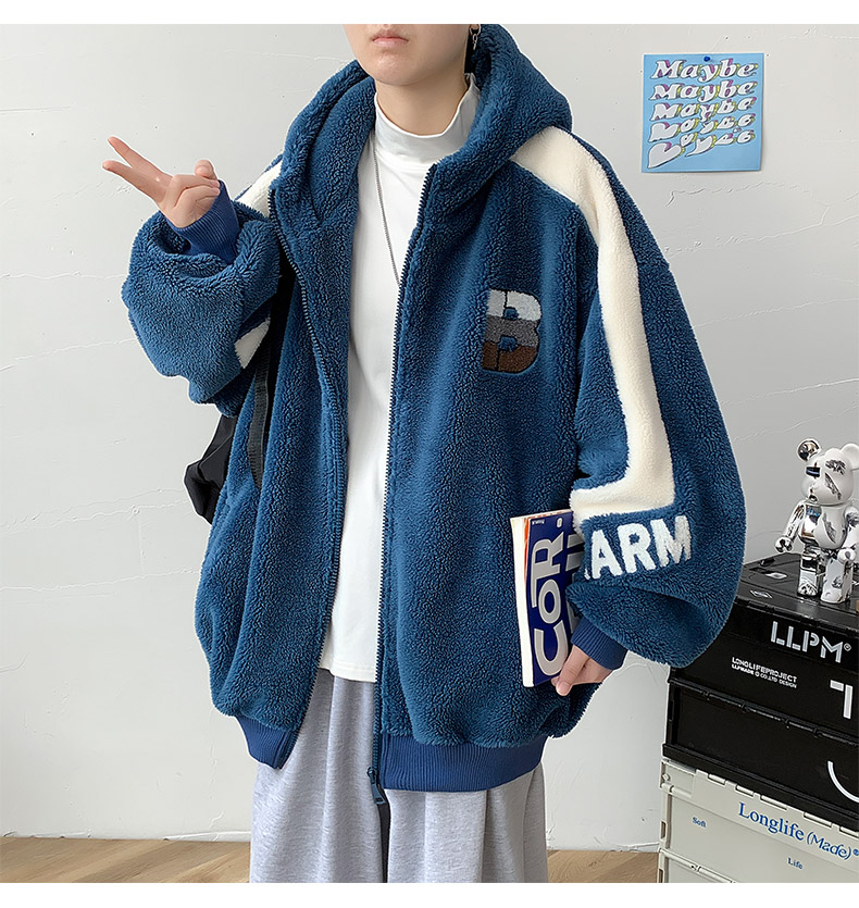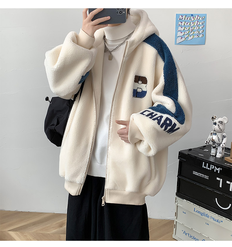 Teenager's Lamb Wool Plush Jacket for Men, Winter Thickened with Fleece, Hooded, Trendy, Warm, Suitable for Middle and High School Students and College Students, Cotton Clothing