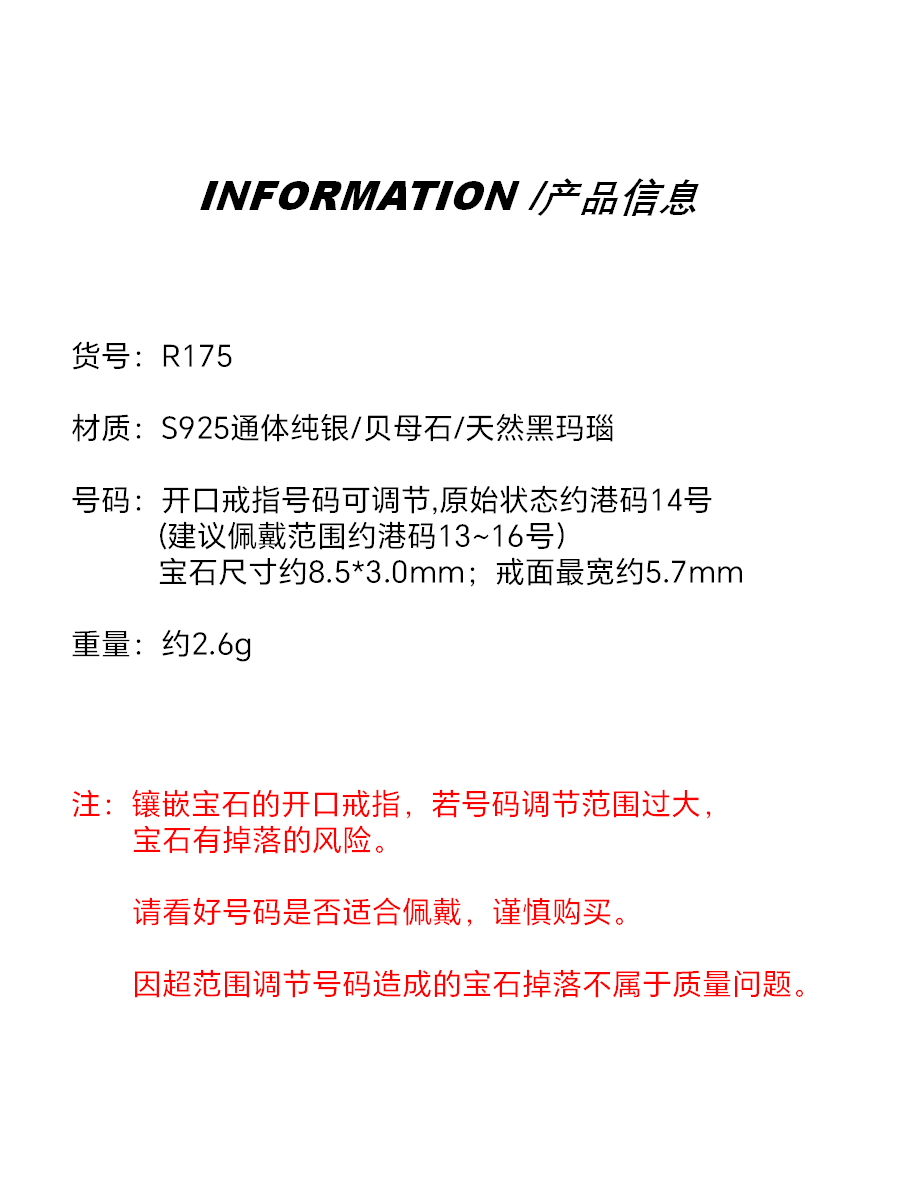 New Year's Gift Black Onyx White Mother-Of-Pearl Elegant and Exquisite Matte Ring S925 Sterling Silver R175