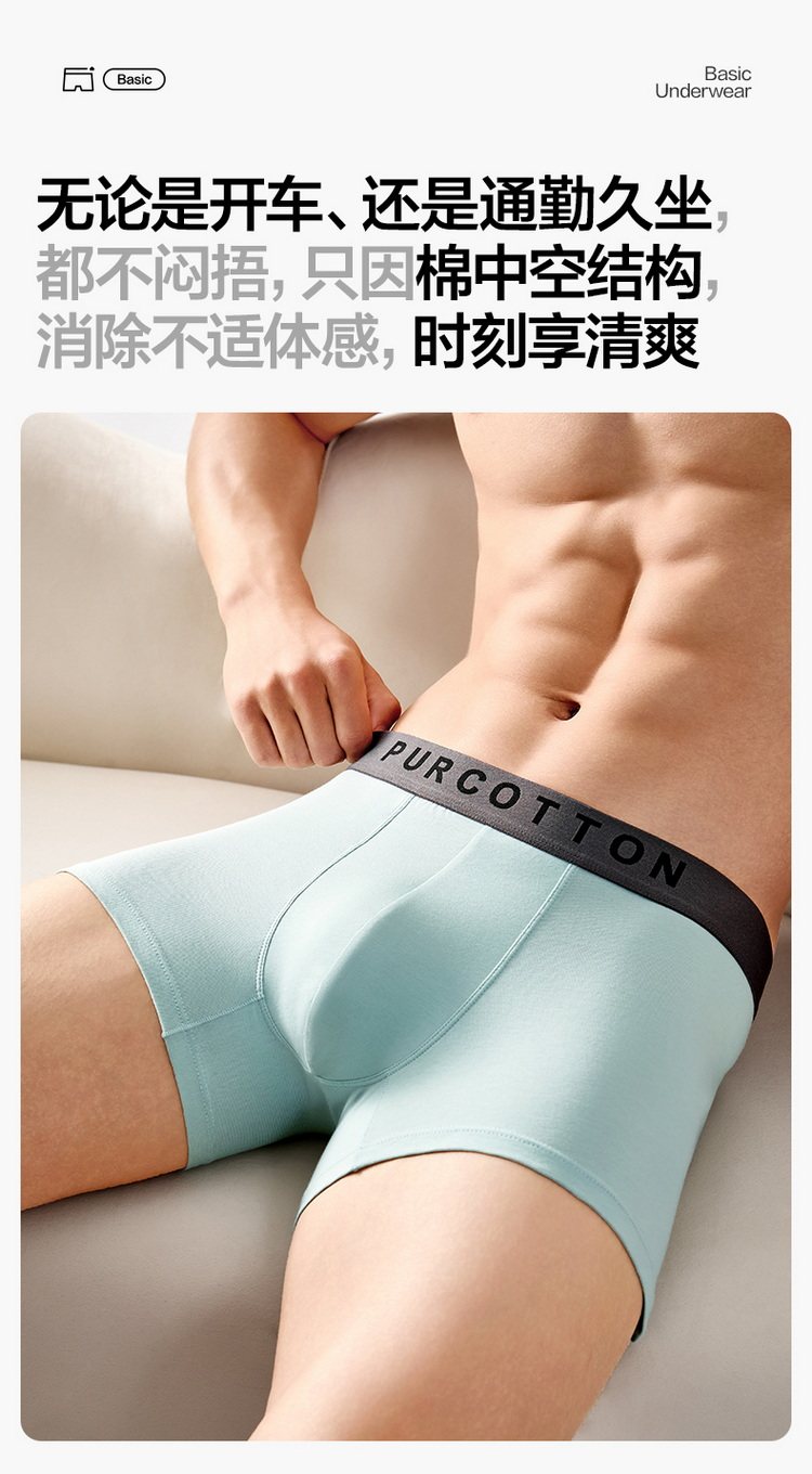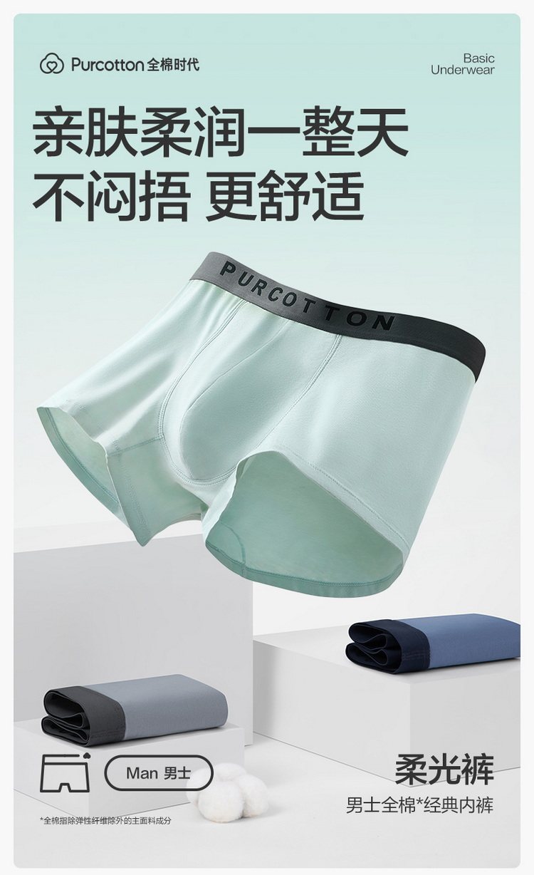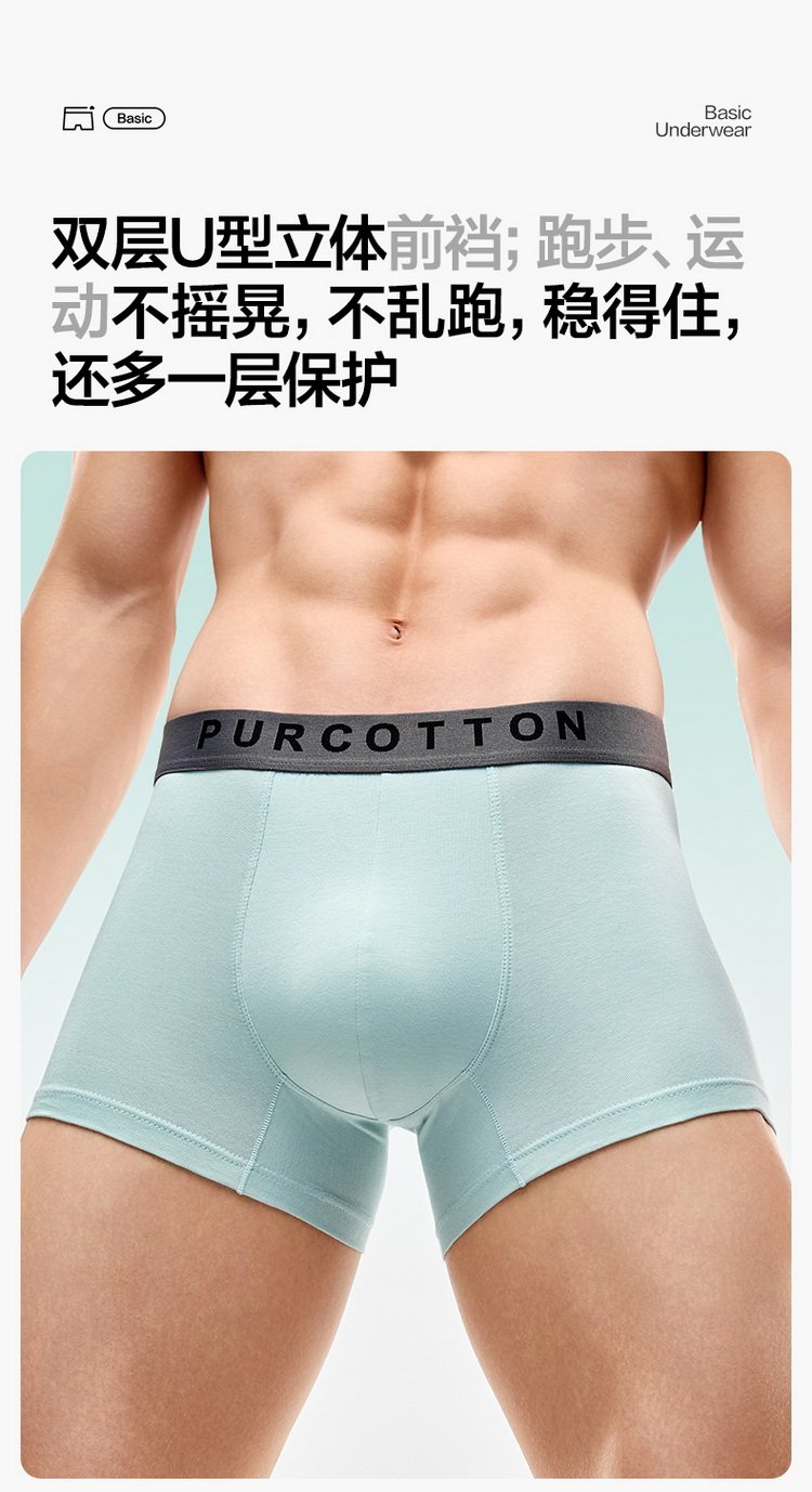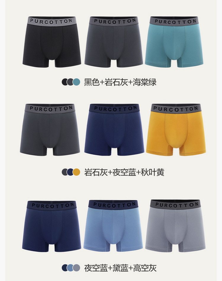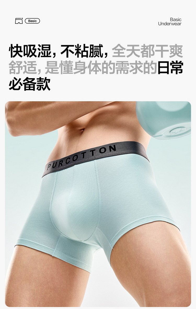 【Bai Bu】Pure Cotton Era Men's Underwear, Pure Cotton, Lightweight, Skin-Friendly, Breathable, Men's Boxer Briefs, 3 Pieces