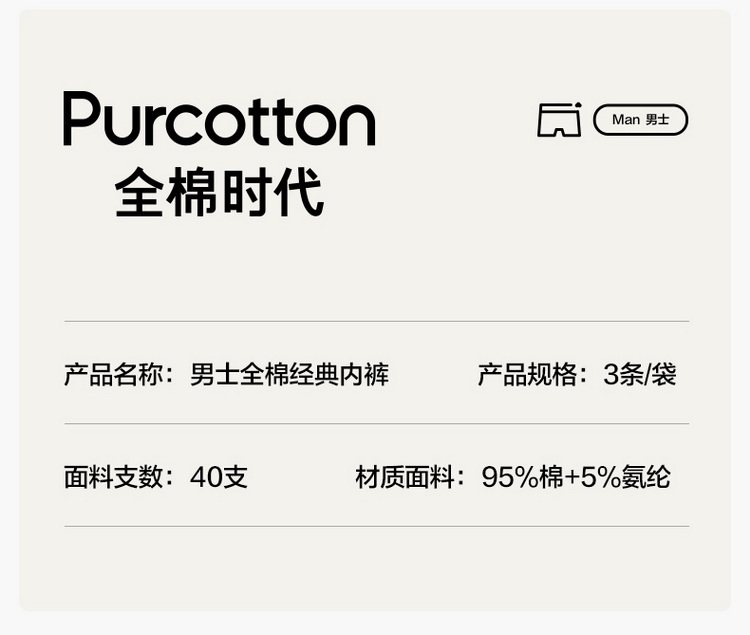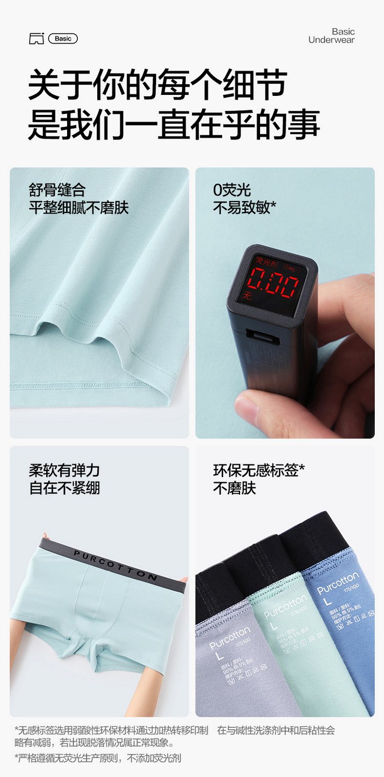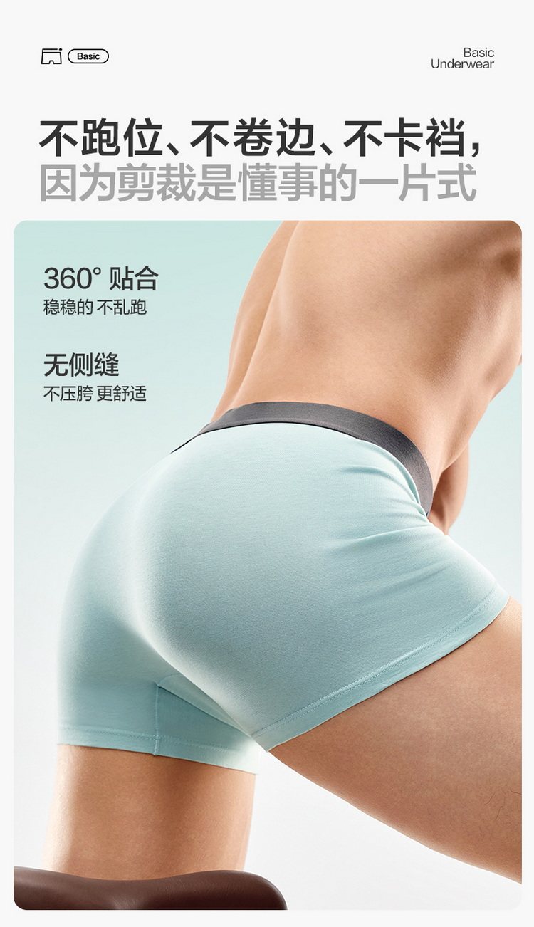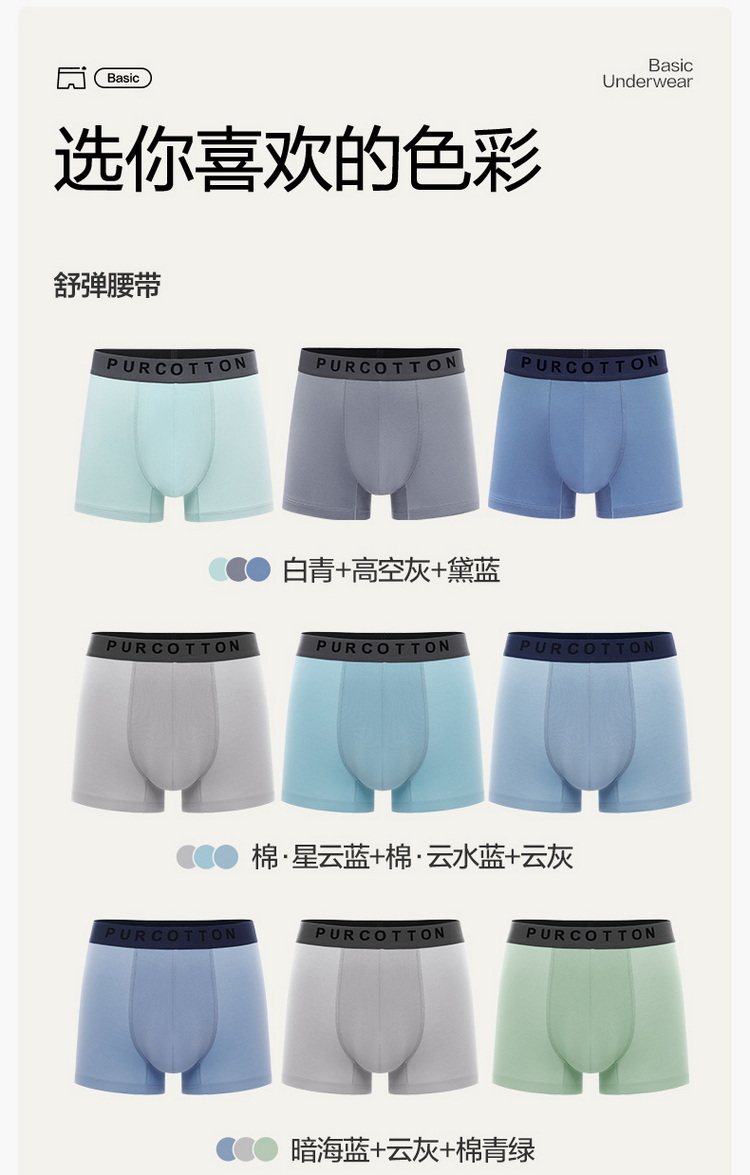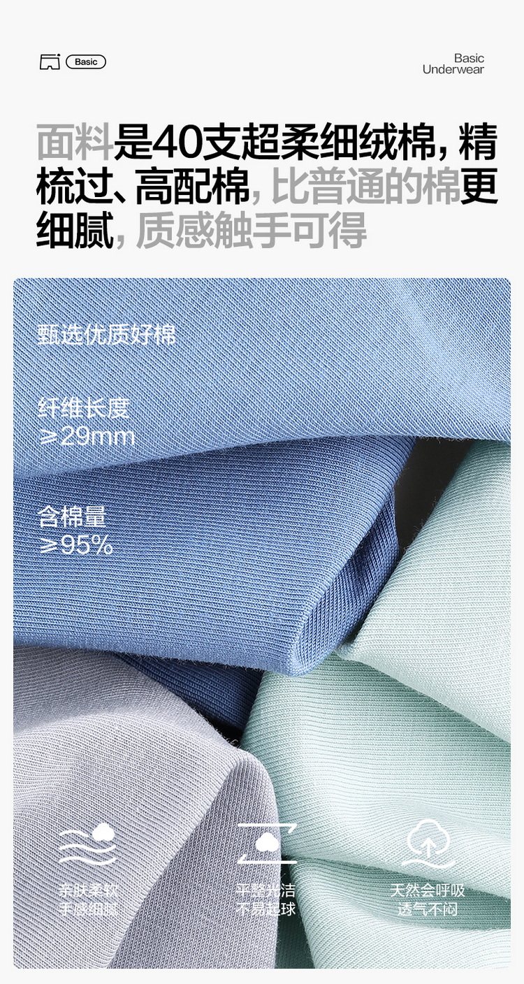【Bai Bu】Pure Cotton Era Men's Underwear, Pure Cotton, Lightweight, Skin-Friendly, Breathable, Men's Boxer Briefs, 3 Pieces