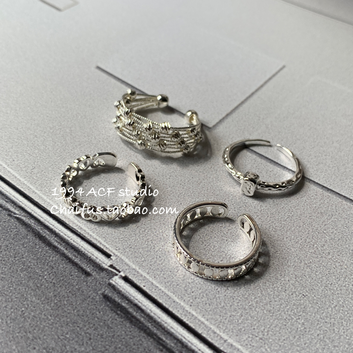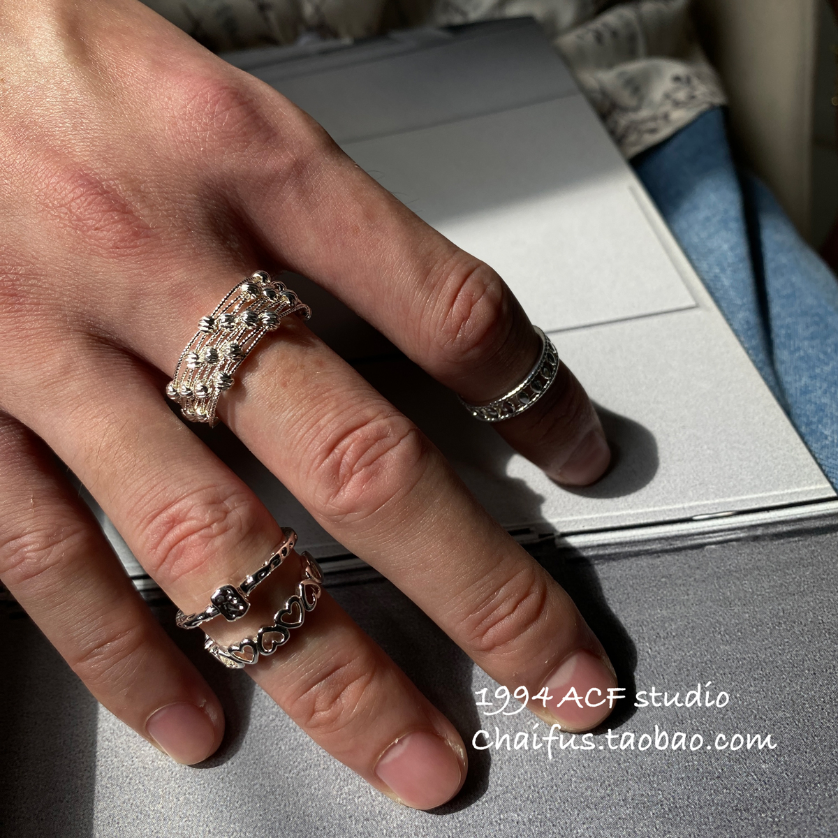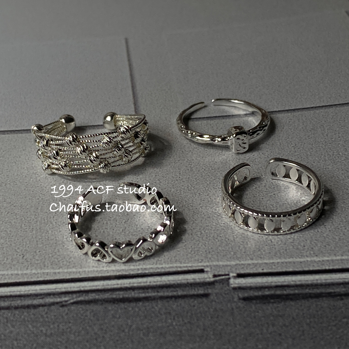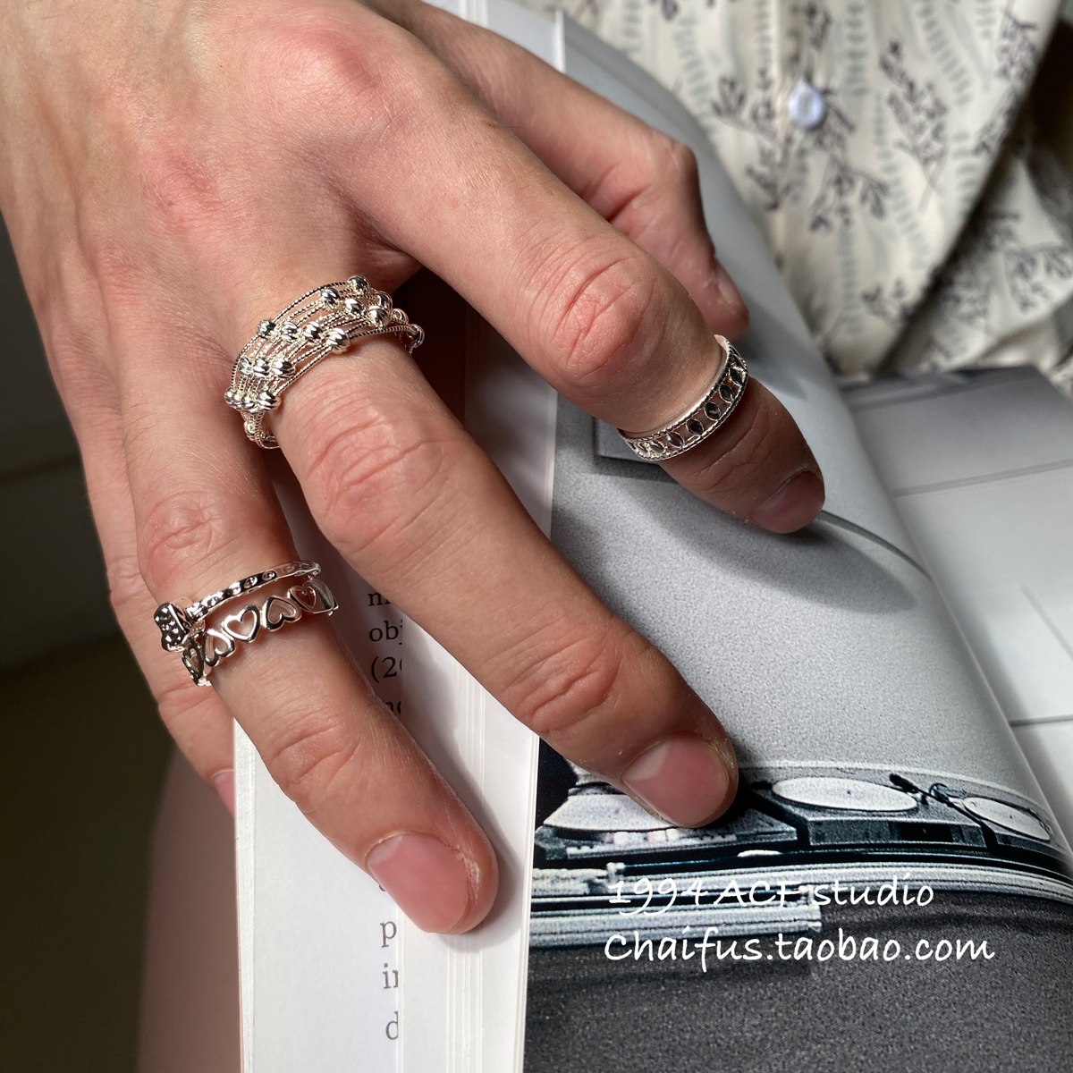 Chaifu Studio/J187 Cool and Minimalist Style Wrinkled Texture Heart-Shaped Small Open Ring ins Versatile