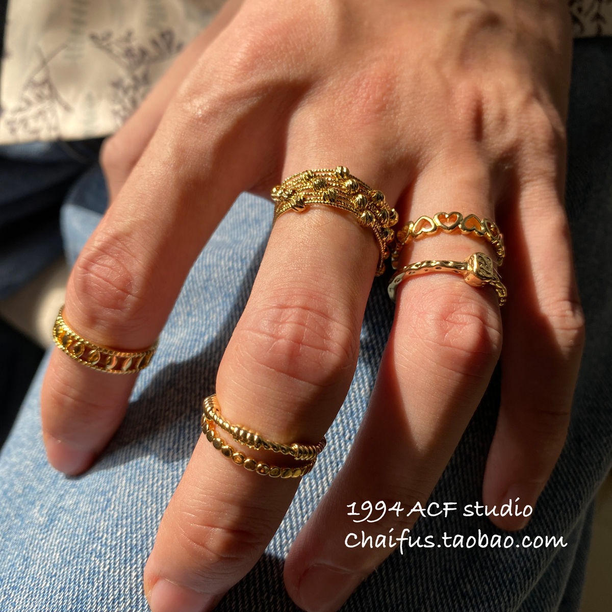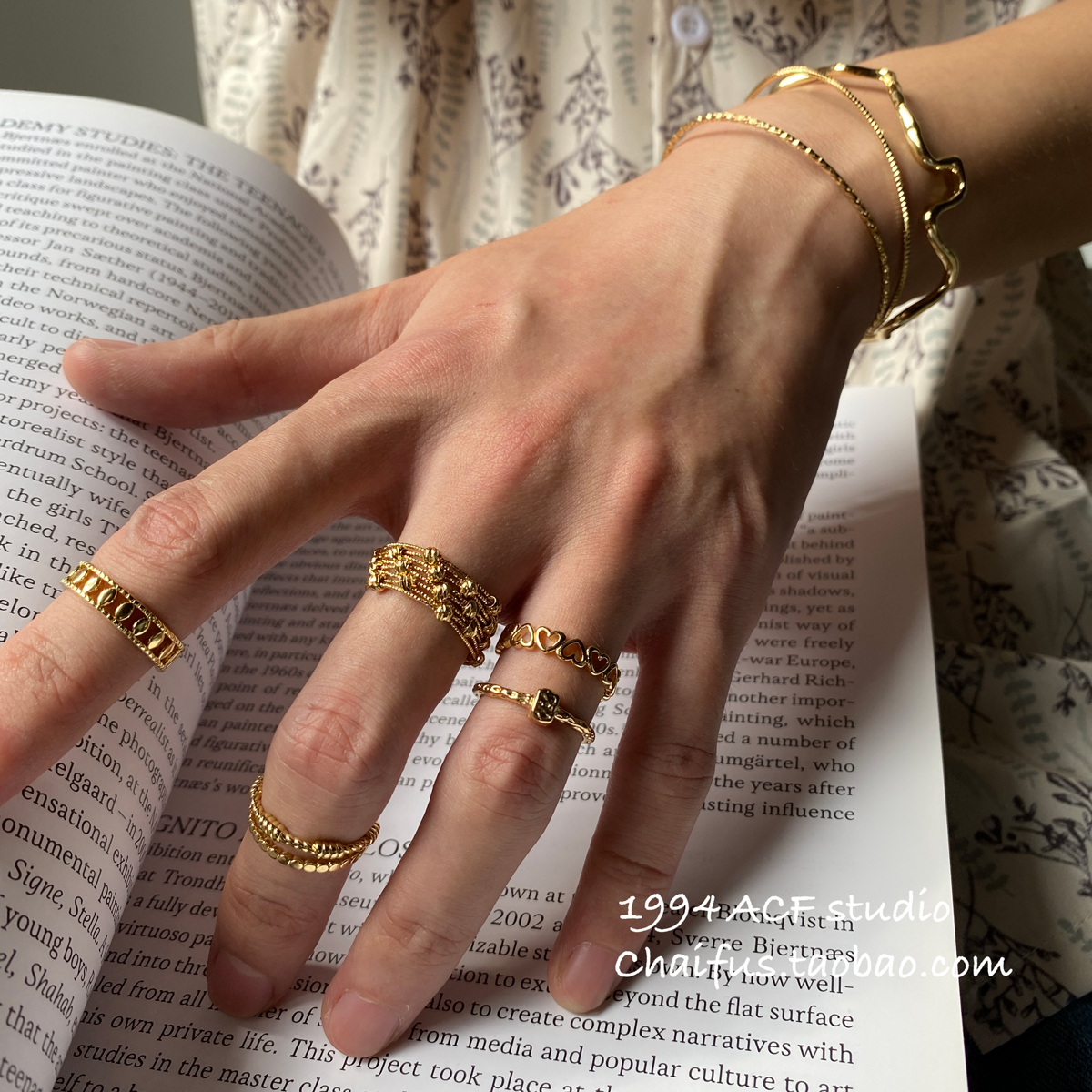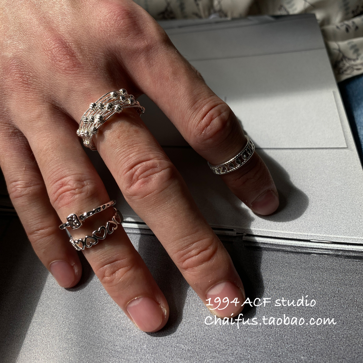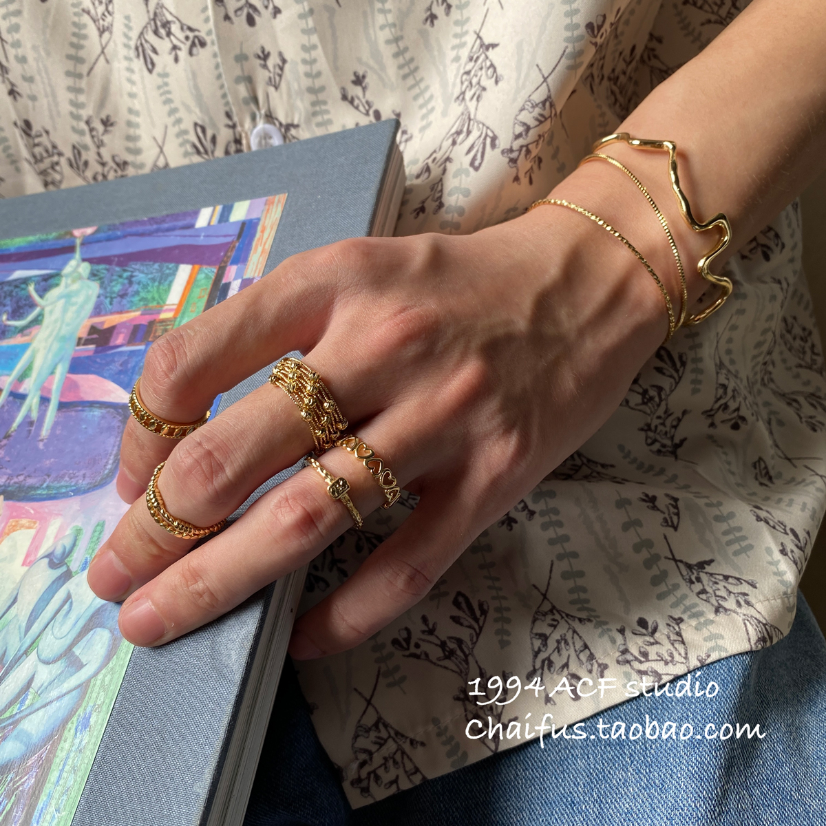 Chaifu Studio/J187 Cool and Minimalist Style Wrinkled Texture Heart-Shaped Small Open Ring ins Versatile