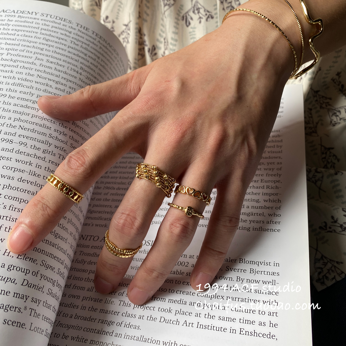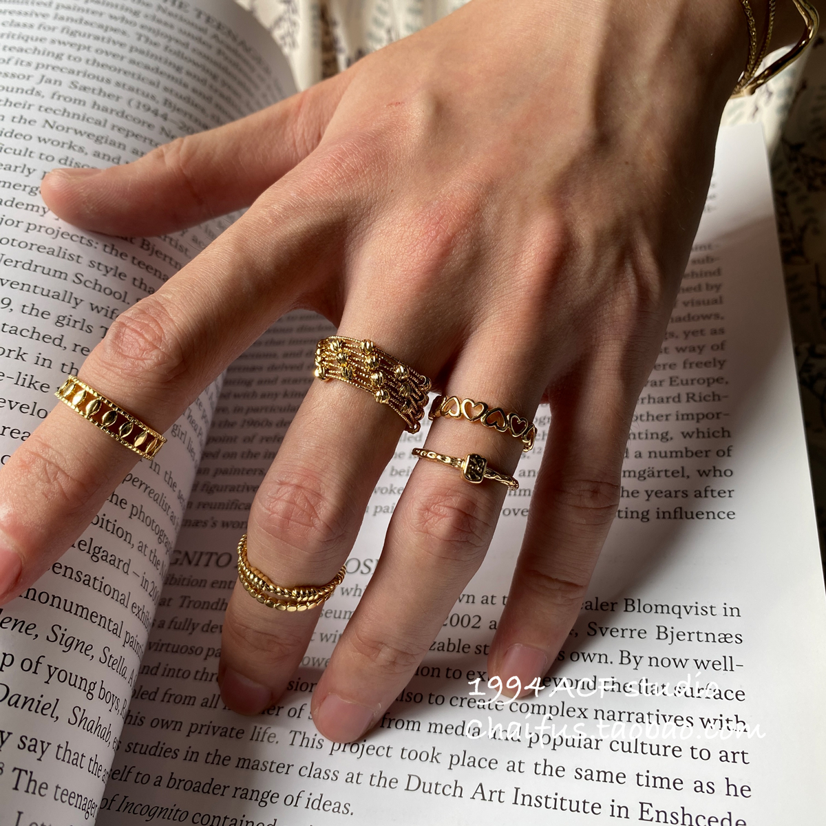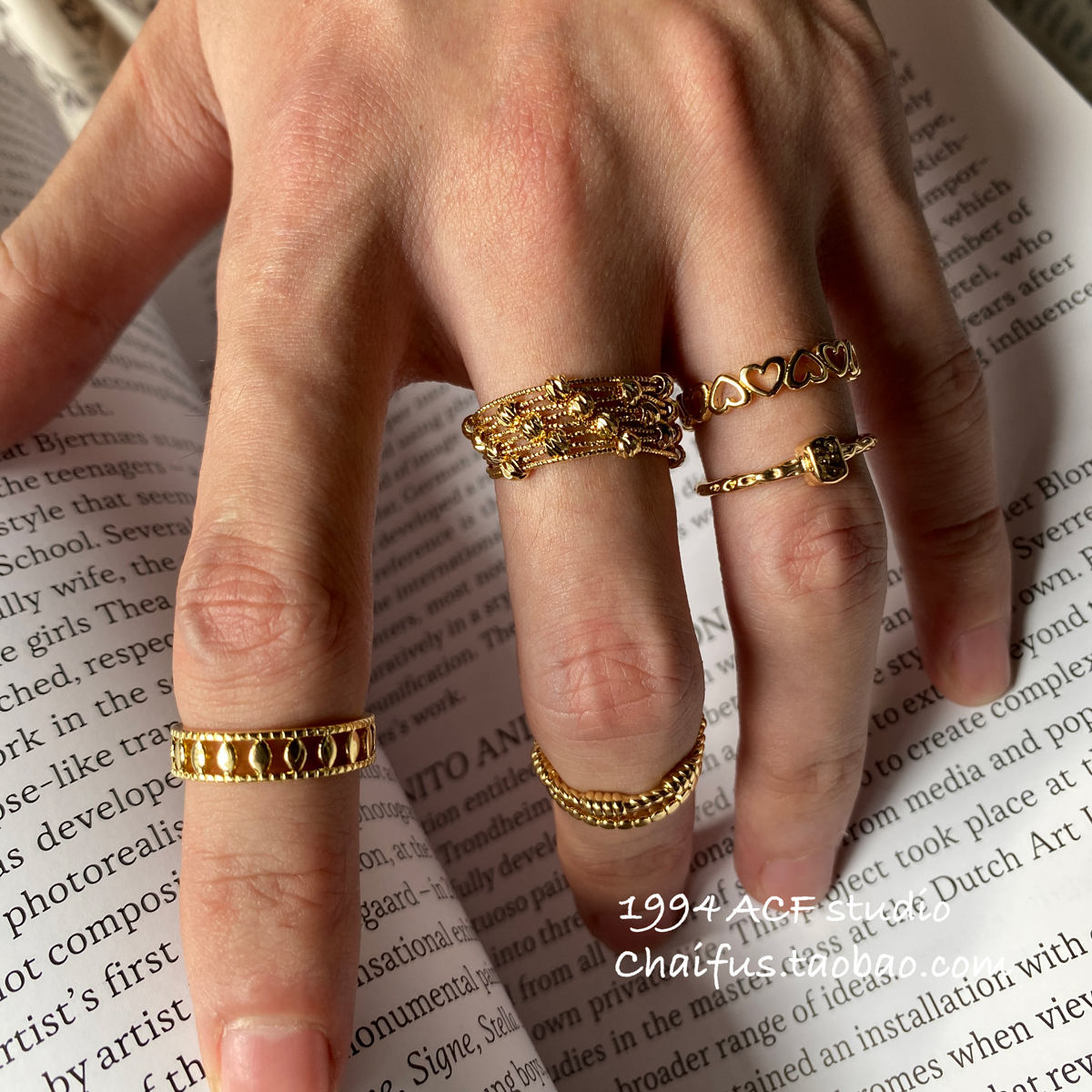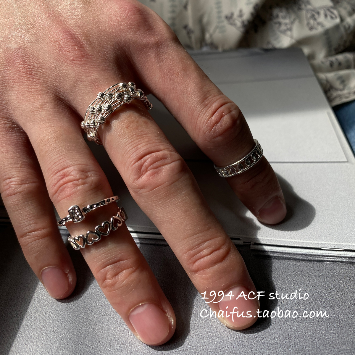 Chaifu Studio/J187 Cool and Minimalist Style Wrinkled Texture Heart-Shaped Small Open Ring ins Versatile