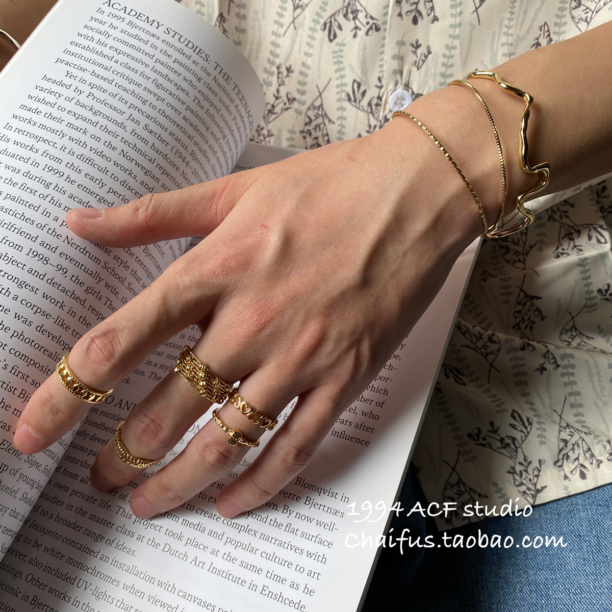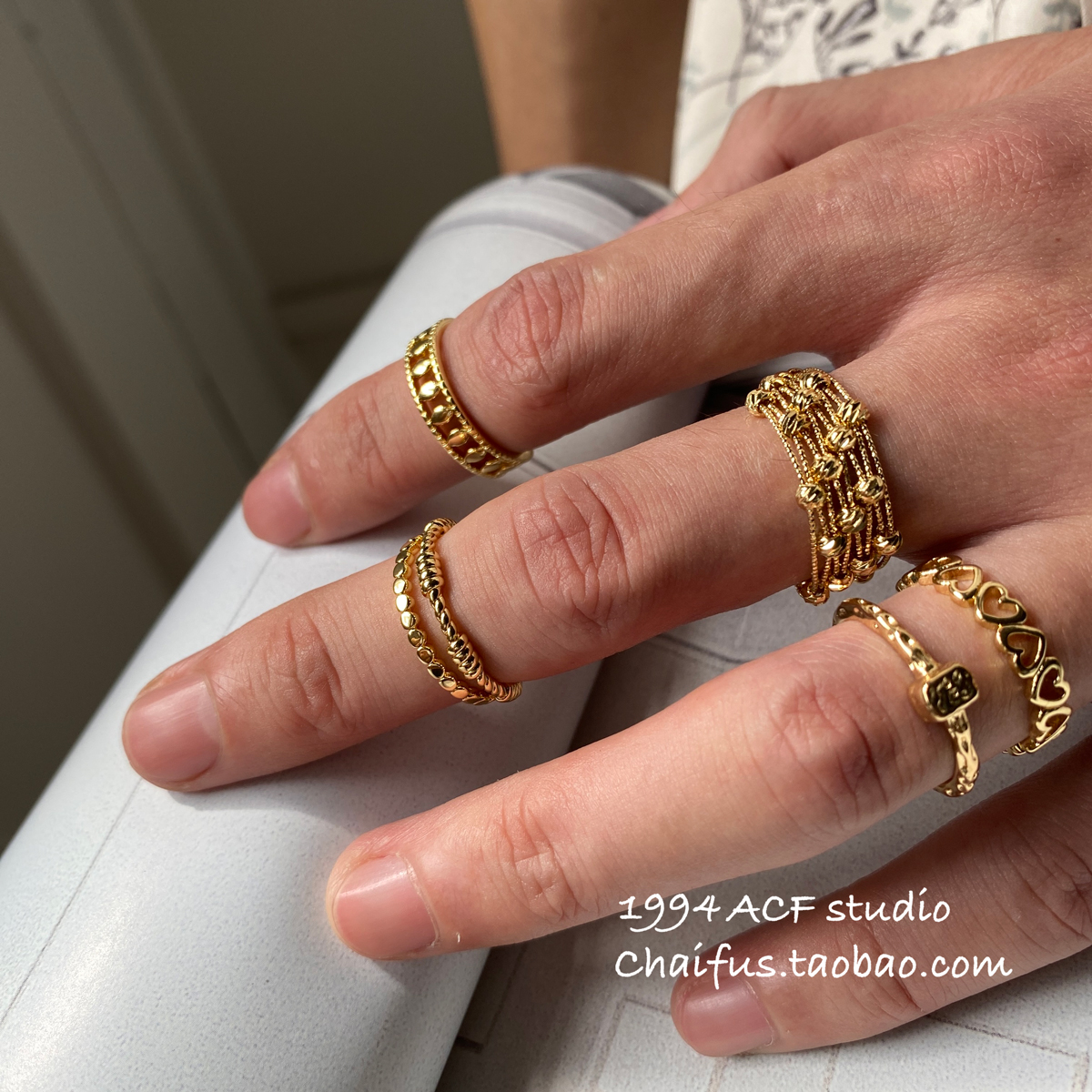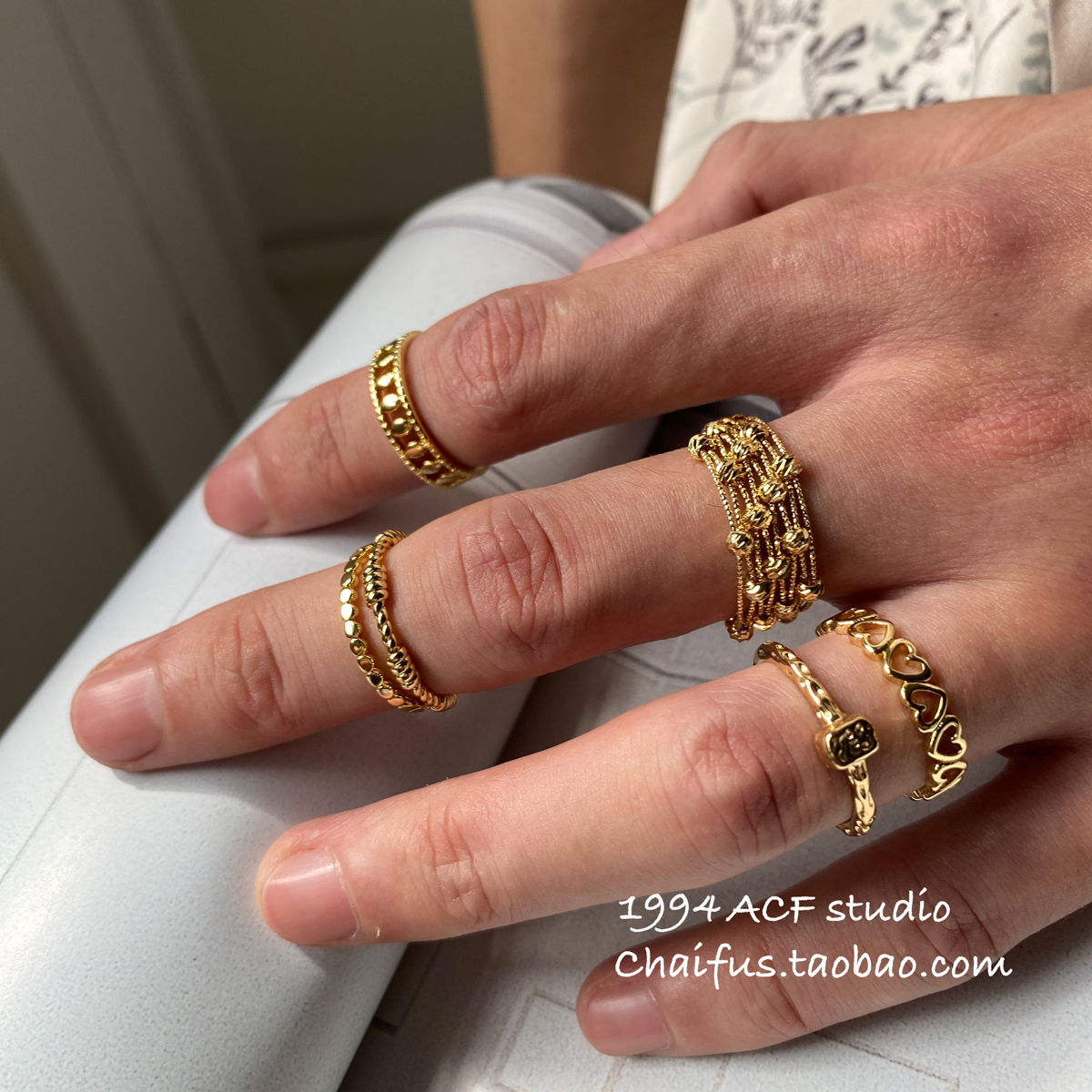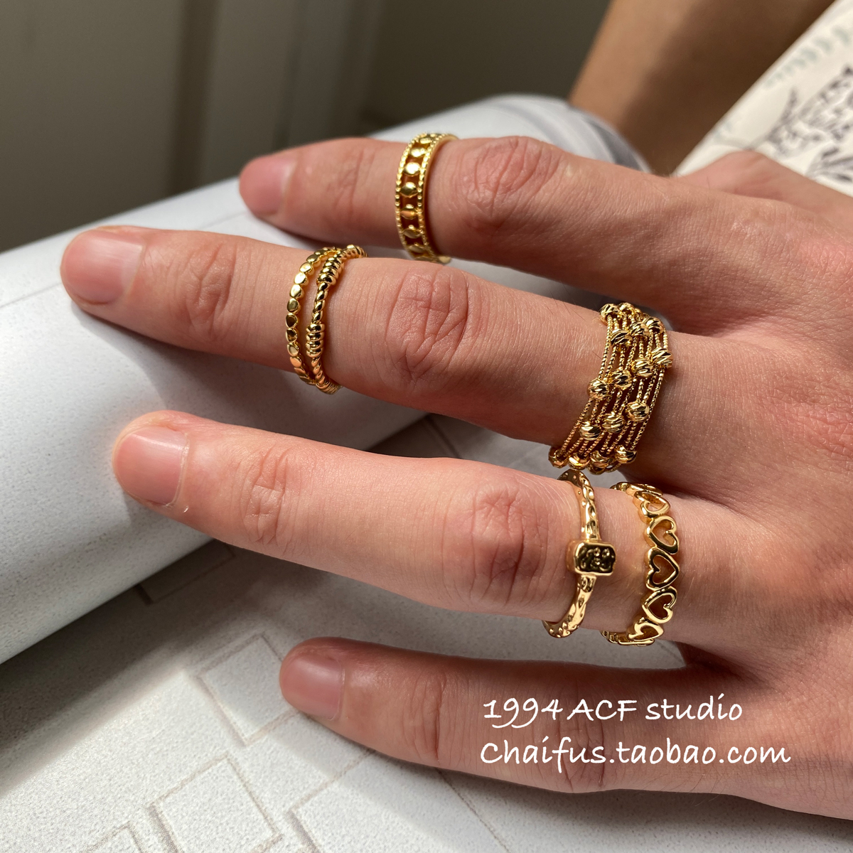 Chaifu Studio/J187 Cool and Minimalist Style Wrinkled Texture Heart-Shaped Small Open Ring ins Versatile