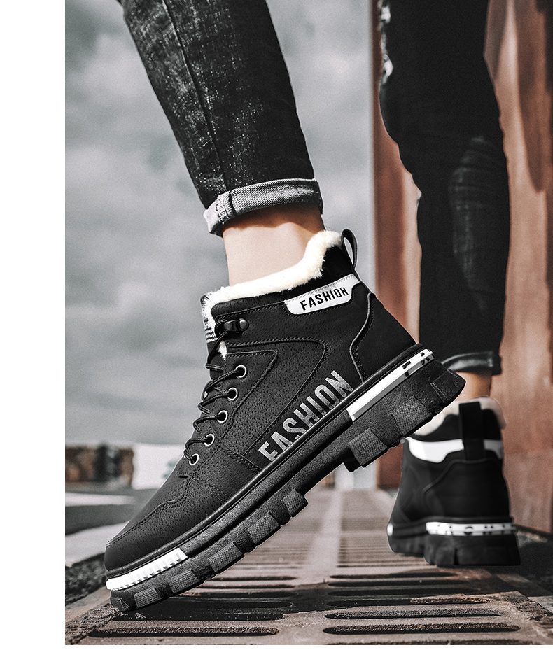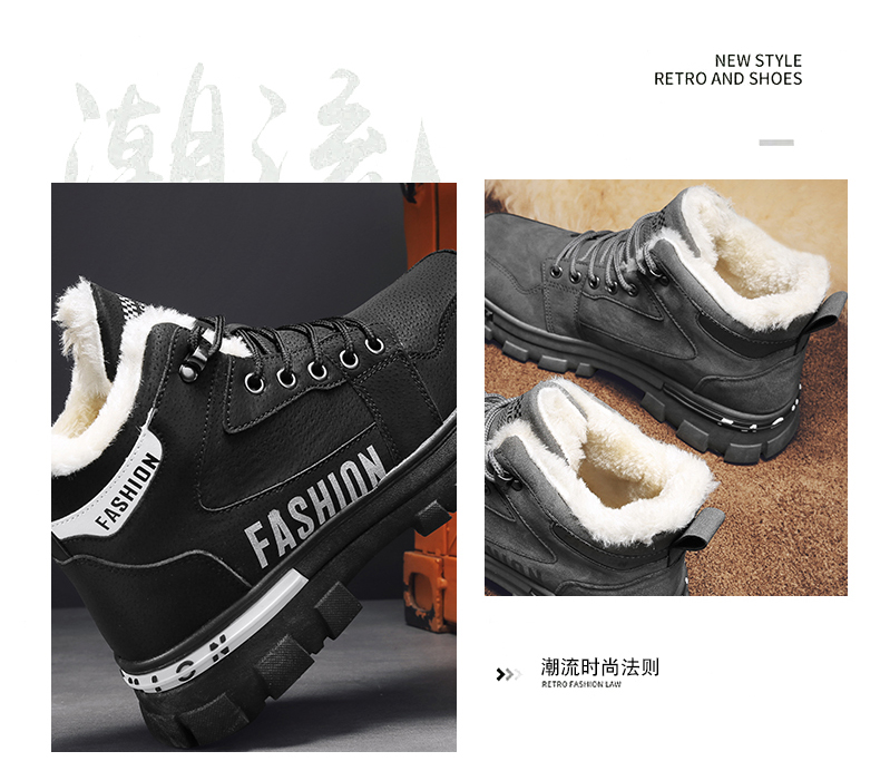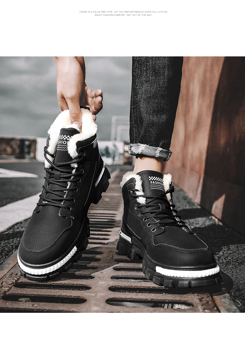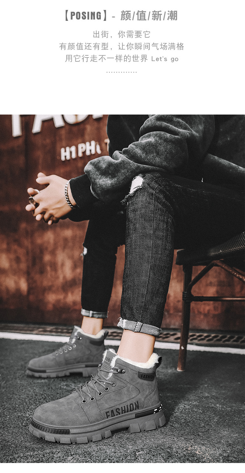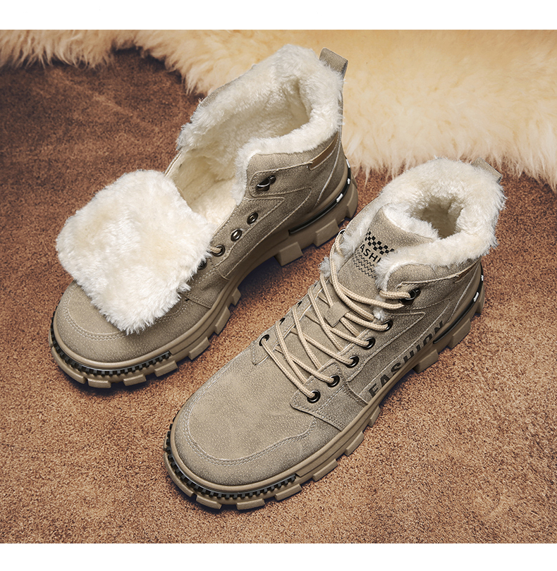 Men's Winter Shoes with Fleece Lining, Thickened, Waterproof, Non-Slip, Work Safety Boots, Martin Snow Boots, Warm Cotton Shoes for Northeast