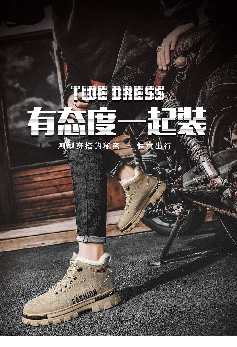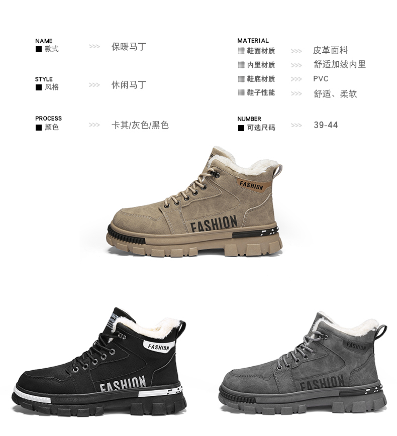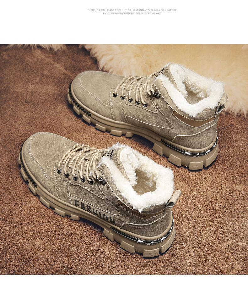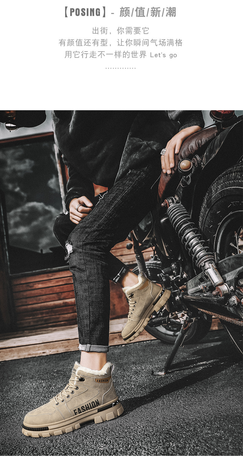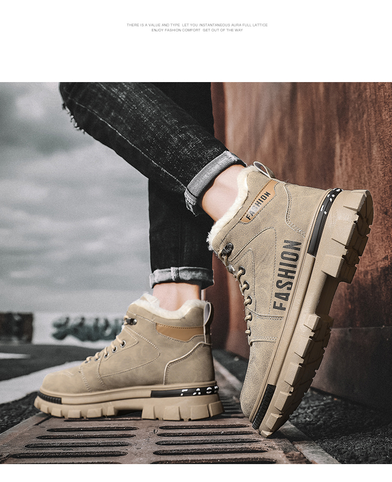 Men's Winter Shoes with Fleece Lining, Thickened, Waterproof, Non-Slip, Work Safety Boots, Martin Snow Boots, Warm Cotton Shoes for Northeast