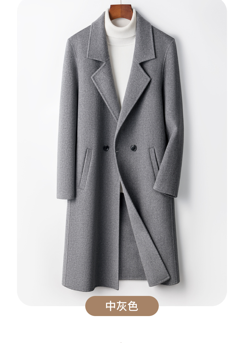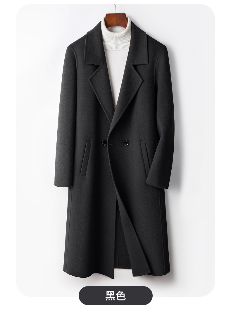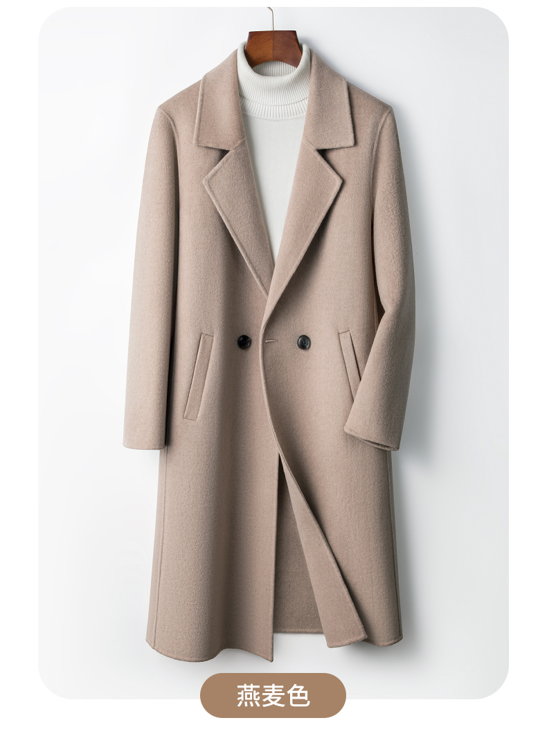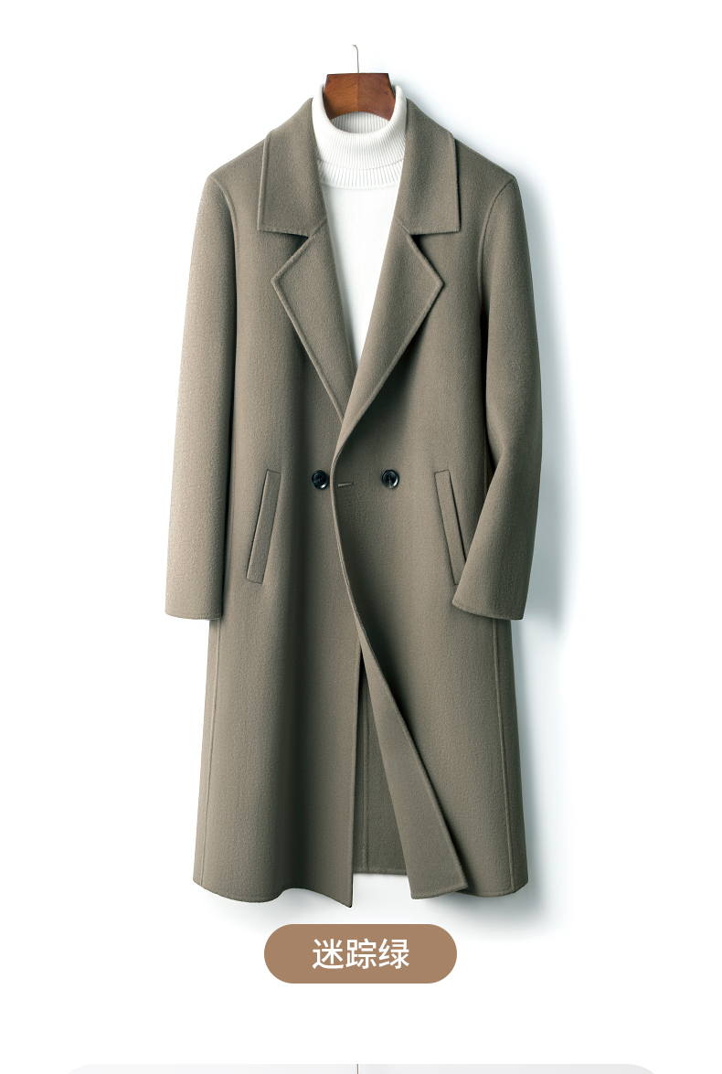 Wool Double-Sided Coat for Men, Mid-Length, Over-The-Knee, Double-Sided Cashmere Coat, Business Suit Collar, Woolen Trench Coat