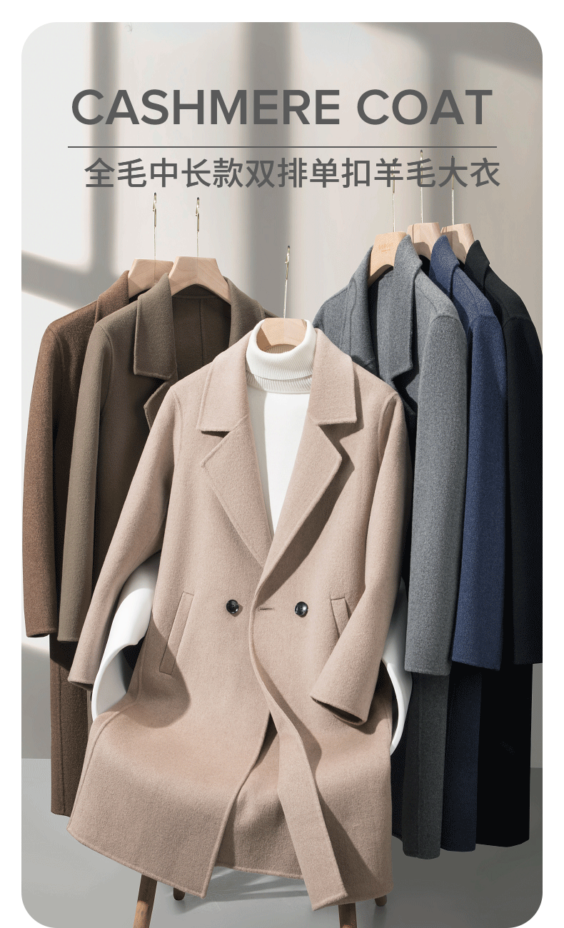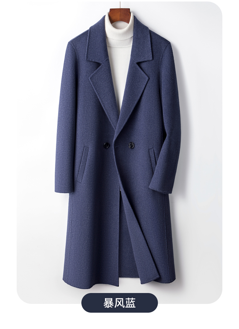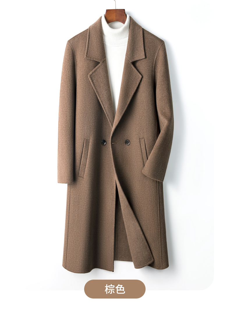 Wool Double-Sided Coat for Men, Mid-Length, Over-The-Knee, Double-Sided Cashmere Coat, Business Suit Collar, Woolen Trench Coat