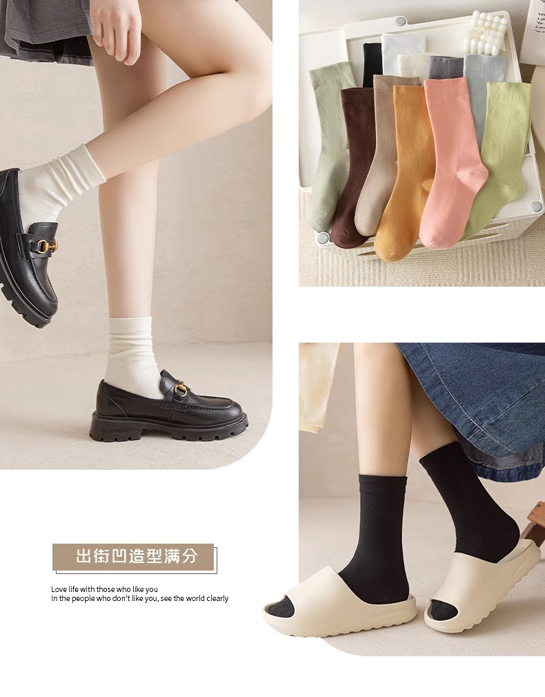 Stacked Socks for Women, Autumn Mid-Calf Socks, Trendy Seamless Socks, White Long Socks, Spring and Autumn Maternity Socks, Black Long Socks