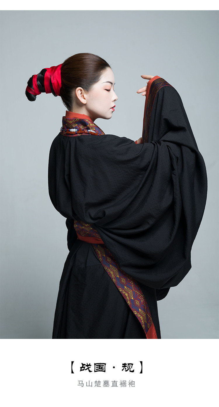 【Elegant】Spring and Autumn Period, Warring States Period, Pre-Qin Dynasty, Ma Shan Chu Tomb Black Restoration Straight Skirt Hanfu for Men and Women——Standard